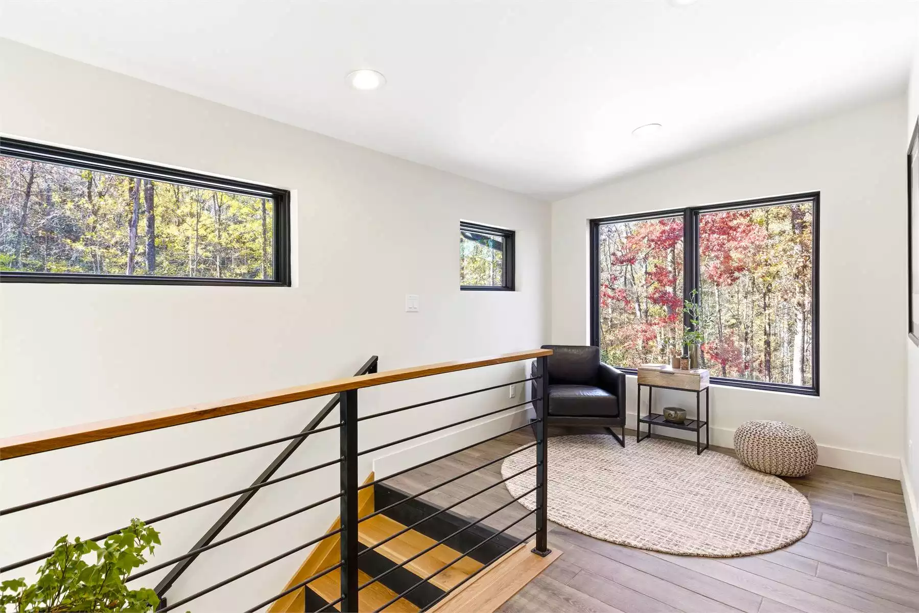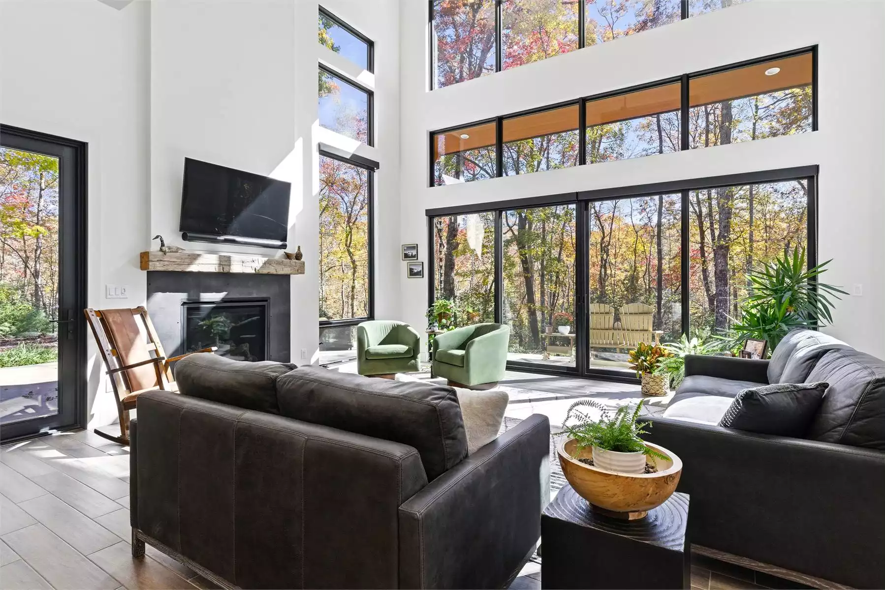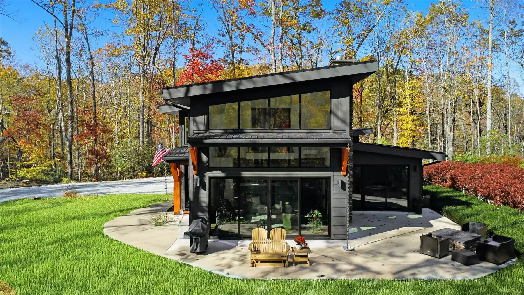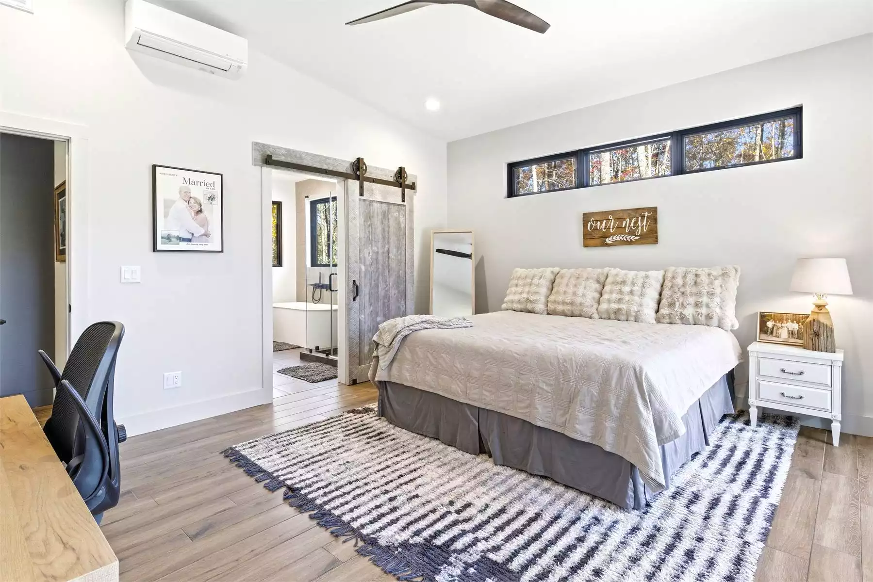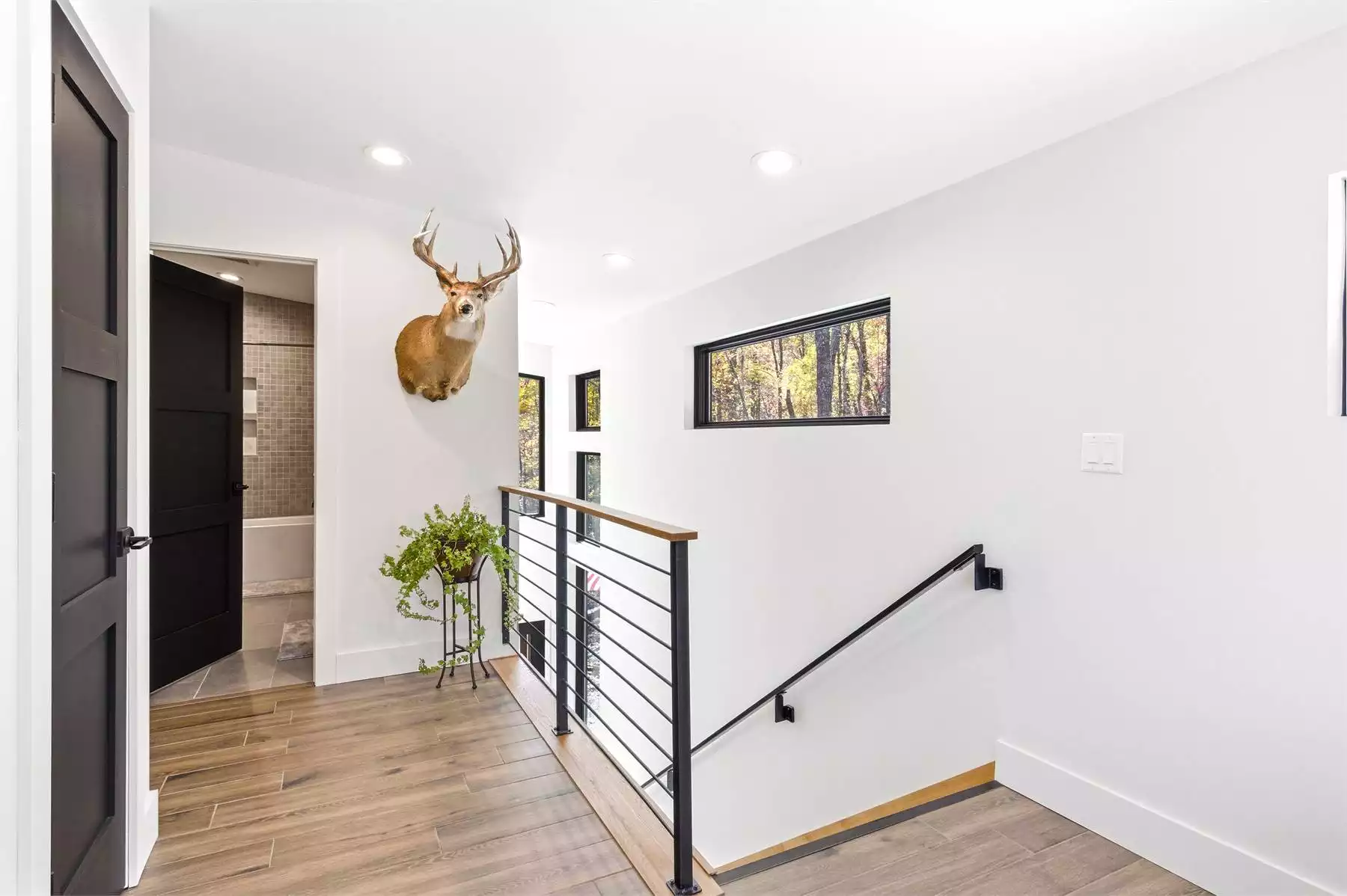House Plan 11879 is a unique contemporary home perfectly suited for year-round or vacation living with its view-capturing design. It offers 2,102 square feet with three bedrooms and two-and-a-half baths split on two levels, so it also checks the boxes for most families. Step inside and the great room is front and center with a two-story vaulted living space with floor-to-ceiling windows. The island kitchen and dining area overlook the living area to share in the views, too! The primary suite is placed on one side and boasts indoor/outdoor connection with patio doors and transom windows in the front bedroom as well as large windows in the rear five-piece bath. The powder room and laundry/mudroom that connects to the side-entry rear garage round out this level. Head up the stairs by the front entry and you'll come to a landing hallway with a bathroom and the final two bedrooms. The rear-facing bedroom looks out over the garage while the front bedroom has side windows and opens up to look over the great room when you slide the barn door away!
