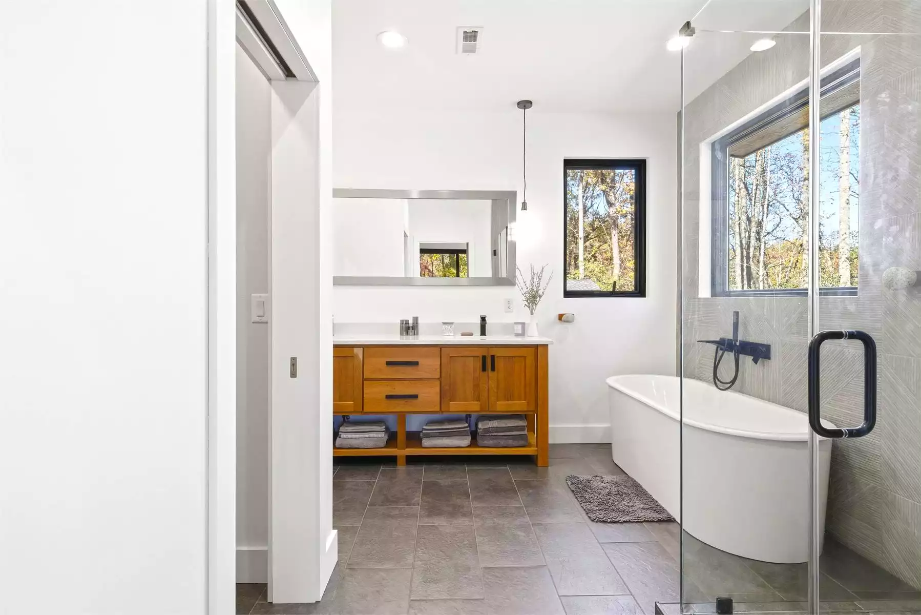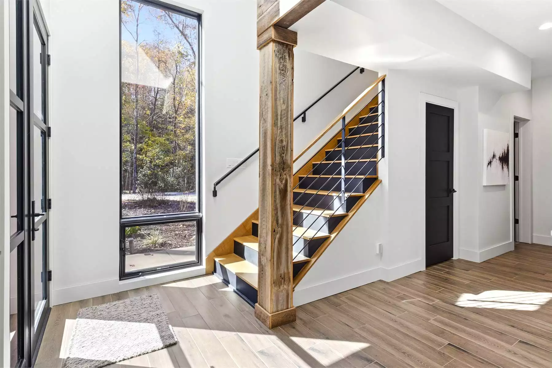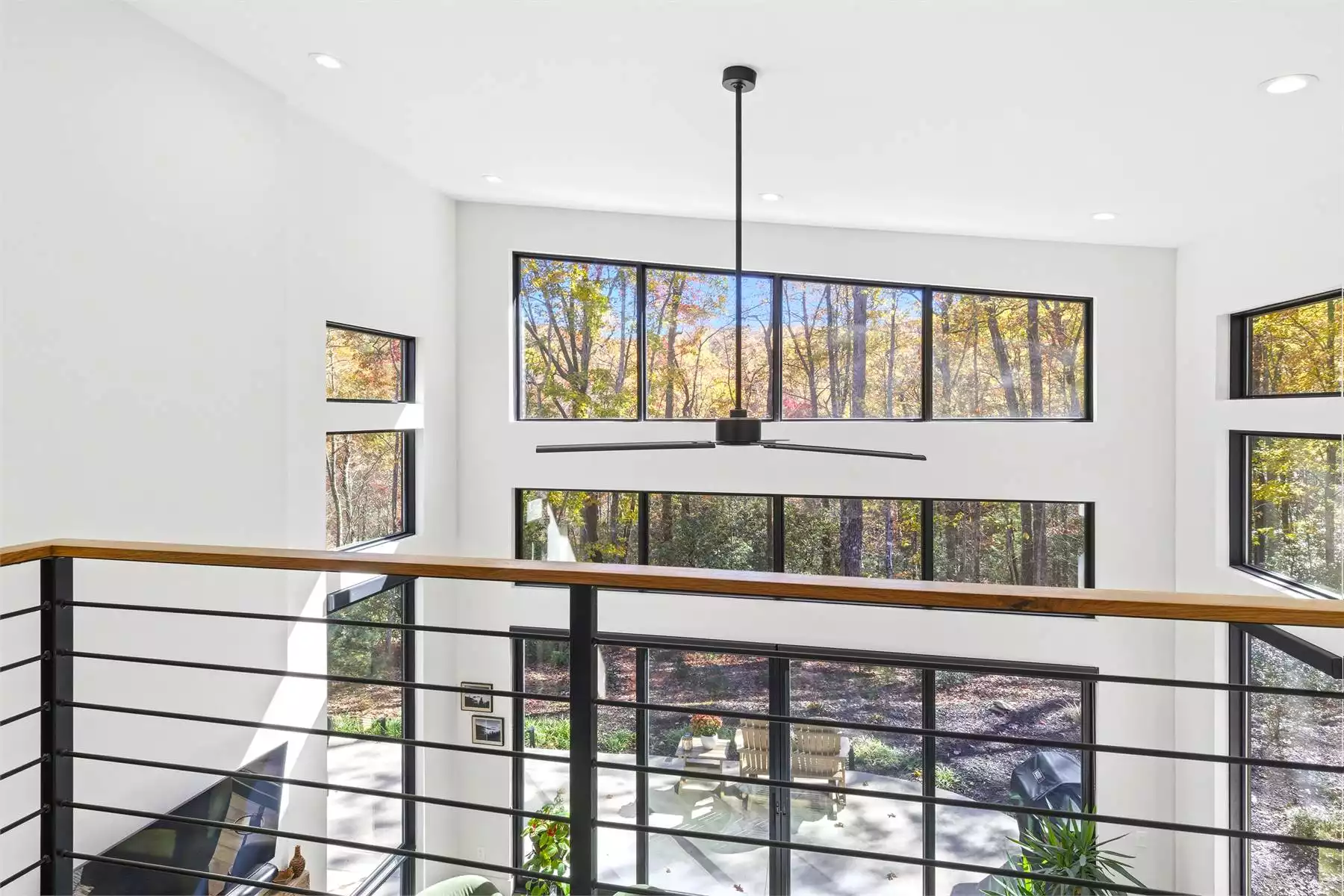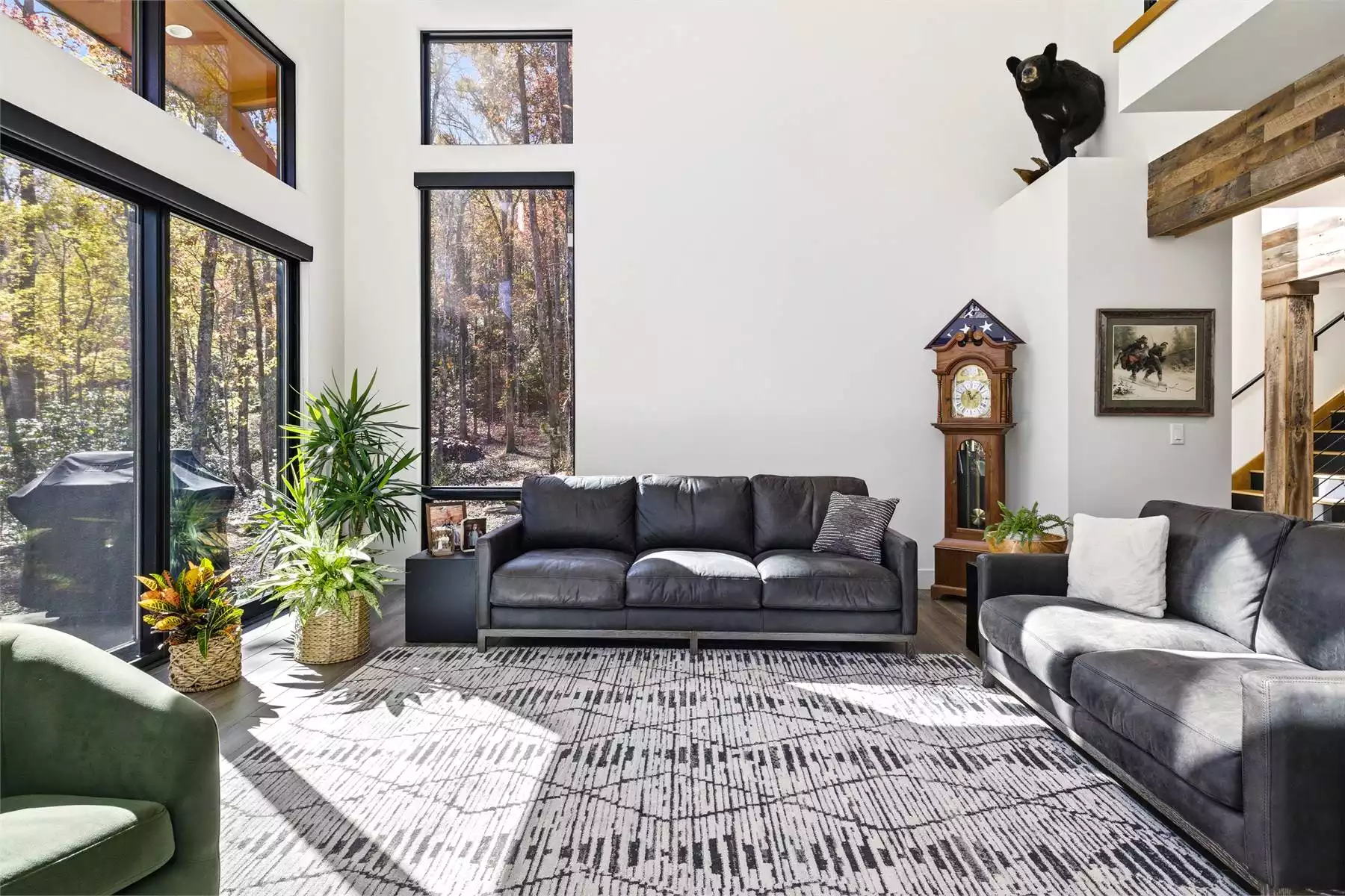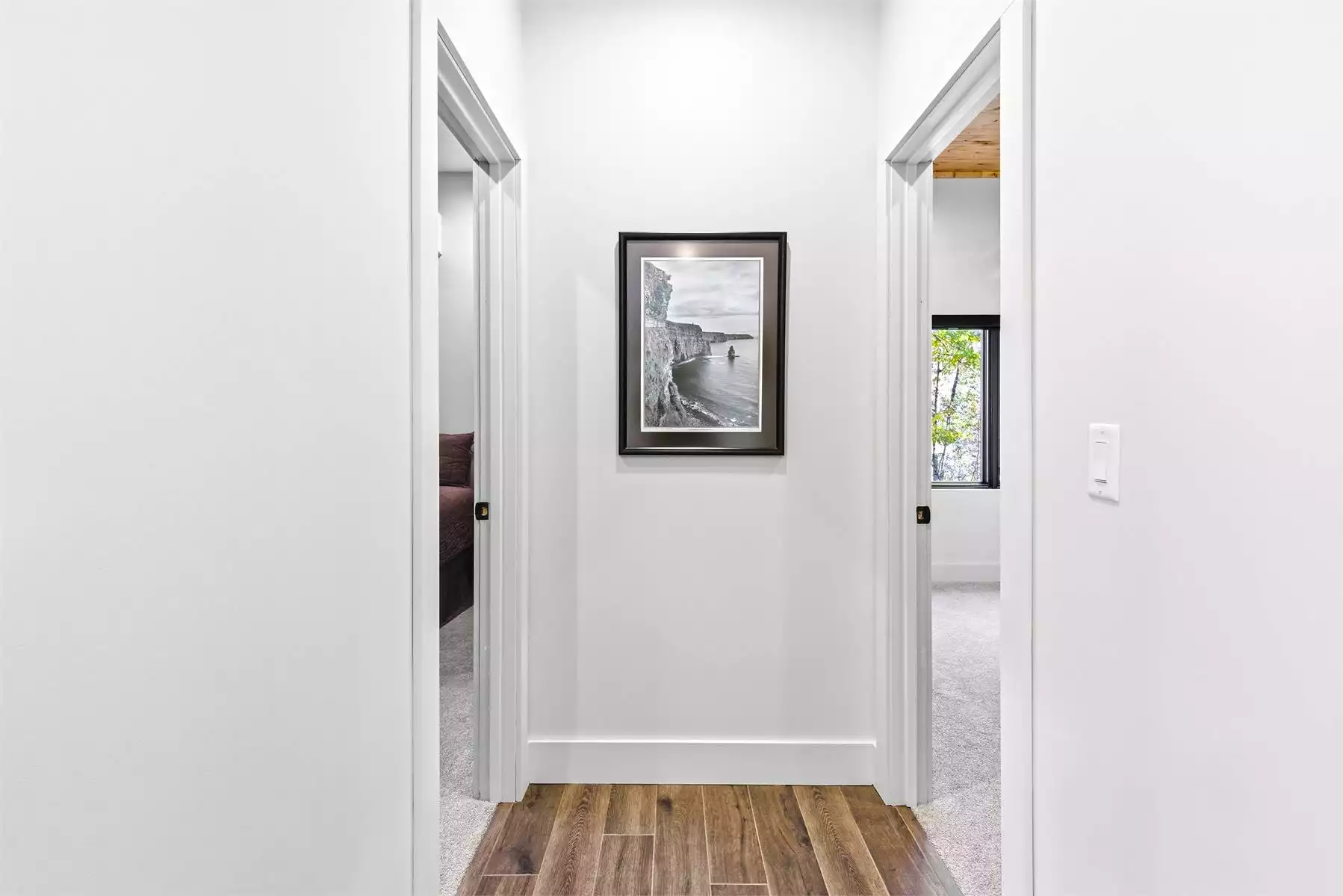 House Plan 11879 is a unique contemporary home perfectly suited for year-round or vacation living with its view-capturing design. It offers 2,102 square feet with three bedrooms and two-and-a-half baths split on two levels, so it also checks the boxes for most families. Step inside and the great room is front and center with a two-story vaulted living space with floor-to-ceiling windows. The island kitchen and dining area overlook the living area to share in the views, too! The primary suite is placed on one side and boasts indoor/outdoor connection with patio doors and transom windows in the front bedroom as well as large windows in the rear five-piece bath. The powder room and laundry/mudroom that connects to the side-entry rear garage round out this level. Head up the stairs by the front entry and you'll come to a landing hallway with a bathroom and the final two bedrooms. The rear-facing bedroom looks out over the garage while the front bedroom has side windows and opens up to look over the great room when you slide the barn door away!