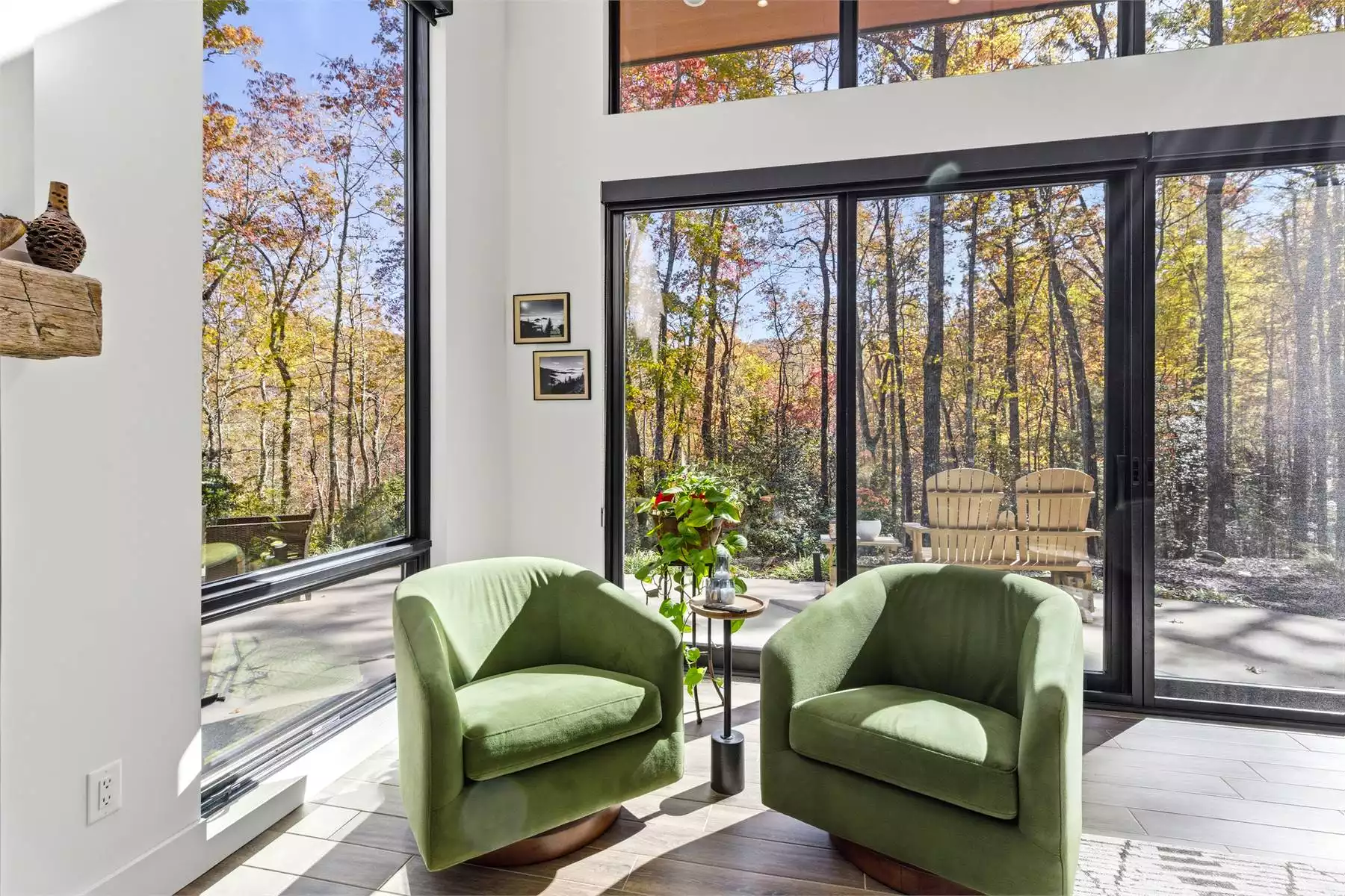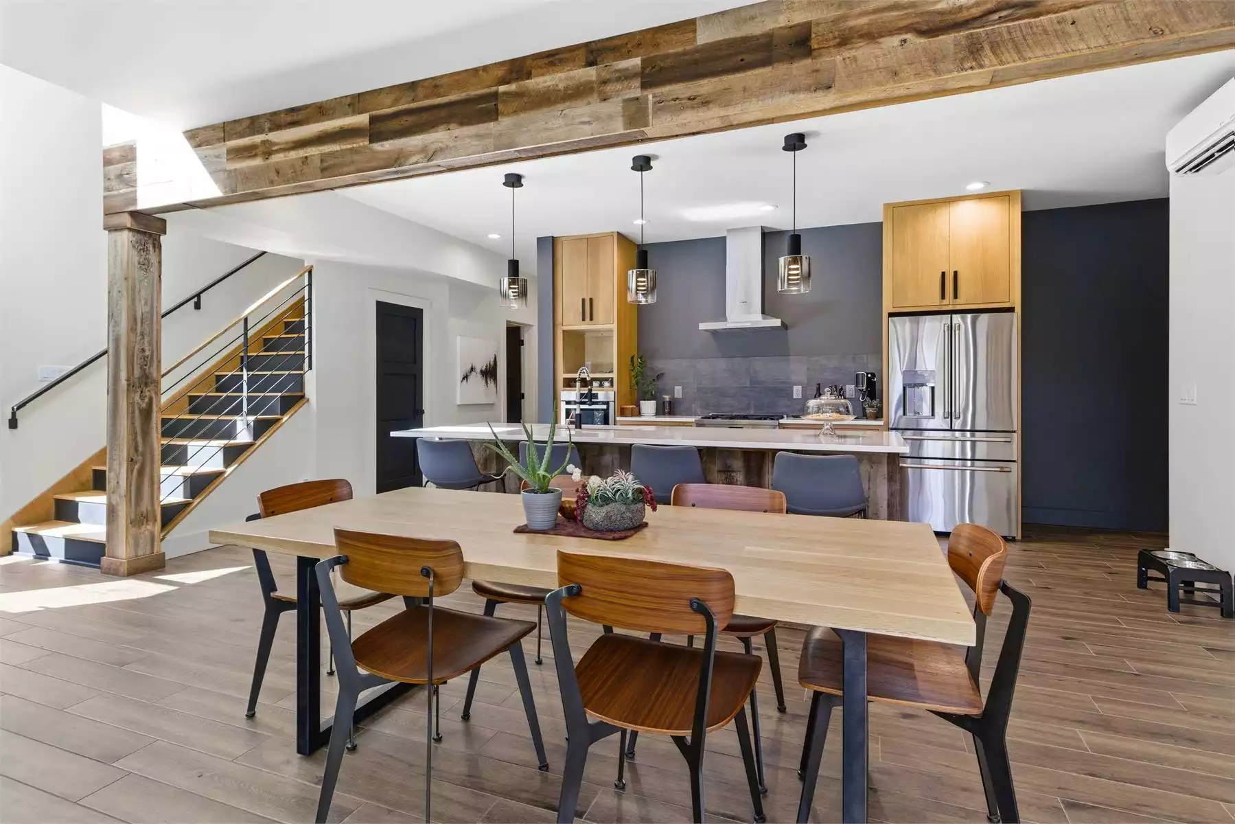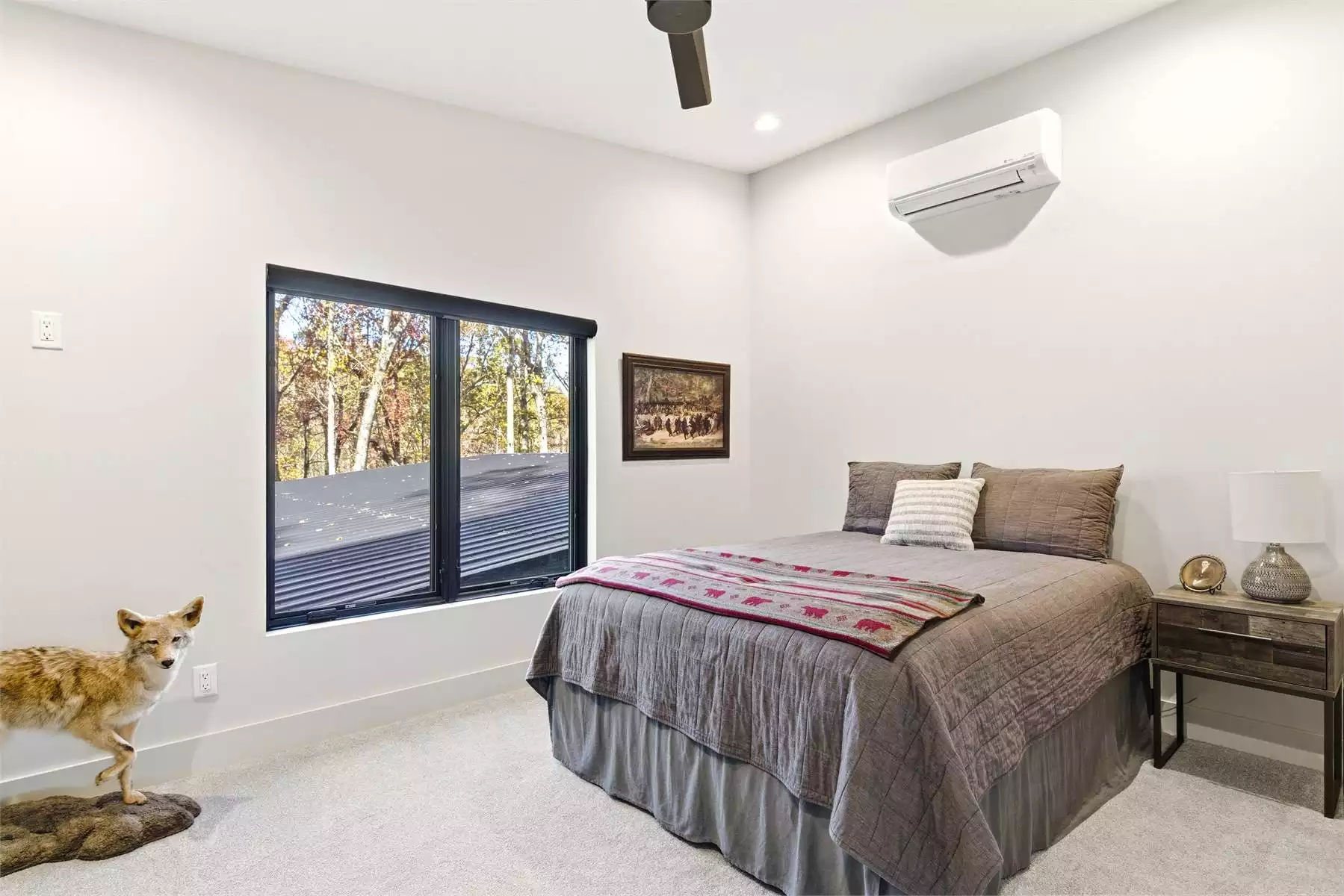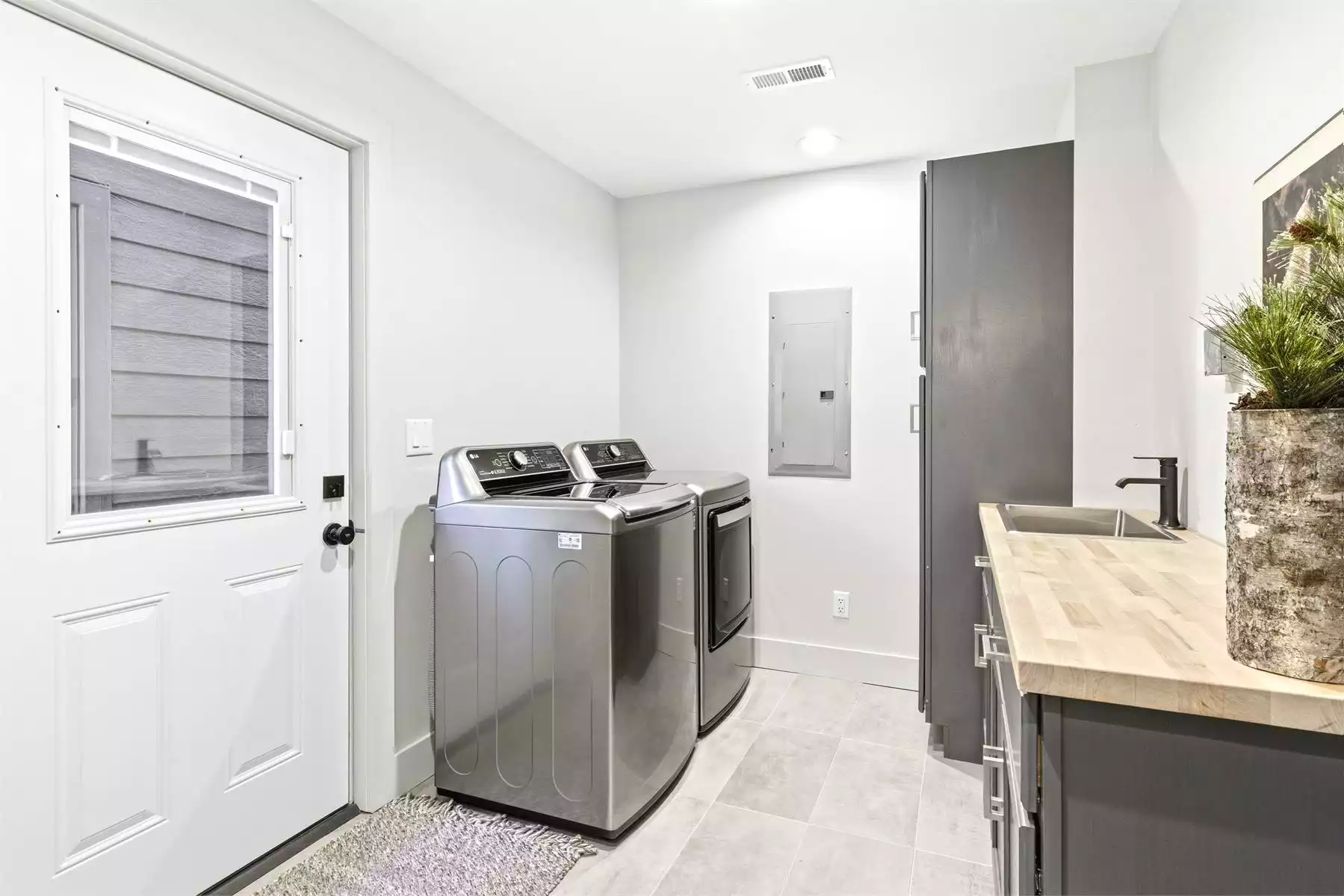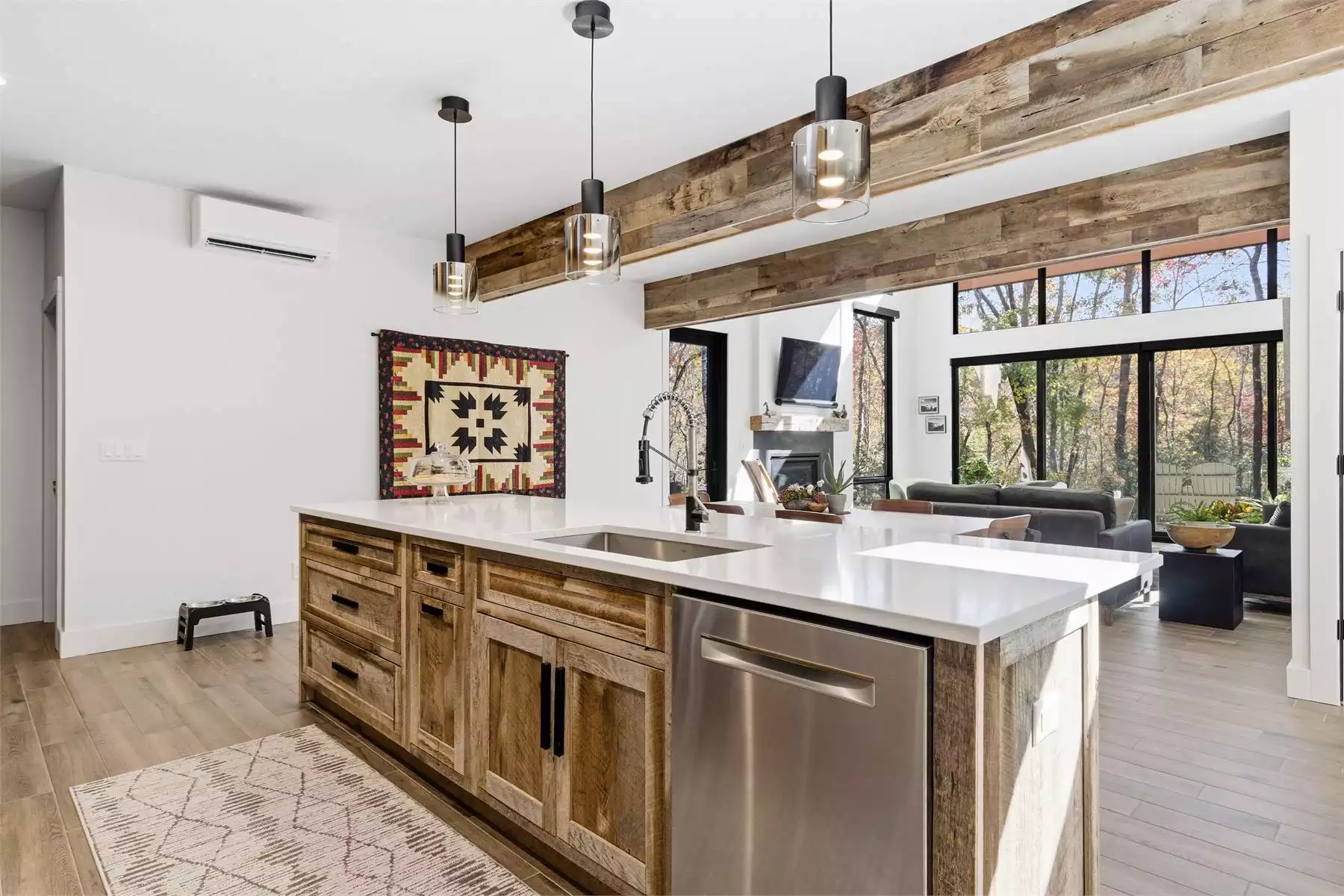 House Plan 11879 is a unique contemporary home perfectly suited for year-round or vacation living with its view-capturing design. It offers 2,102 square feet with three bedrooms and two-and-a-half baths split on two levels, so it also checks the boxes for most families. Step inside and the great room is front and center with a two-story vaulted living space with floor-to-ceiling windows. The island kitchen and dining area overlook the living area to share in the views, too! The primary suite is placed on one side and boasts indoor/outdoor connection with patio doors and transom windows in the front bedroom as well as large windows in the rear five-piece bath. The powder room and laundry/mudroom that connects to the side-entry rear garage round out this level. Head up the stairs by the front entry and you'll come to a landing hallway with a bathroom and the final two bedrooms. The rear-facing bedroom looks out over the garage while the front bedroom has side windows and opens up to look over the great room when you slide the barn door away!