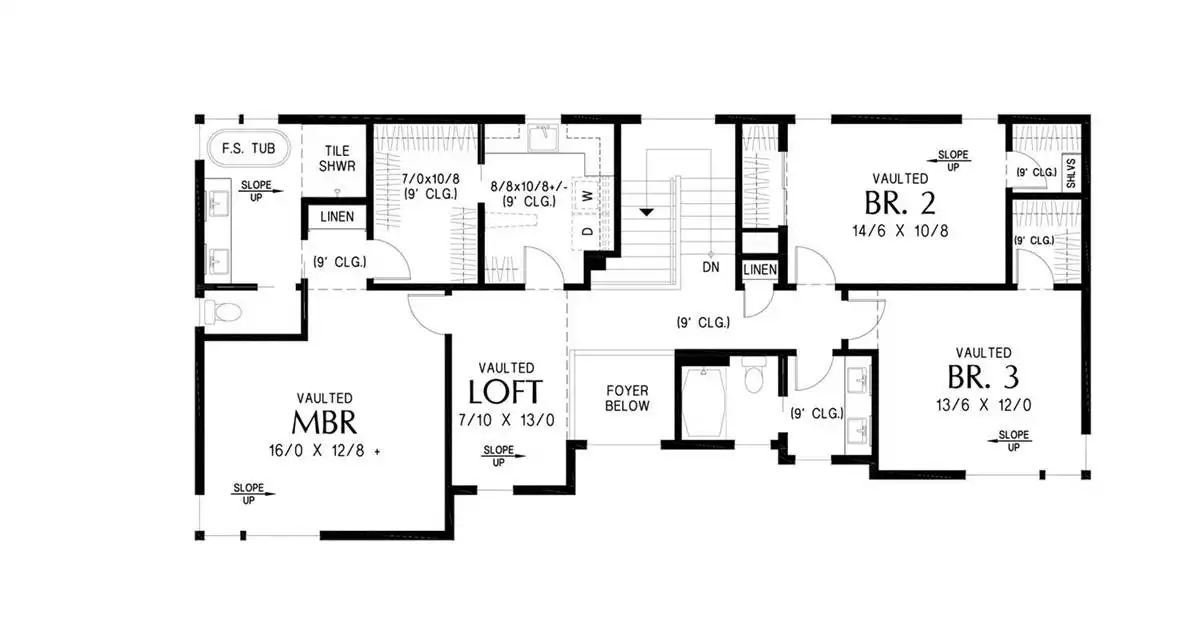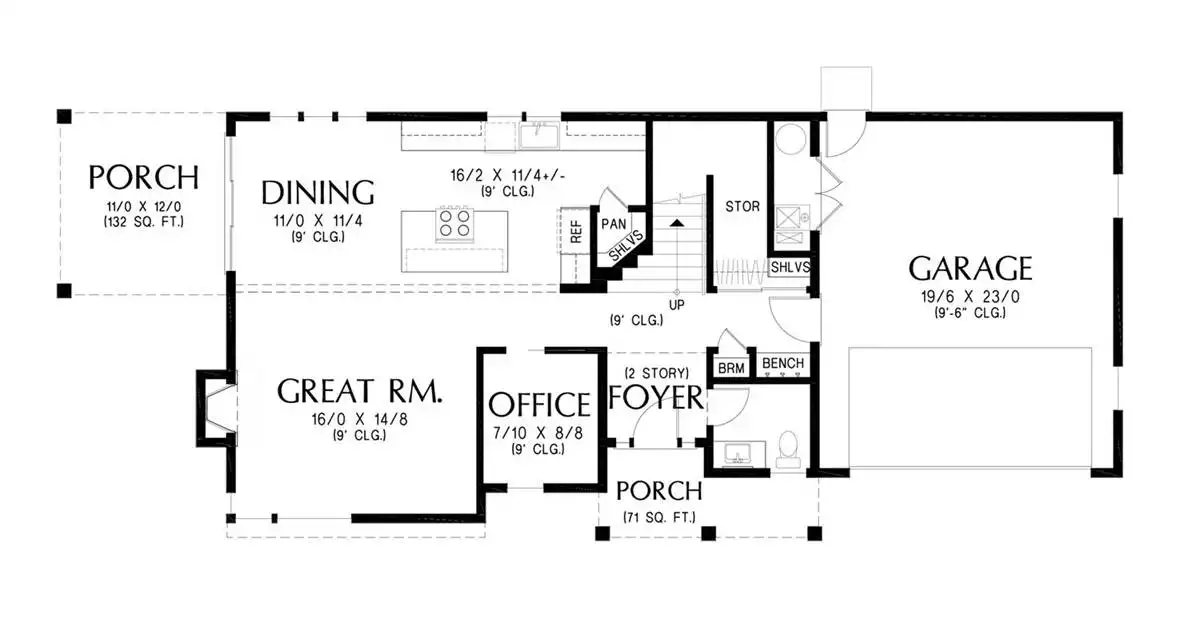 For those with wide lots that lack in depth, House Plan 10276 offers a dramatic contemporary solution! This striking home offers 2,314 square feet with three bedrooms and two-and-a-half bathrooms across two stories, and its footprint is a unique 70' wide by 28' deep. Talk about breadth! The main level includes a two-story foyer with a powder room, an office, and open-concept living with an island kitchen. There's also a mudroom that connects to the two-car garage. All the bedrooms are upstairs, and they all have vaulted ceilings! The primary suite is privately located on one side and has a gorgeous five-piece bath with a walk-in closet. The other bedrooms on the opposite side of the floor share a four-piece hall bath. A vaulted loft and the large laundry room round out this level!
