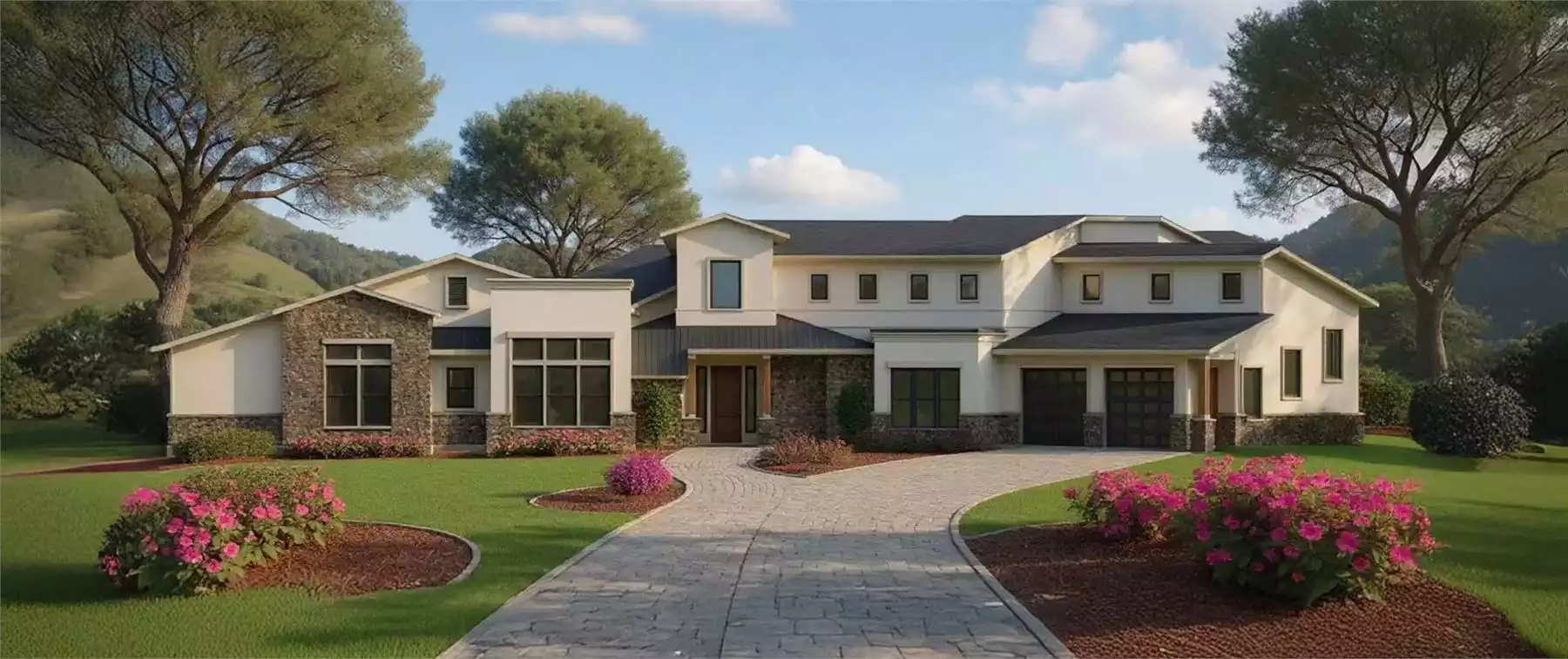 Casa De Rev is a stunning contemporary house plan that highlights seamless indoor–outdoor living and an impressive open layout. The heart of the home is the great room with soaring 14’ ceilings, opening to multiple covered porches that capture natural light and surrounding views. The kitchen features a walk-in pantry, cooking porch access, peninsula seating, and a casual dining space that keeps gatherings easy and connected. The main-level primary suite includes a tray ceiling, two large walk-in closets, and a spa-inspired bath designed for everyday luxury. Bedrooms 2 and 3 are placed separately from the primary suite for privacy, with convenient access to the shared bath. The courtyard layout and loft/home office level introduce architectural excitement and functional flexibility. A 3-car garage with front entry and workshop/storage space supports active lifestyles.
