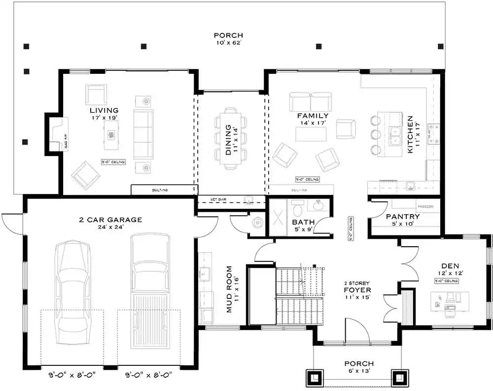 Each set of construction documents includes detailed, dimensioned floor plans, basic electric layouts, cross sections, roof details, cabinet layouts and elevations, as well as general IRC specifications. They contain virtually all of the information required to construct your home. The typical plan set does not include any plumbing, HVAC drawings, or engineering stamps due to the wide variety of specific needs, local codes, and climatic conditions. These details and specifications are easily obtained from your builder, contractors, and/or local engineers.