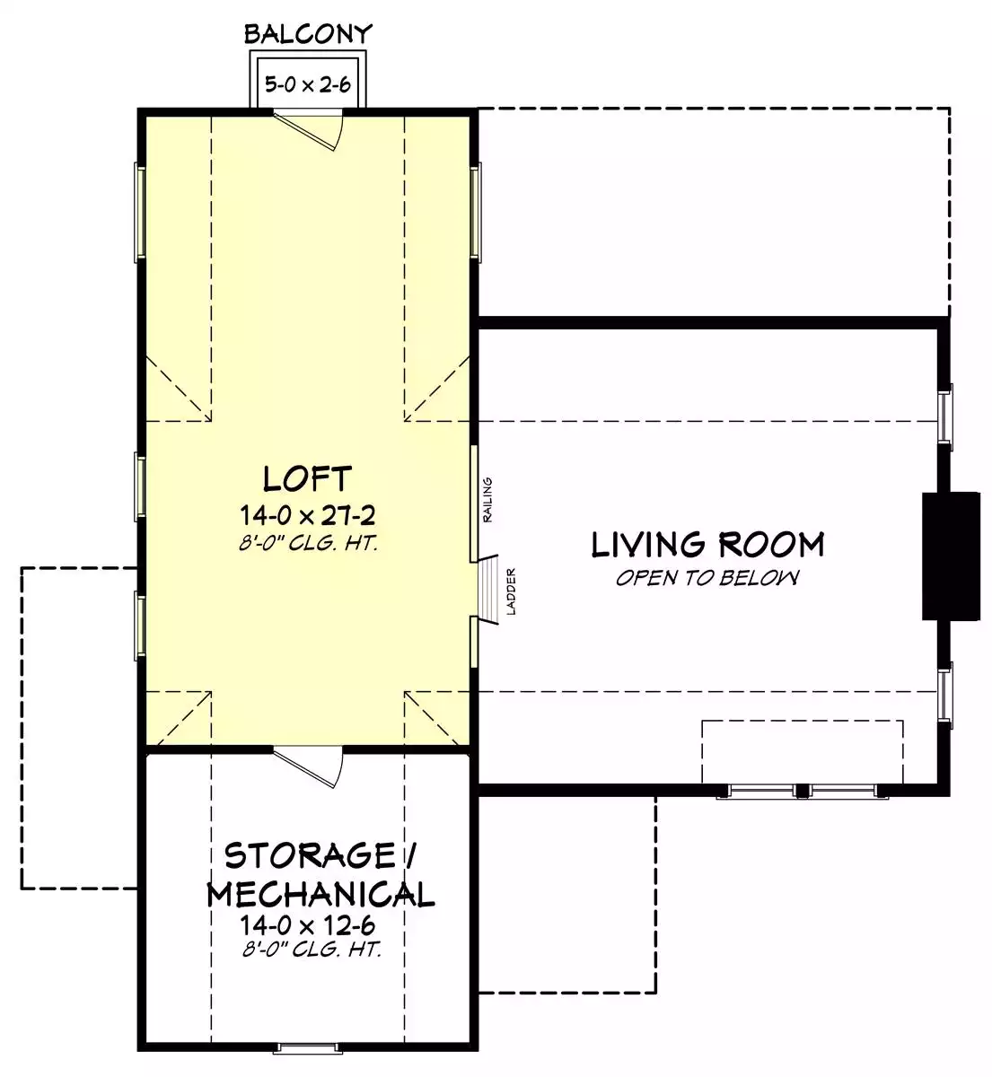What a lovely cottage! House Plan 10365 could be the perfect vacation or retirement home with its classic traditional style and flexible layout of modest size. Inside, you'll find 1,494 square feet with one bedroom and one bathroom. The bedroom and bathroom are located in the front hallway along with the laundry closet, and the bathroom has hall access as well as direct access from the bedroom--it makes a great suite for you and is ready to serve guests, too! The living room offers two-story volume, high windows, and a fireplace, making it a grand place to gather. The kitchen tucked away in back has an island and space for a table, and it connects to the back porch. But there's more! There's a ladder in the living room that goes up to the loft, where there's plenty more space to make your own. Perhaps you'd like a studio or bunkroom? The loft gets plenty of natural light and even has a small balcony in back, so it's ready to be whatever else you may need!