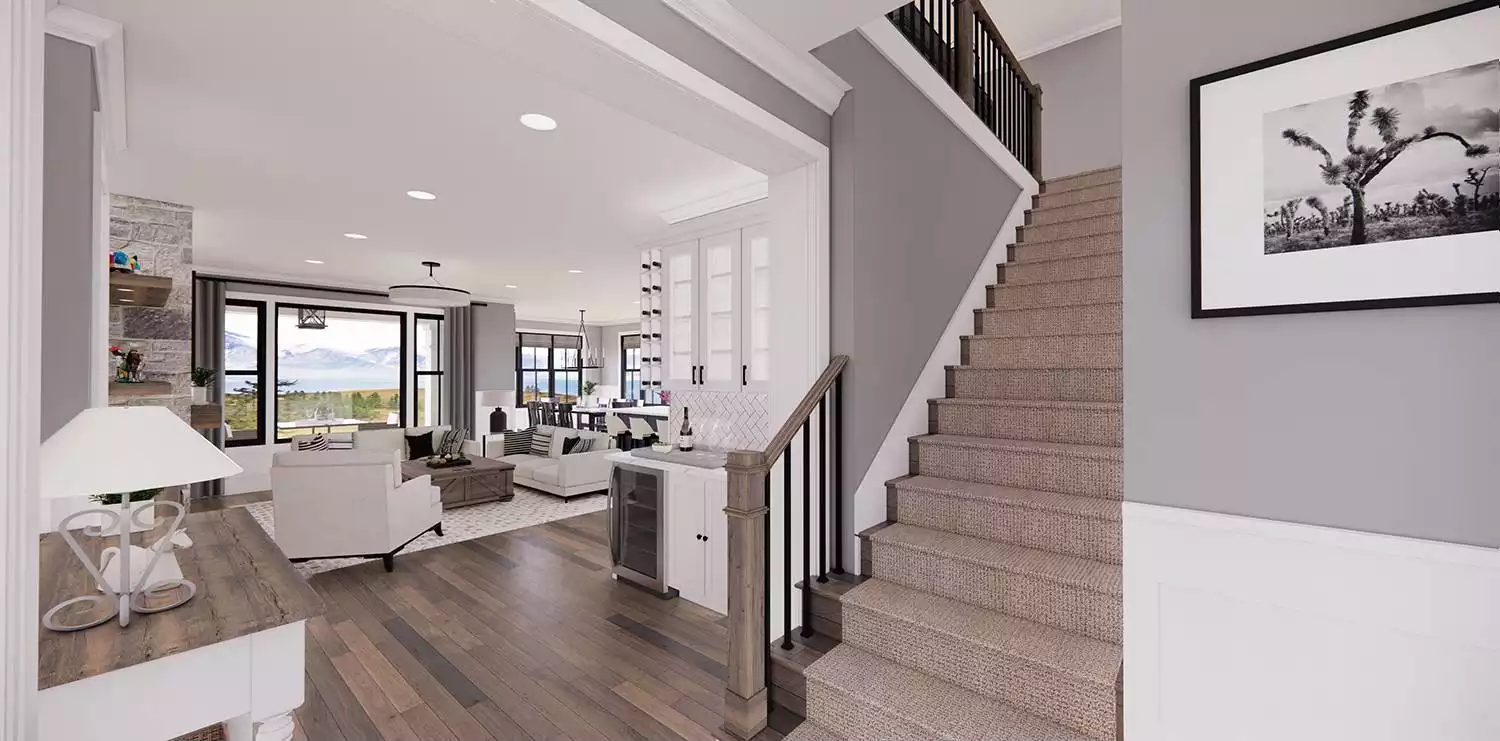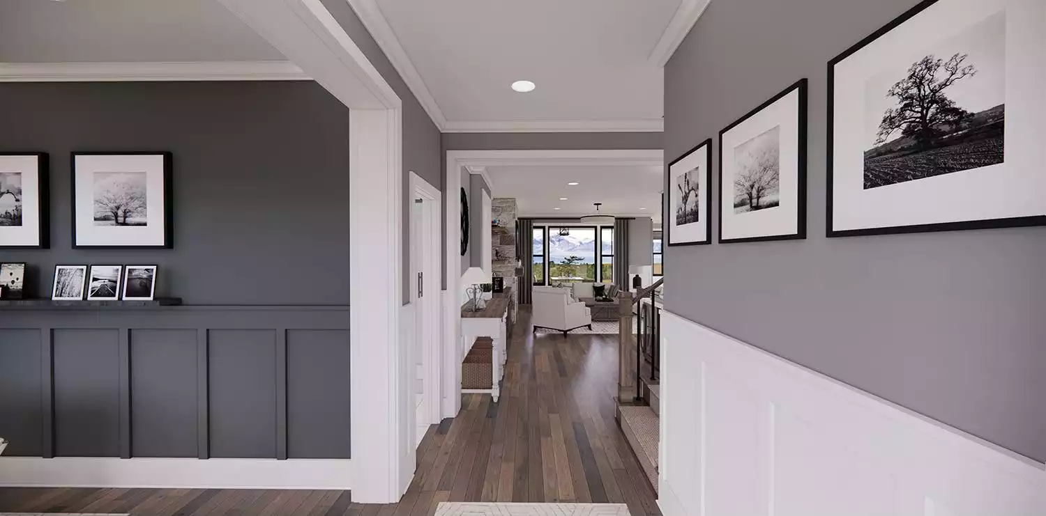 This compact house plan, Westmount, is ideal for a narrow lot, offering an open floor plan that allows you to enjoy the fireplace from the great room, kitchen, and dining area, with seamless indoor-outdoor living thanks to the covered rear porch. The large kitchen island, expansive walk-in pantry, and laundry room connecting the garage and kitchen add practical convenience, while the home office and relaxing front porch offer dedicated spaces for work and leisure. Upstairs, a spacious loft serves as a versatile media or game room, with two bedrooms featuring large walk-in closets and a bonus room that provides future expansion potential or extra storage.