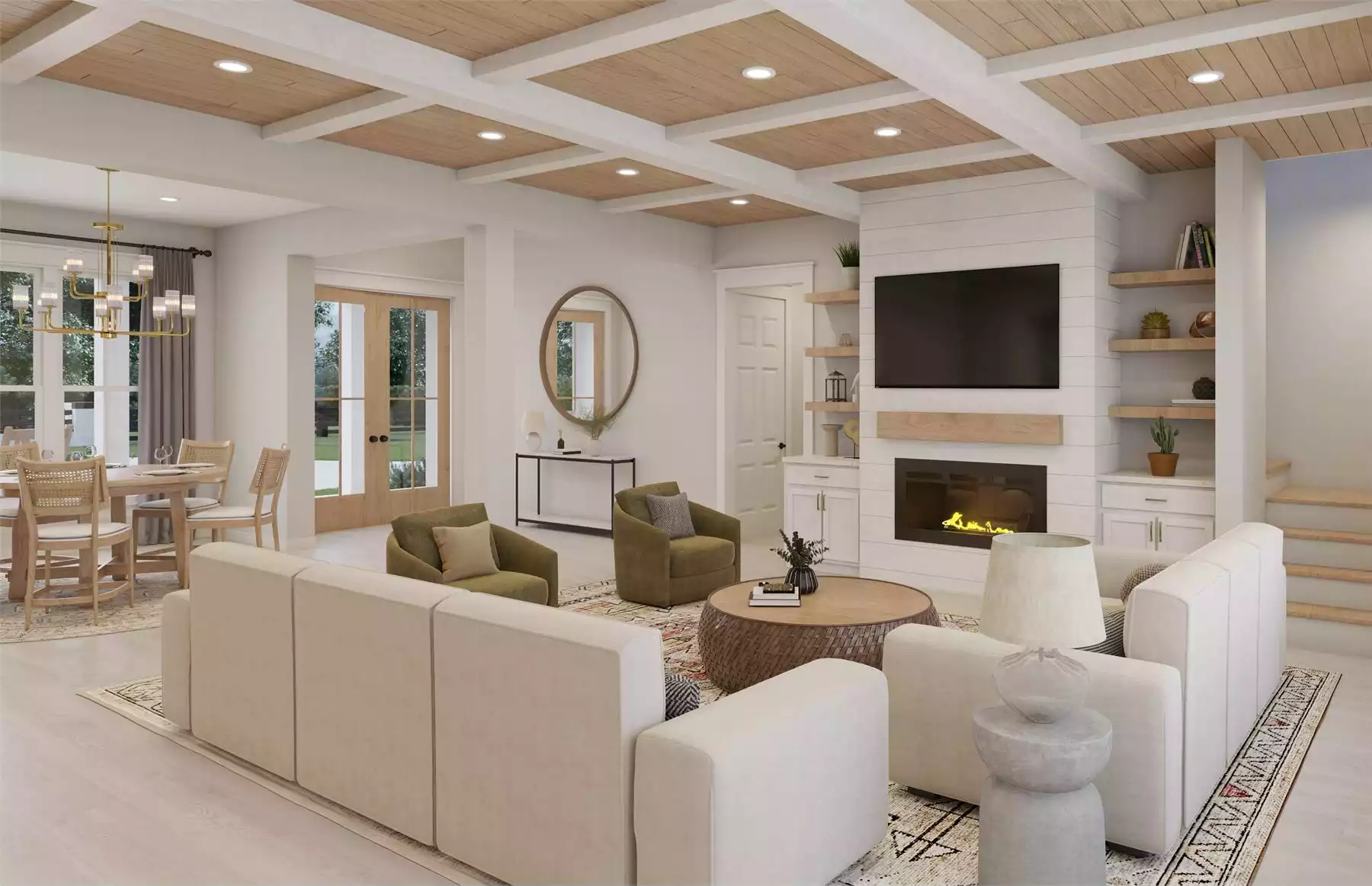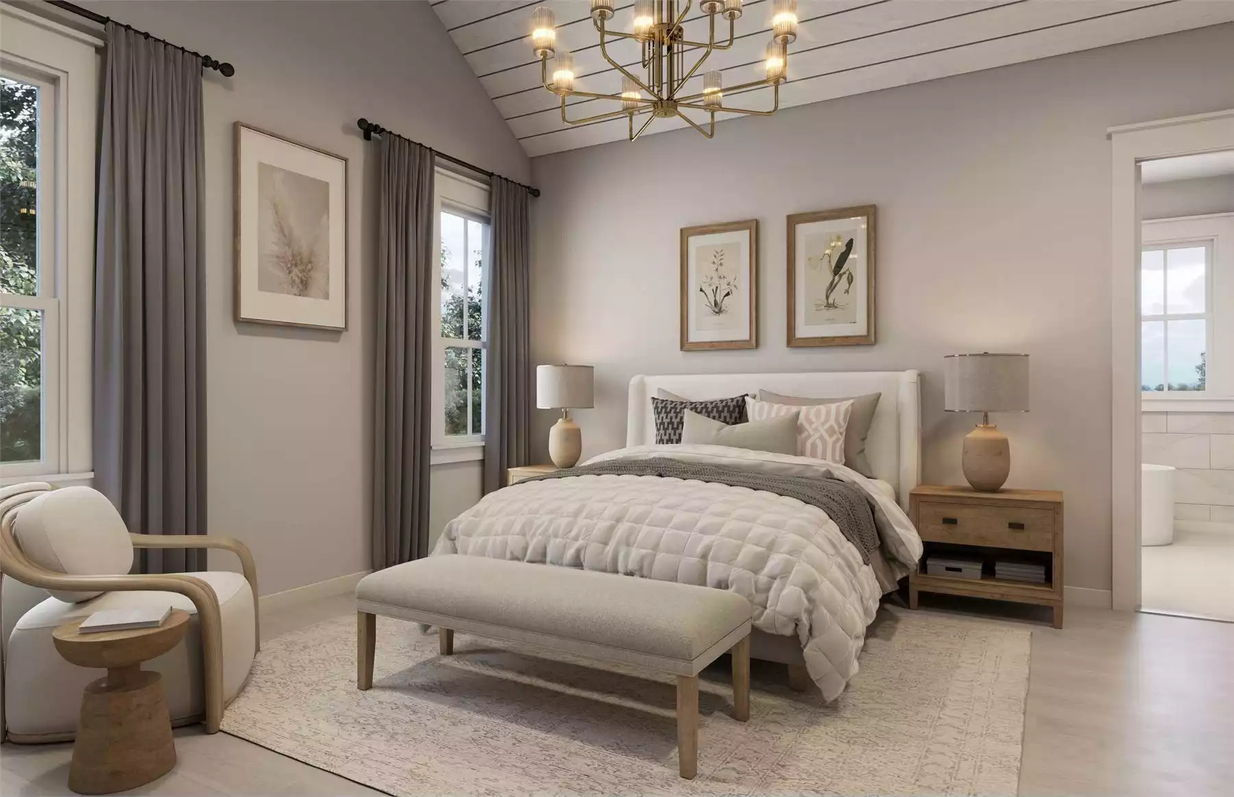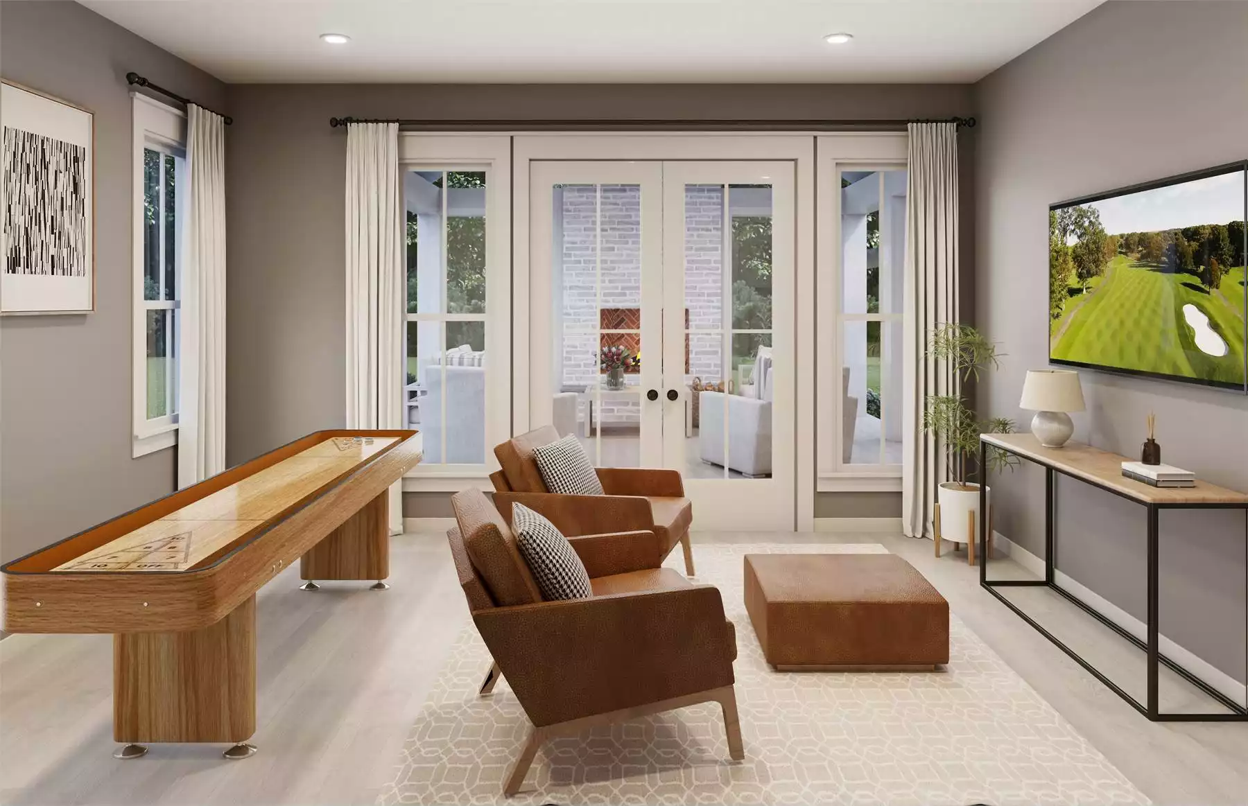 Groves Lane is a spacious and versatile two-story home offering 5 bedrooms, 3.5 bathrooms, and a 3-car garage, designed with modern families in mind. The open-concept layout seamlessly connects the great room, dining area, and kitchen, which features a large eat-at island and walk-in pantry—perfect for gatherings and everyday living. The main suite is a true retreat, complete with a vaulted ceiling, generous bathroom, and a walk-in closet that conveniently connects to the laundry room. Two of the bedrooms offer flexible use as a home office or game room, while a dedicated media room enhances entertainment options. Outdoor living is just as impressive, with a charming wraparound front porch and a large rear porch with an outdoor fireplace, ideal for relaxing and entertaining year-round.