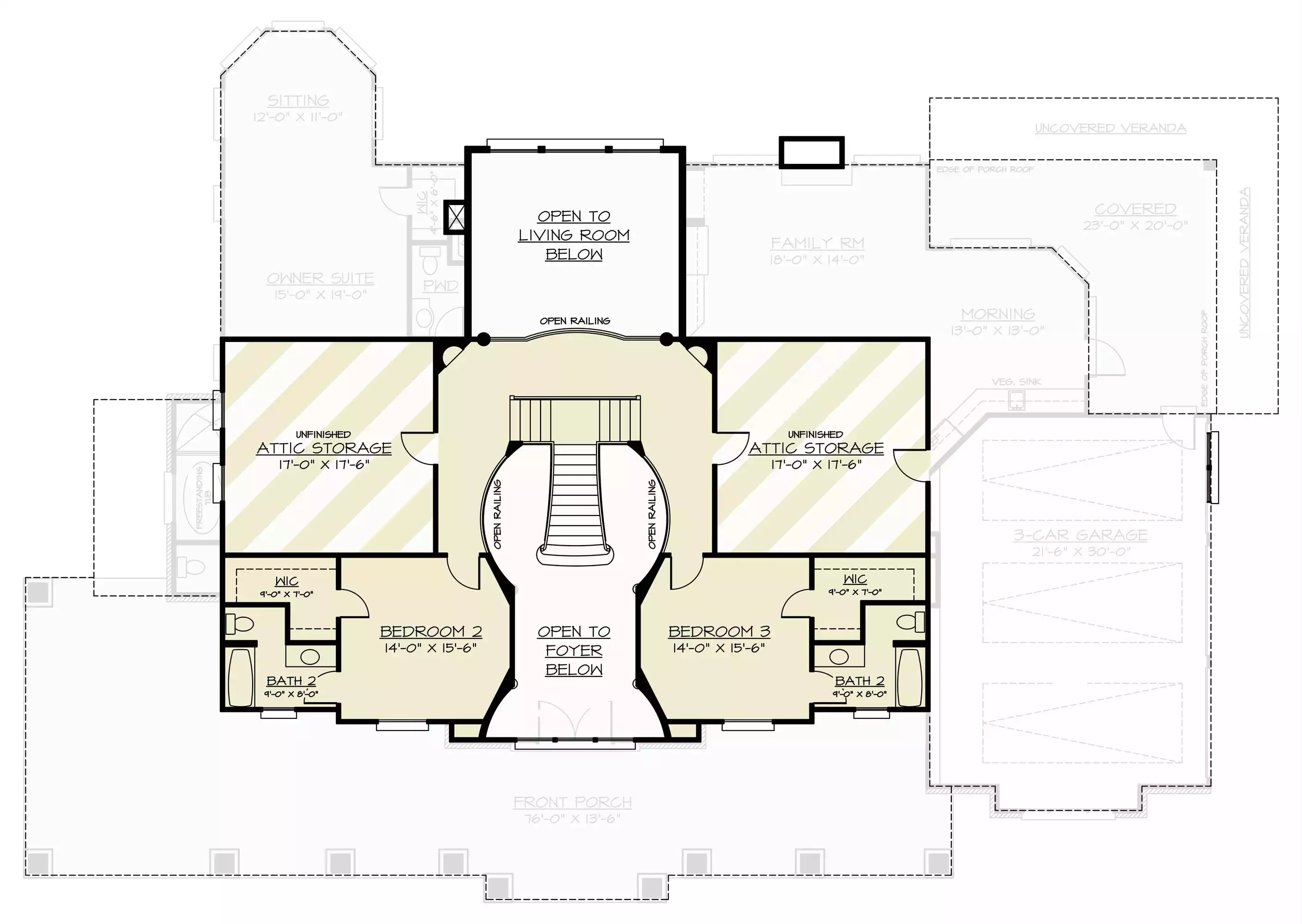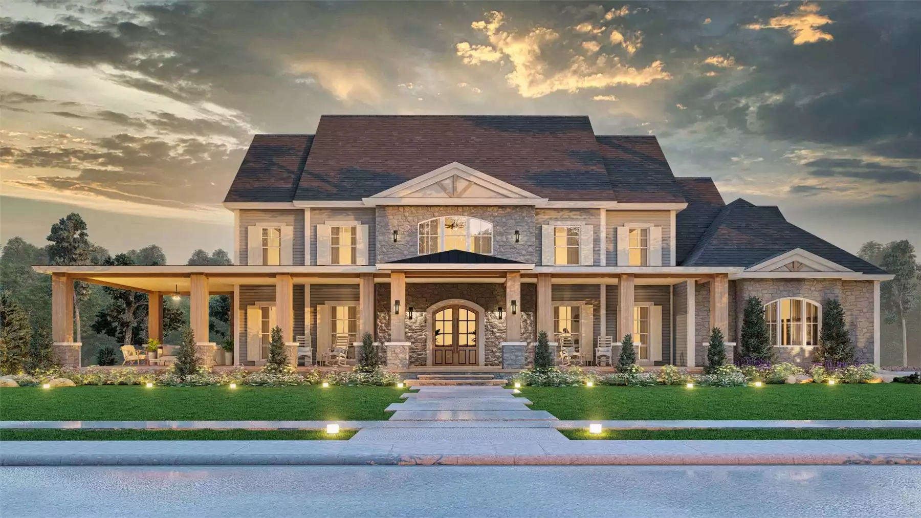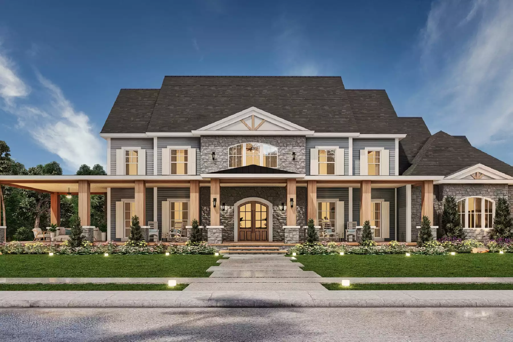 If you're in the market for a luxury home with a mix of farmhouse and traditional appeal, take a look at House Plan 7252. With 3,986 square feet across two stories plus another 3,091 square feet of potential in the basement, you definitely won't lack for space! The first floor boasts two-story volume in the grand foyer entrance and the formal living room. The foyer is flanked by the office and formal dining room while the informal open floor plan between the island kitchen, nook, and family room sit in back. The master suite is also placed on the main level and offers a sunny sitting area along with a luxurious five-piece ensuite bath and a private morning kitchen for coffee. Head up the dramatic central staircase to find two secondary bedroom suites along with unfinished attic spaces that you can make your own. Check out the proposed basement layout to find tons of extras like a home gym, office, craft room, and media space beside another kitchen for seamless hosting!