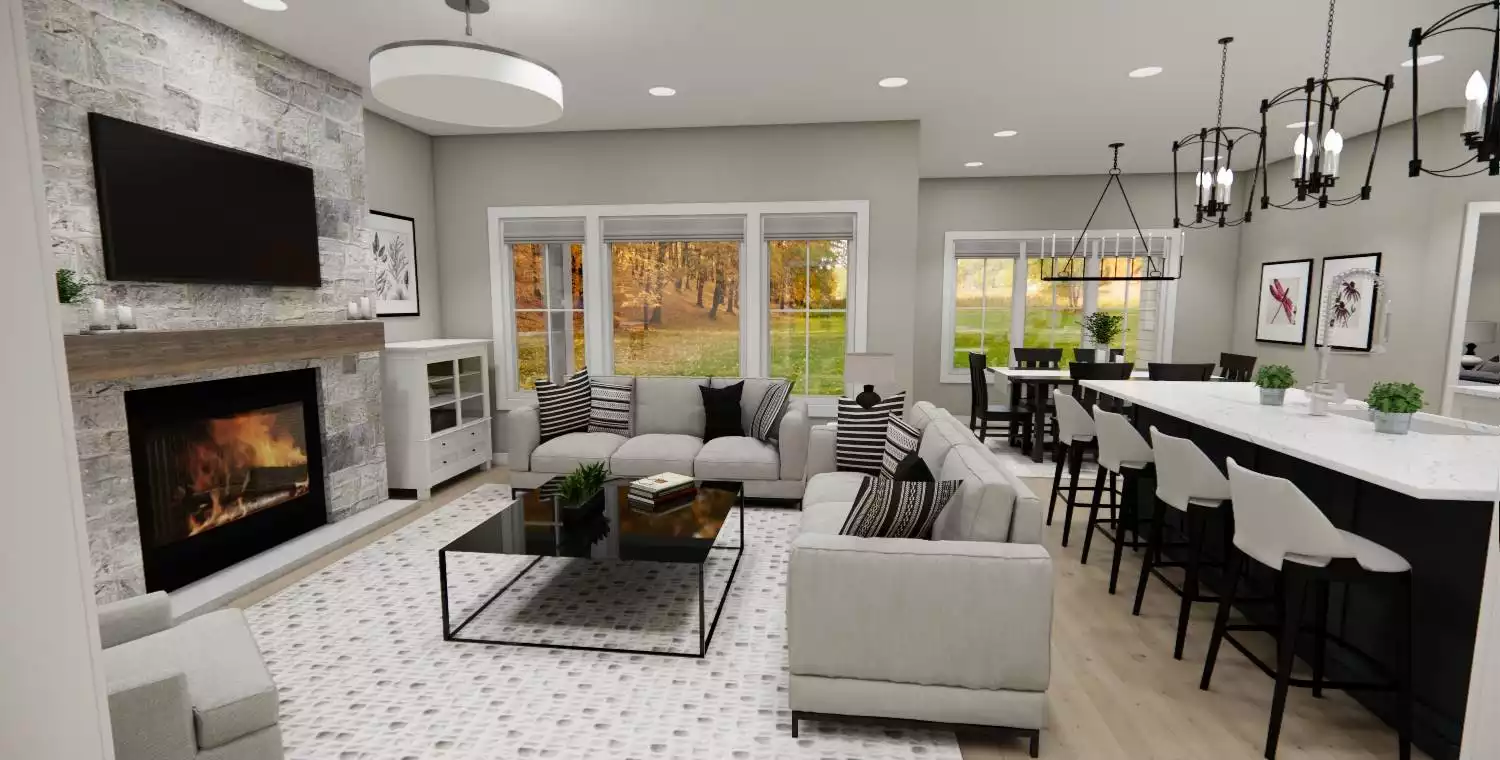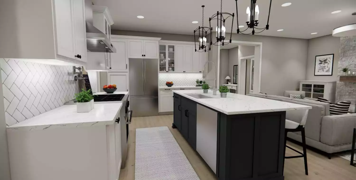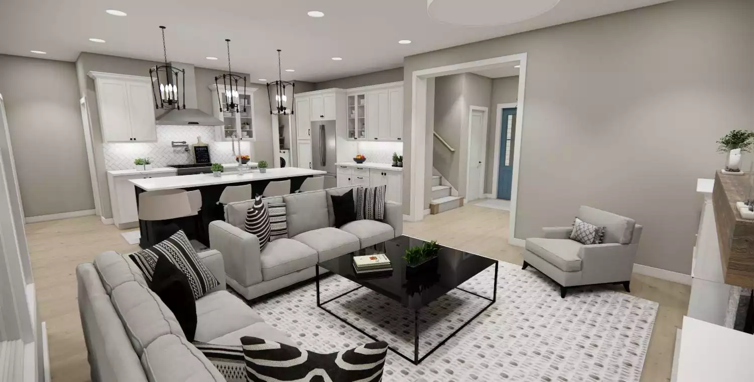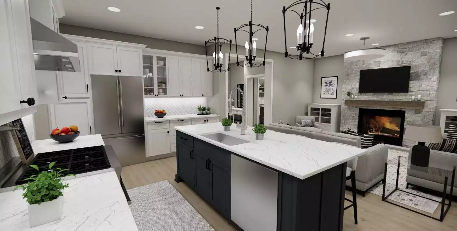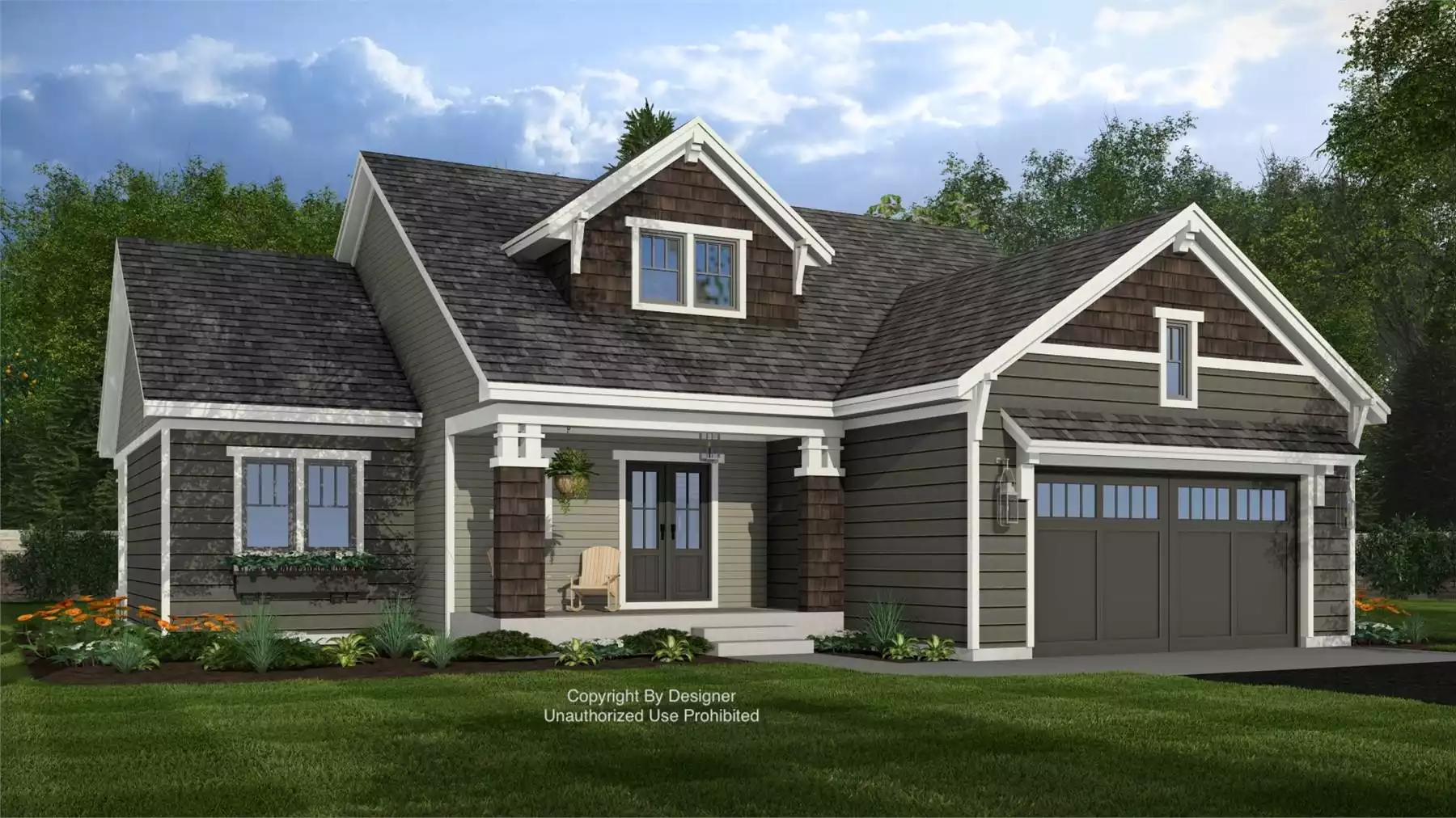 Whilton Cove is a beautifully crafted Bungalow that blends timeless style with versatile living. Featuring four bedrooms and three bathrooms, this home welcomes you with a wide front porch and a bright foyer with soaring ceilings. The main floor offers an open layout connecting the great room, dining area, and a chef-style kitchen with a large island and cozy fireplace. A mudroom links the kitchen to the two-car garage, while the private primary suite boasts a luxurious bath and walk-in closet. A guest room with full bath is perfect for visitors or a home office. Upstairs, two bedrooms with walk-in closets share a full bath and open into a spacious loft ideal for work or play.