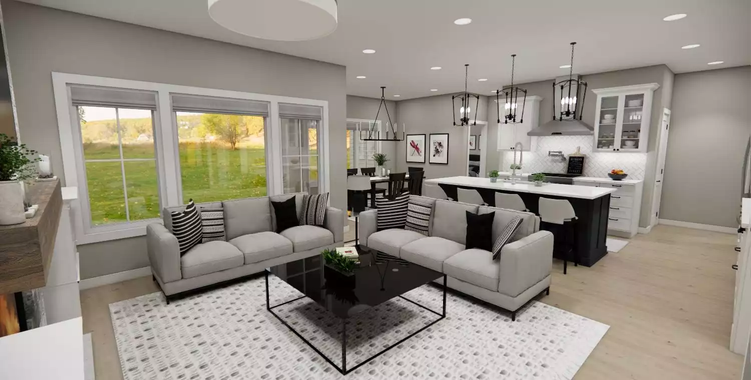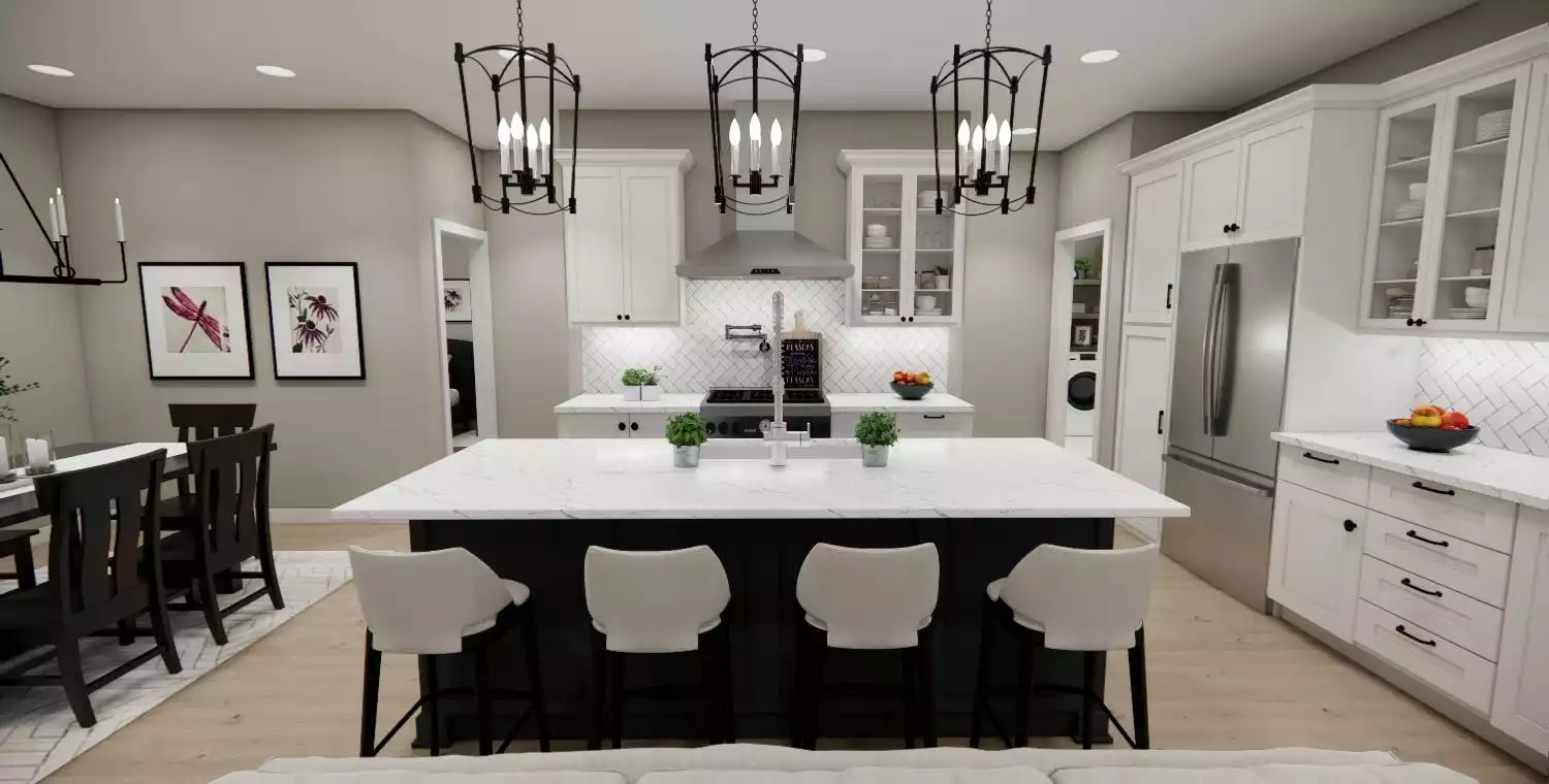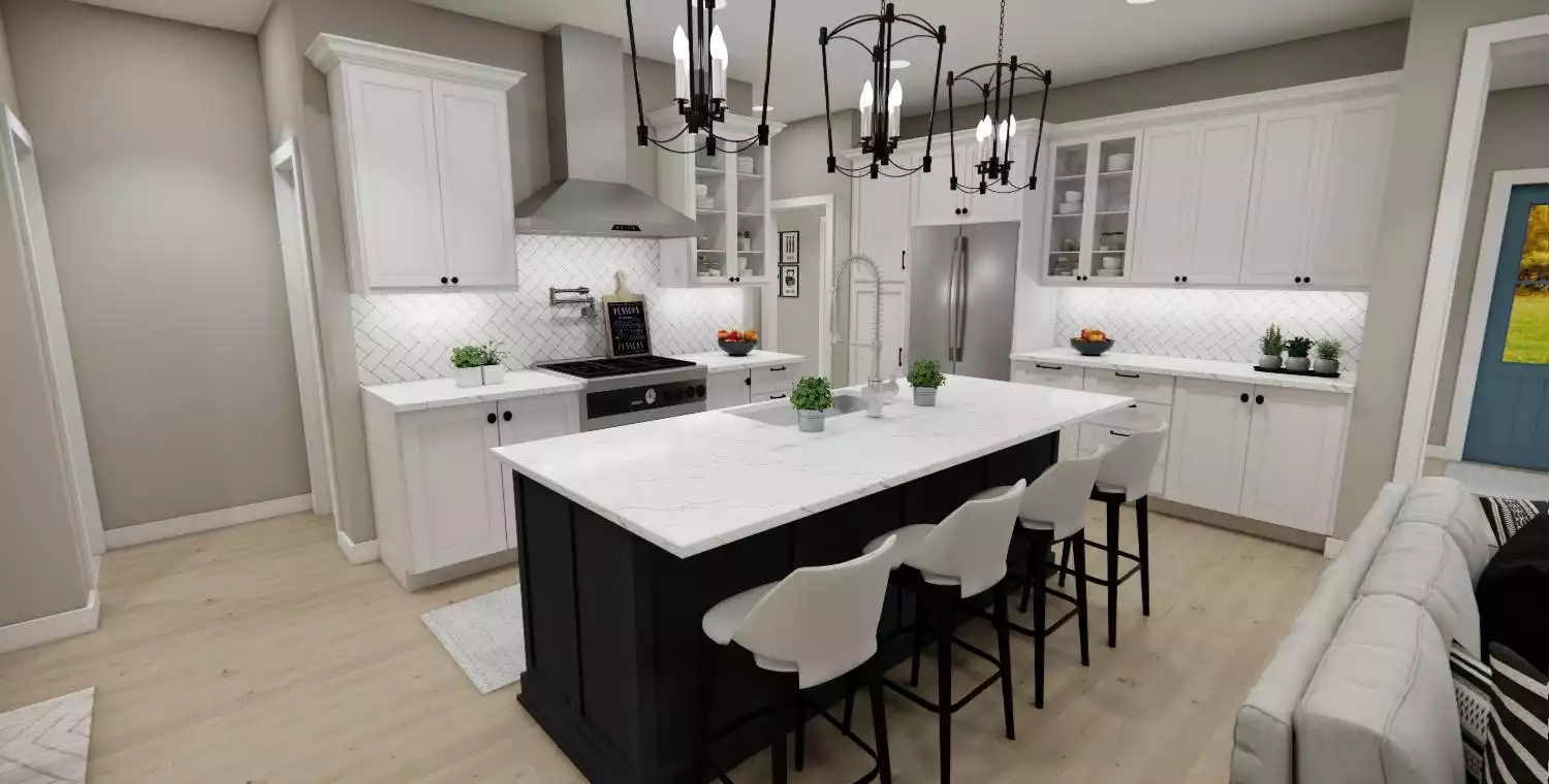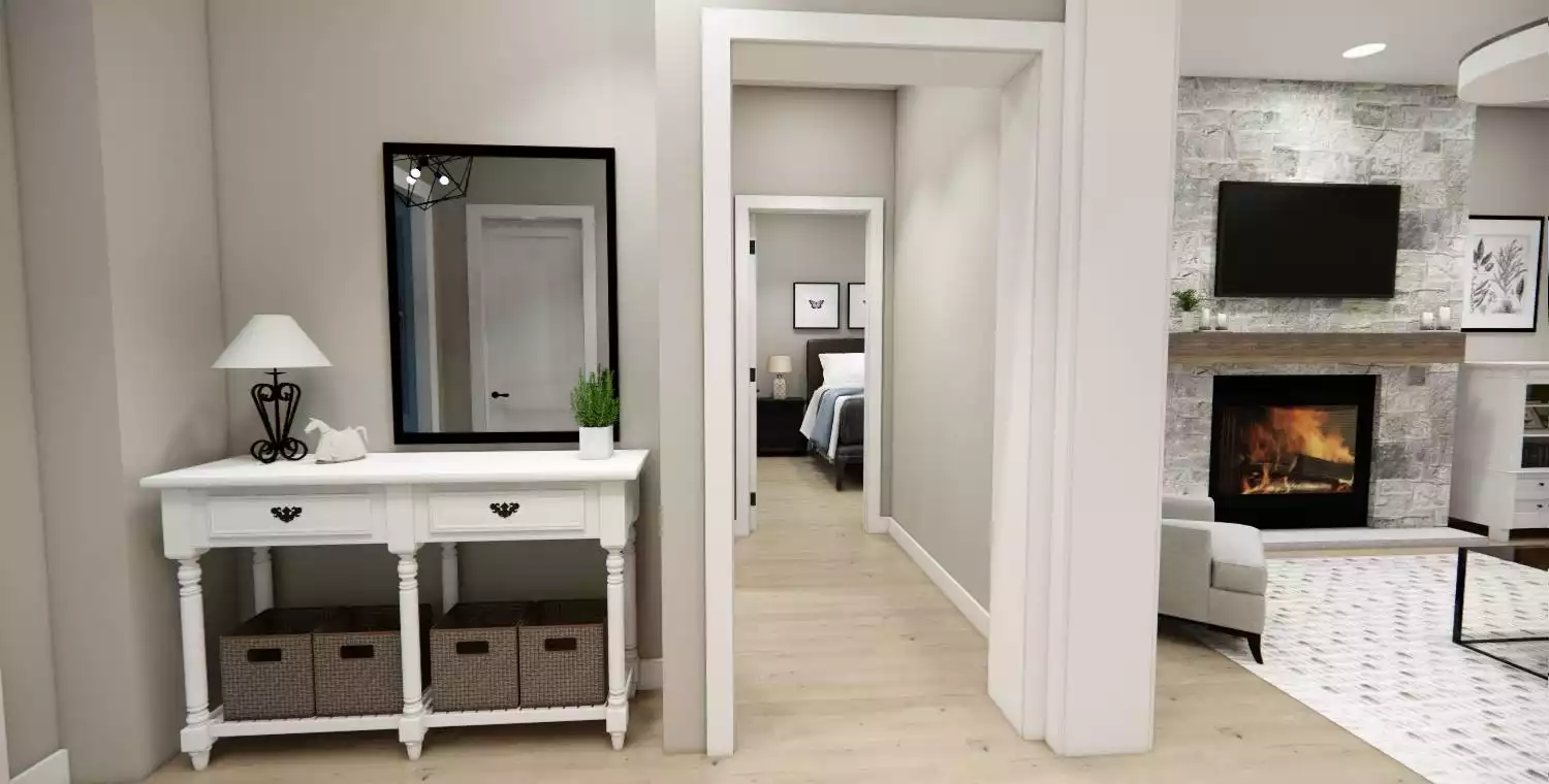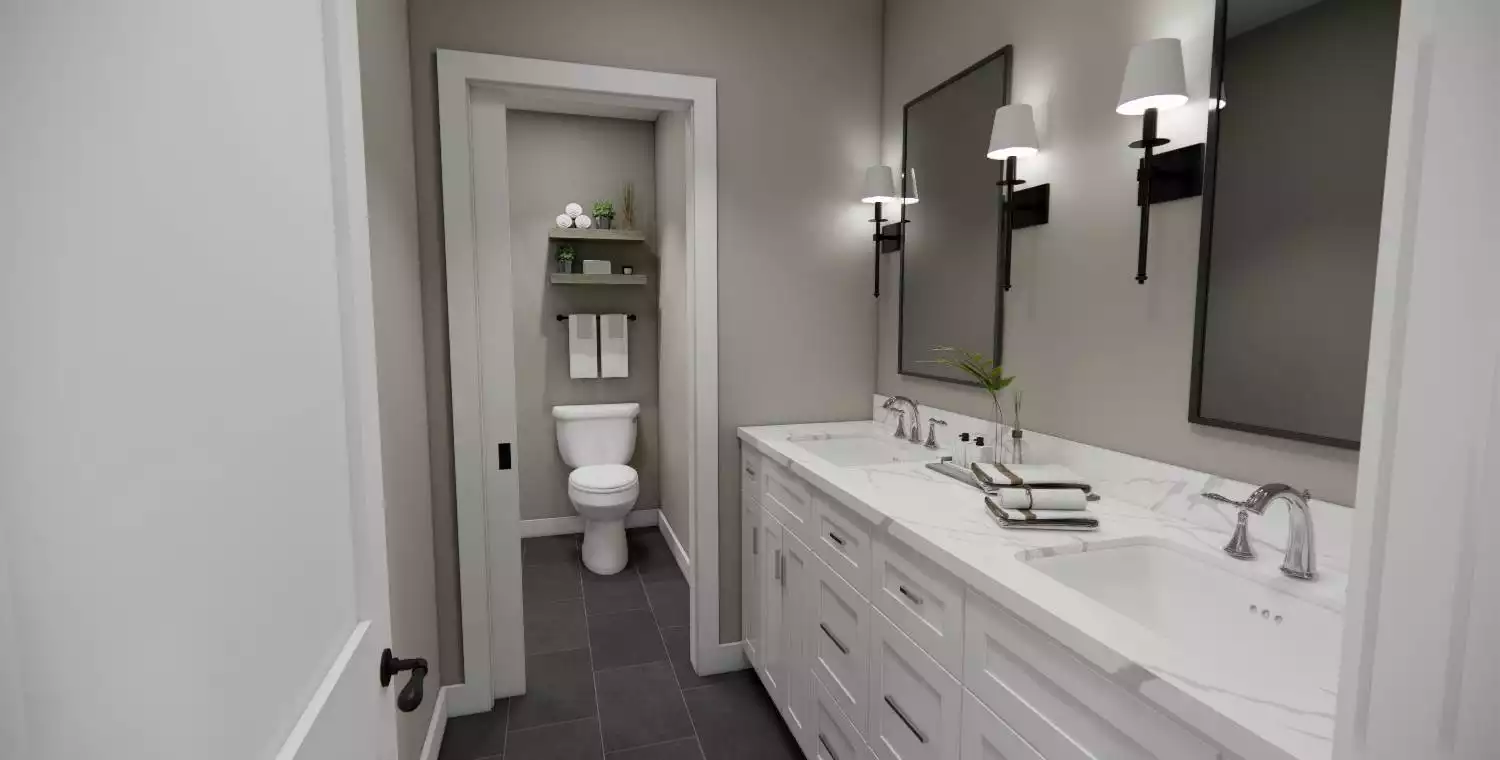 Whilton Cove is a beautifully crafted Bungalow that blends timeless style with versatile living. Featuring four bedrooms and three bathrooms, this home welcomes you with a wide front porch and a bright foyer with soaring ceilings. The main floor offers an open layout connecting the great room, dining area, and a chef-style kitchen with a large island and cozy fireplace. A mudroom links the kitchen to the two-car garage, while the private primary suite boasts a luxurious bath and walk-in closet. A guest room with full bath is perfect for visitors or a home office. Upstairs, two bedrooms with walk-in closets share a full bath and open into a spacious loft ideal for work or play.