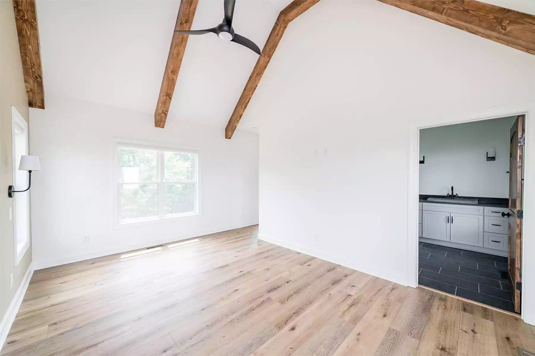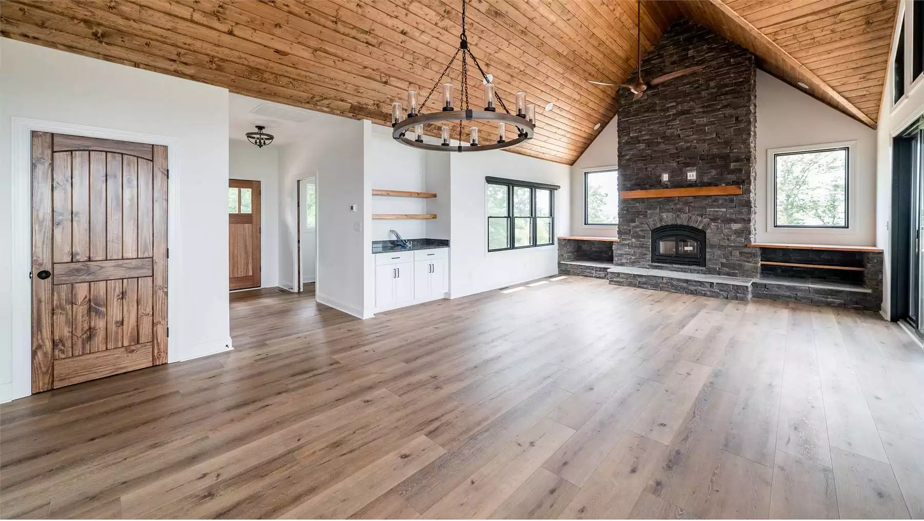 This charming 2,354-square-foot home blends warmth and elegance in a beautifully functional layout. The open floor plan connects the great room, dining area, and kitchen, creating the perfect flow for entertaining or relaxing with family. A vaulted ceiling adds volume and character, while the great room fireplace offers cozy comfort year-round. The main-floor primary suite provides a private retreat with a spacious walk-in closet and double vanity. Upstairs, two additional bedrooms and a shared bath provide plenty of space for family or guests. Outdoor living is easy with a welcoming front porch and a large rear deck for gatherings. This inviting design is ideal for anyone seeking a balance of comfort, charm, and open living.
