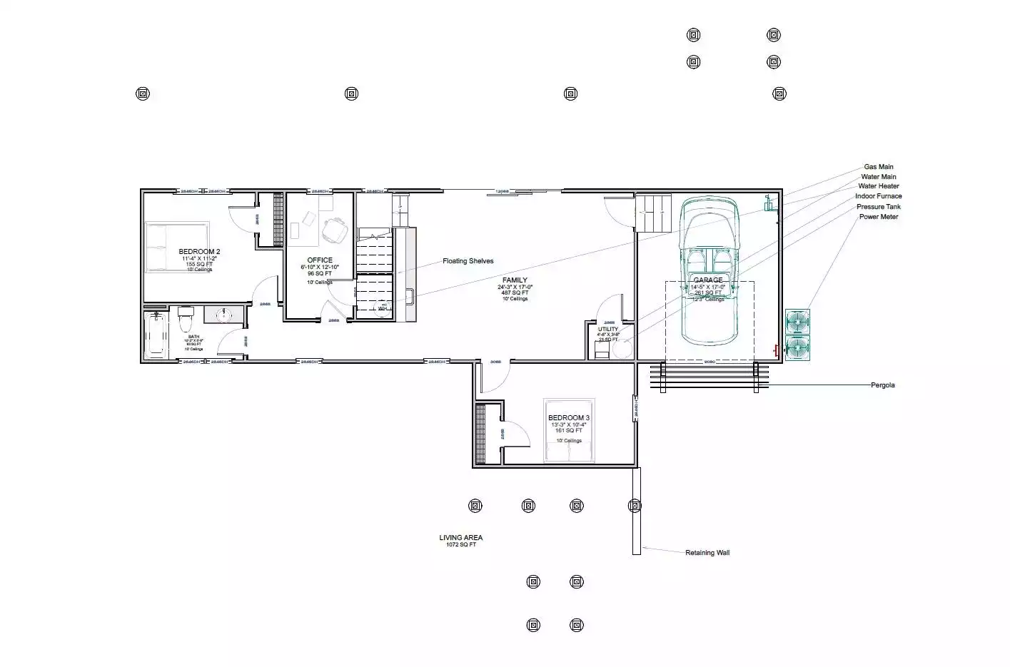 Each set of construction documents includes detailed, dimensioned floor plans, basic electric layouts, cross sections, roof details, cabinet layouts and elevations, as well as general IRC specifications. They contain virtually all of the information required to construct your home. The typical plan set does not include any plumbing, HVAC drawings, or engineering stamps due to the wide variety of specific needs, local codes, and climatic conditions. These details and specifications are easily obtained from your builder, contractors, and/or local engineers.