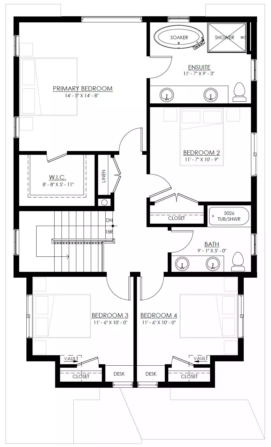 The Sannich is a stunning 3,233-square-foot Craftsman Cottage that blends classic architectural charm with modern functionality, perfect for families and professionals alike. With 5 bedrooms, 3.5 bathrooms, and a 2-car drive-under garage, this thoughtfully designed home offers a flexible layout across three levels. The lower level, featuring a 912-square-foot drive-under garage with mudroom access, includes a private guest bedroom, full bathroom, and a spacious rec room for entertainment or fitness. The main level’s 1,223 square feet include an inviting living room with built-in shelving, a fireplace, and sliding glass doors to a rear patio; a well-appointed kitchen with a large eat-at island and walk-in pantry; a dining area opening to a covered front porch; a dedicated home office; and a laundry room with backyard access. The upper level is a private retreat with a luxurious primary suite offering a walk-in closet and spa-like ensuite, plus three additional bedrooms—two with built-in desks—and a shared full bathroom. Craftsman details such as shingle siding, exposed beams, and a welcoming front porch combine with modern amenities like ample built-ins and seamless indoor-outdoor living spaces, making this home a timeless yet functional choice for sloped lots.
