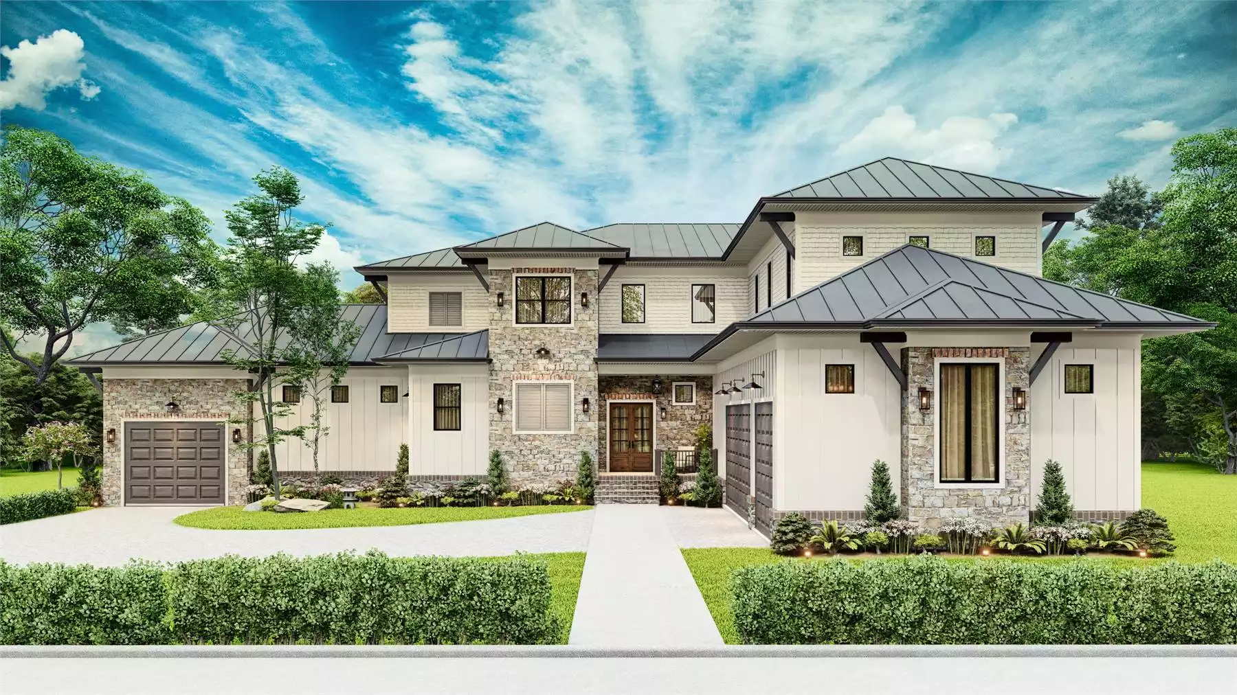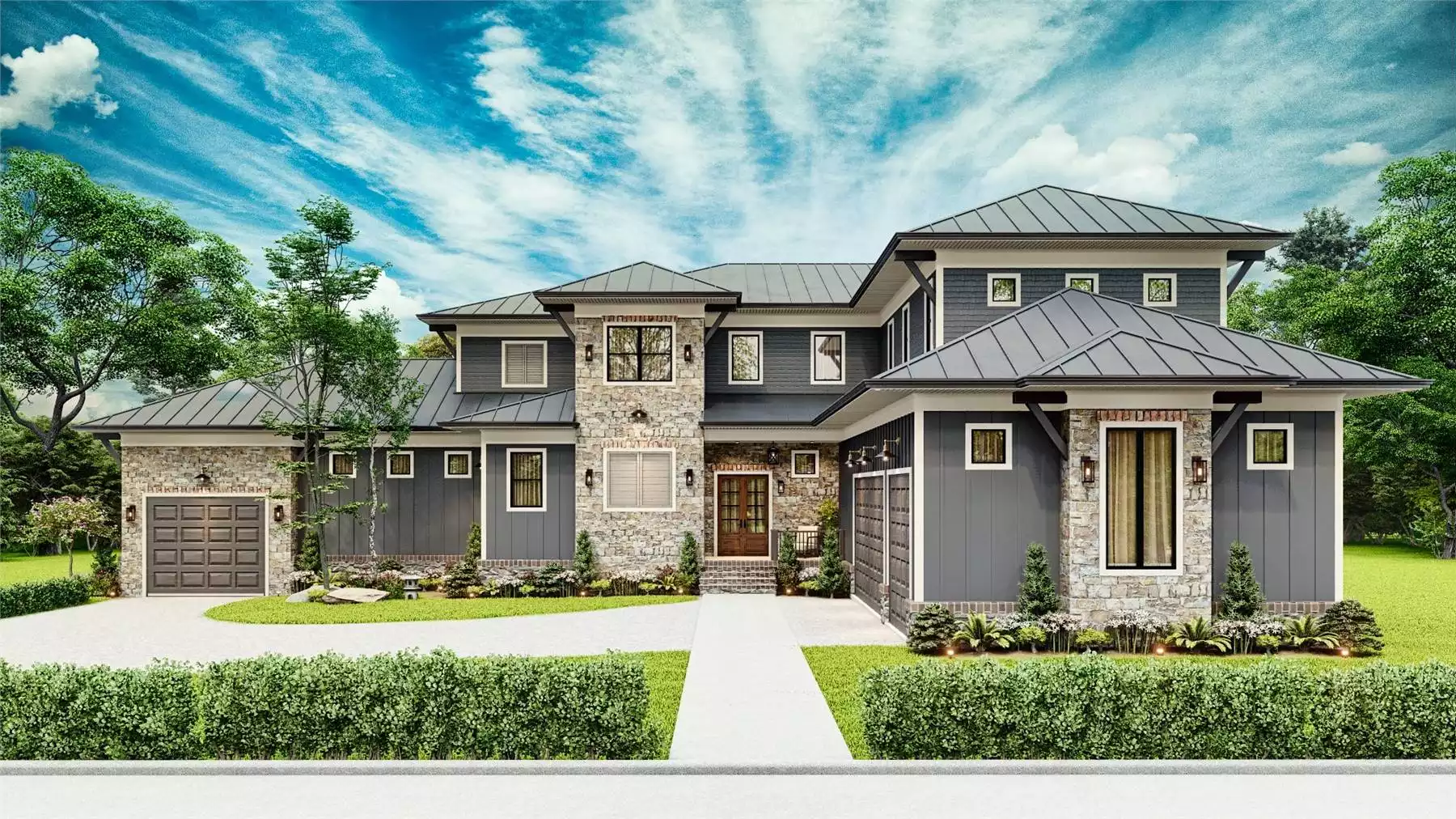 Evercrest is a spacious layout includes a 5-car garage and an inviting two-story foyer that leads into the heart of the home. The main level features a cozy family room with built-ins and fireplace, an open kitchen with bar seating, a wine room, office, mud room, laundry, and a covered rear porch—ideal for lakeside living. The luxurious main-floor master suite includes a private foyer, dual walk-in closets, and a spa-inspired bath. Upstairs, you’ll find a game room, safe room, study, a second covered porch, and four additional bedrooms—each with its own bath and walk-in closet. This plan blends functionality and comfort in a warm and welcoming Craftsman design.