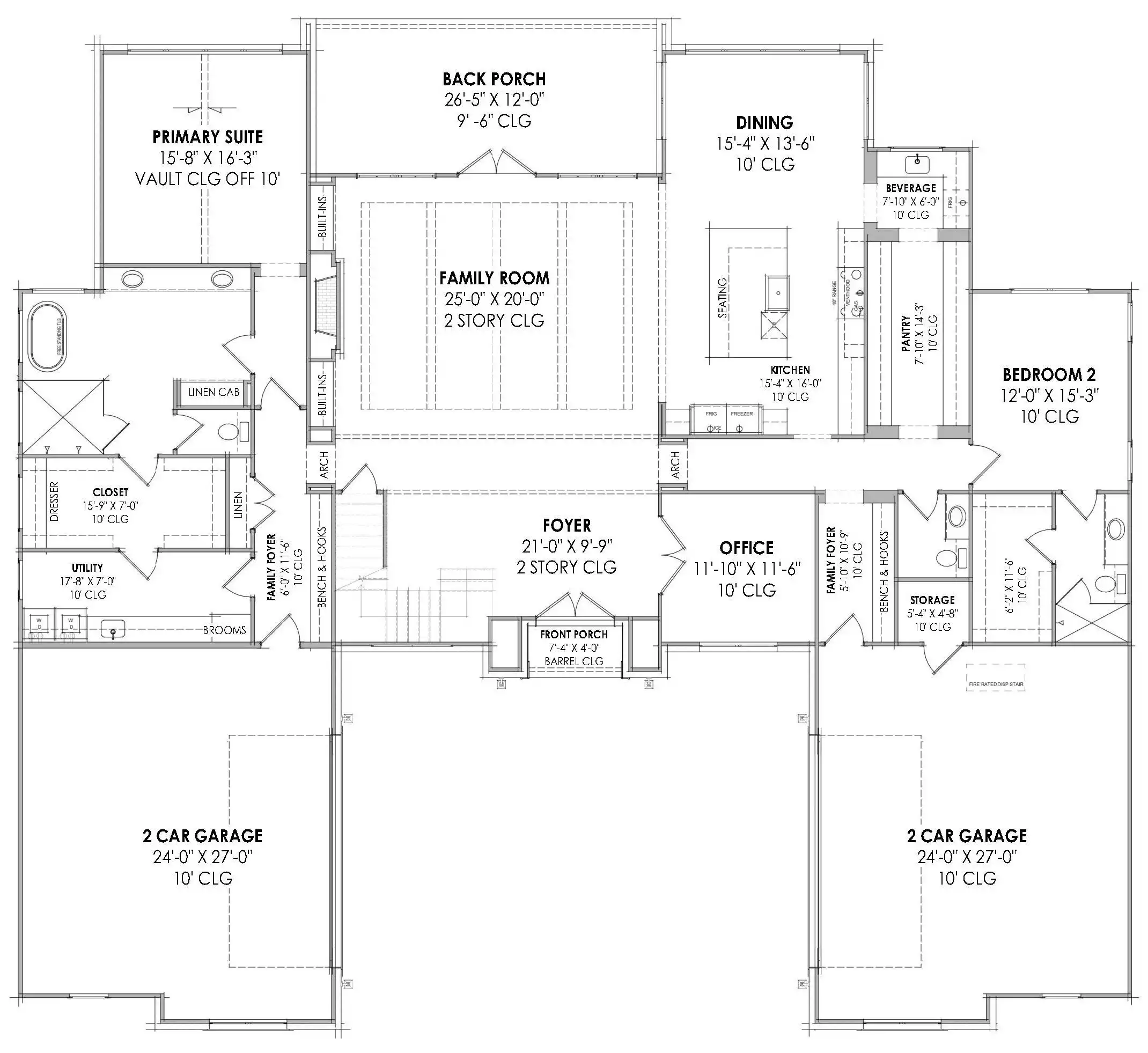 Each set of construction documents includes detailed, dimensioned floor plans, basic electric layouts, cross sections, roof details, cabinet layouts and elevations, as well as general IRC specifications. They contain virtually all of the information required to construct your home. The typical plan set does not include any plumbing, HVAC drawings, or engineering stamps due to the wide variety of specific needs, local codes, and climatic conditions. These details and specifications are easily obtained from your builder, contractors, and/or local engineers.