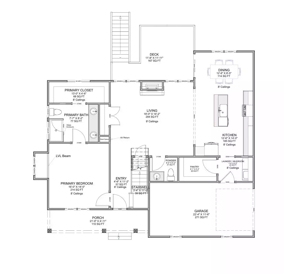 Each set of construction documents includes detailed, dimensioned floor plans, basic electric layouts, cross sections, roof details, cabinet layouts and elevations, as well as general IRC specifications. They contain virtually all of the information required to construct your home. The typical plan set does not include any plumbing, HVAC drawings, or engineering stamps due to the wide variety of specific needs, local codes, and climatic conditions. These details and specifications are easily obtained from your builder, contractors, and/or local engineers.