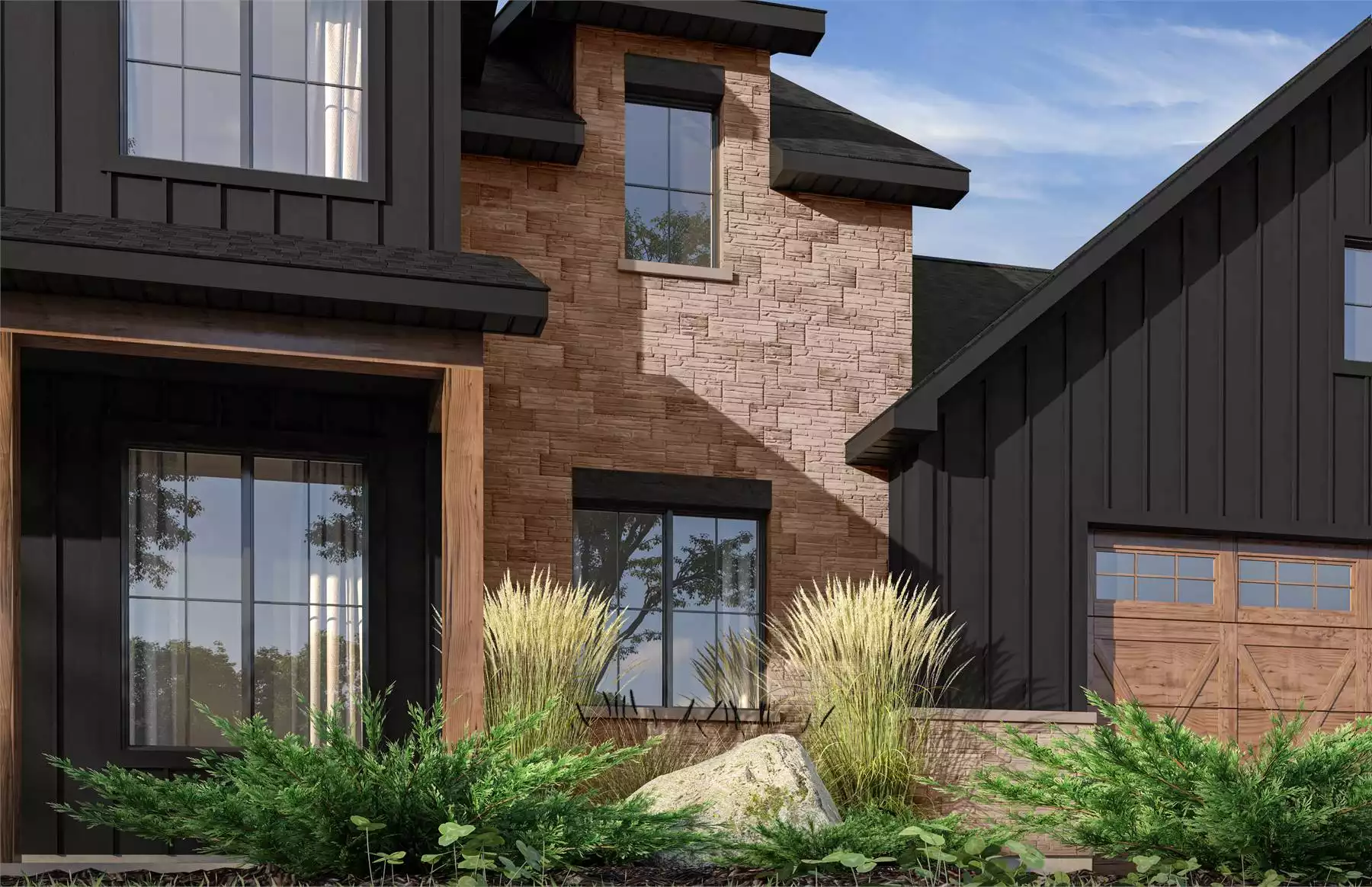 The Sophia is a 2,174 sq. ft. contemporary farmhouse that blends modern design with farmhouse charm. Its open floor plan features a spacious playroom on the main level, alongside an L-shaped kitchen, dining area, and a great room with a stunning two-story fireplace that opens to a large covered terrace, perfect for outdoor living. Upstairs, three bedrooms and an office offer ample space, with the luxurious primary suite boasting a spa-like ensuite. A two-car garage with storage above adds both functionality and convenience to this beautifully designed home.