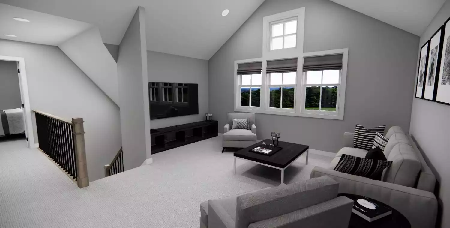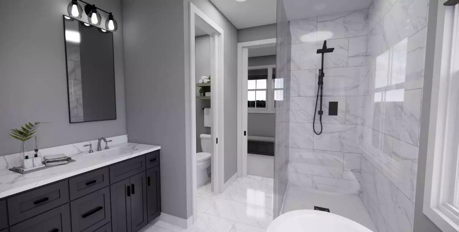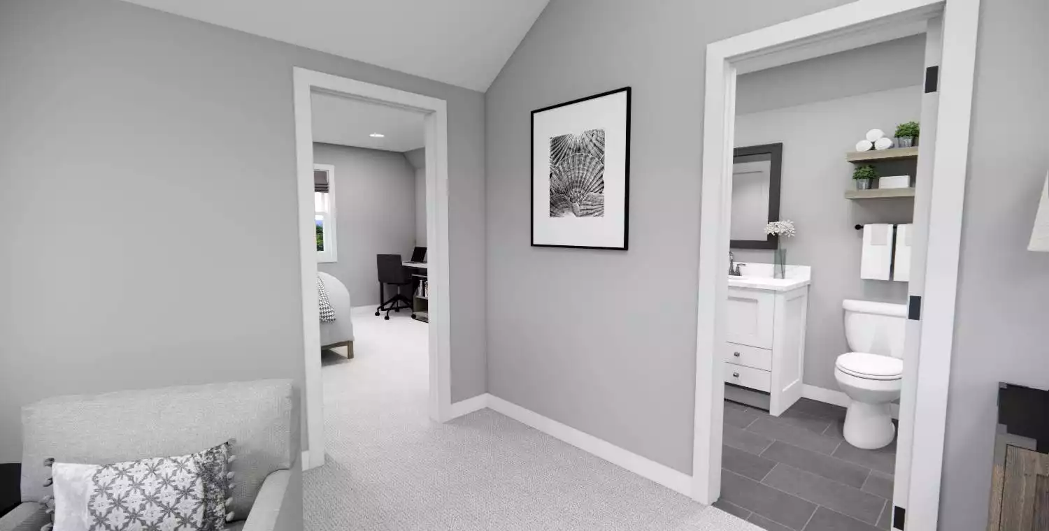 Perfectly sized for a family and offering plenty of privacy, too, House Plan 12404 is sure to appeal to today's owners. This 2,451-square-foot design boasts three bedrooms and three-and-a-half baths split on two stories, and every bedroom has direct access to a full bathroom! Step inside and a wide foyer ushers you into the great room. It has a fireplace in the living area, and island kitchen, and a sunny dining nook. Behind the kitchen, you'll find a walk-in pantry as well as access to the mudroom, which connects to the laundry room and garage. Clear across the house, a short hallway off the foyer includes the powder room and the private primary suite. This suite places the bedroom for rear views while the five-piece bath is brightened by a side window and the walk-in closet is placed in front. Head up the stairs in the foyer and you'll come to the vaulted loft--perfect for kids to have their own space. The loft is flanked by two bedrooms--one a private suite while the other has direct access to a full bath that is also accessible from the loft. This layout really maximizes functionality!