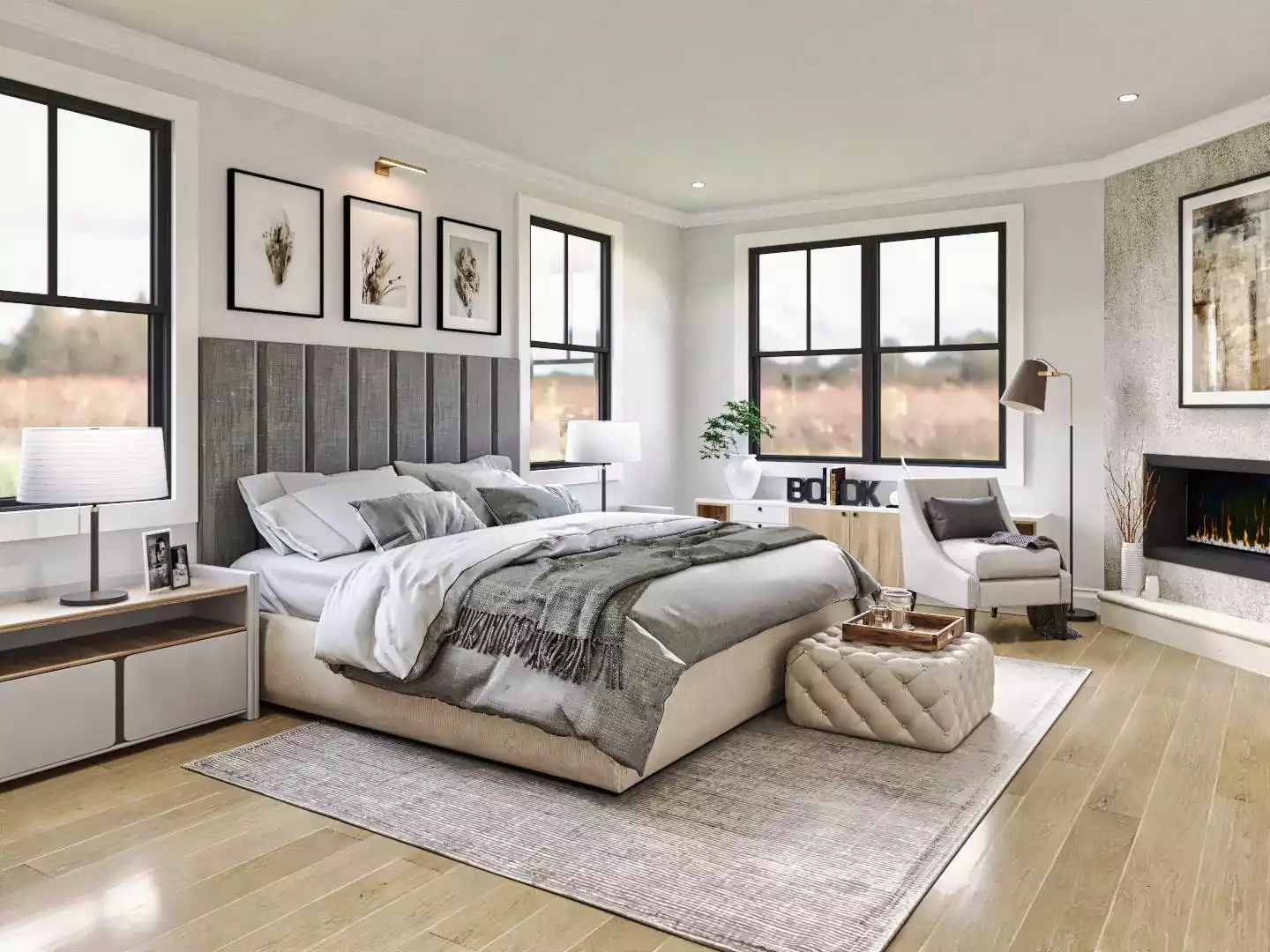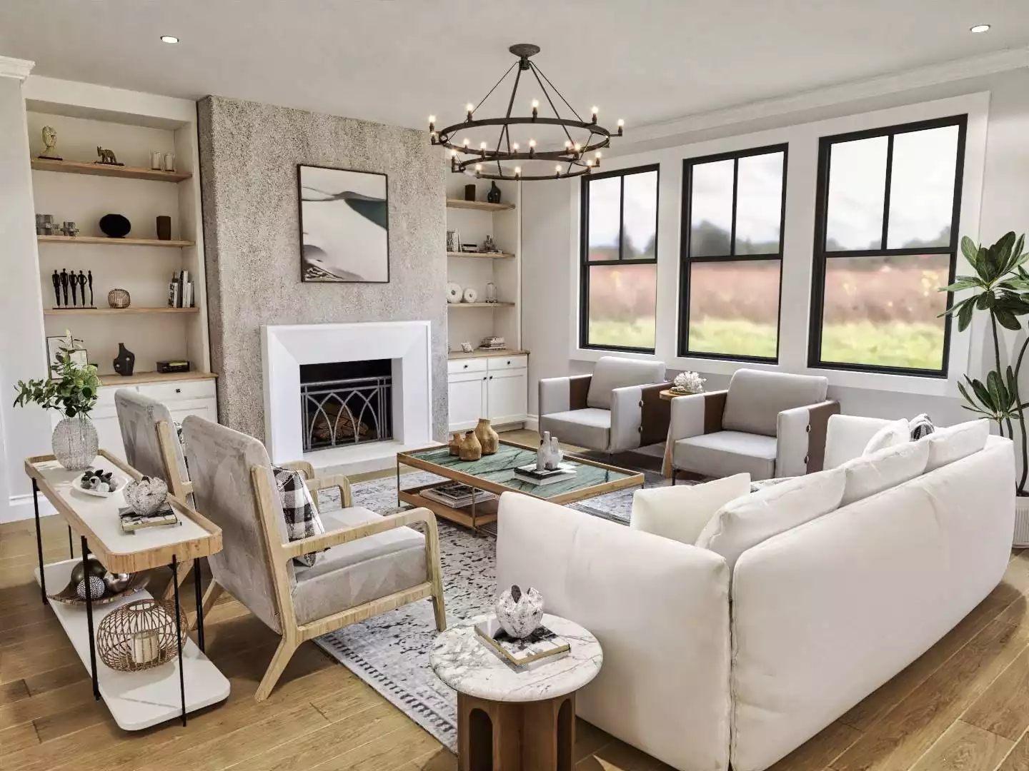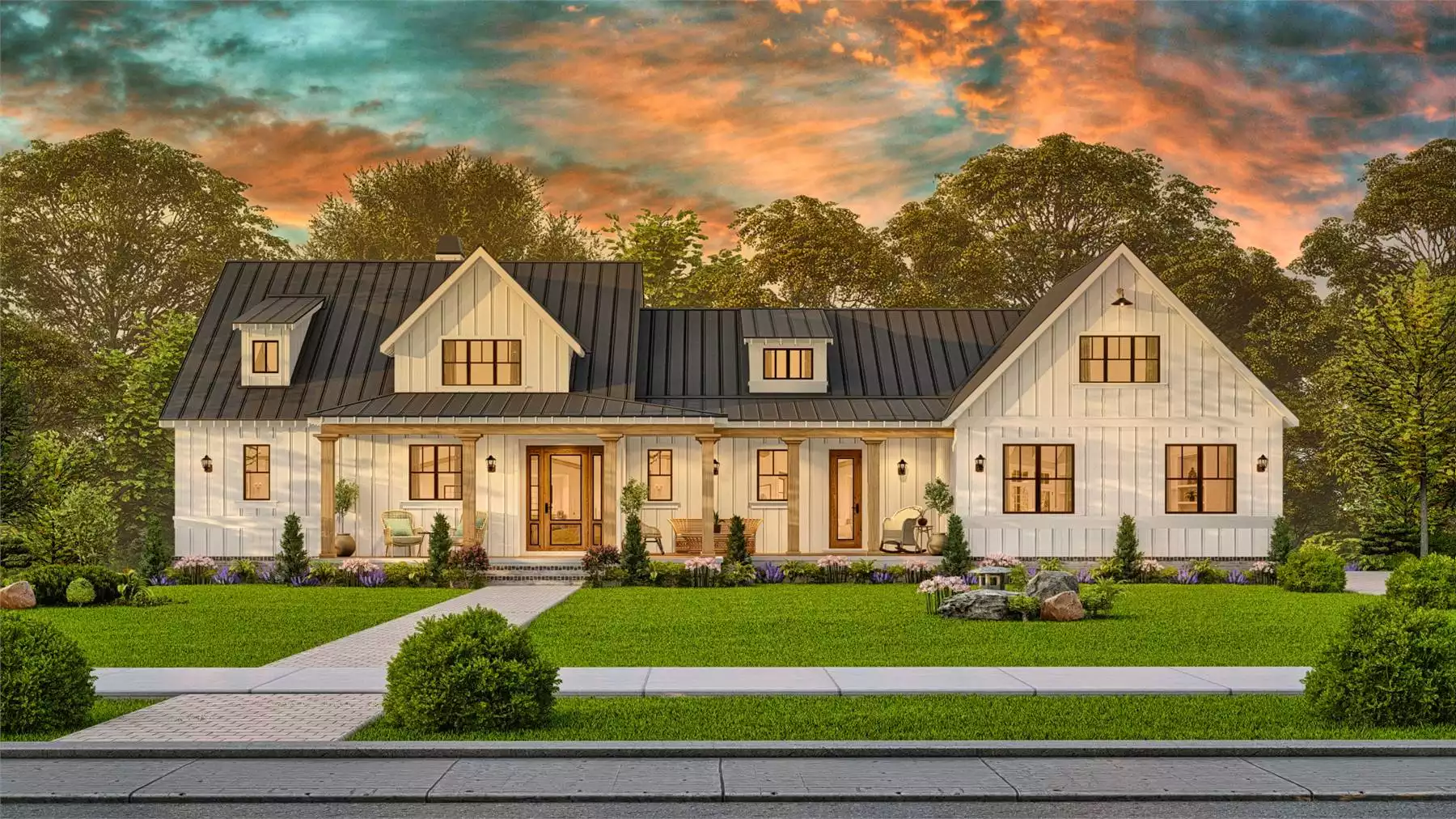 The Blairsville is a charming farmhouse design that blends timeless appeal with modern comforts. Its wrap-around front porch offers a warm welcome, while a two-story garage adds convenience with direct access to a mudroom—perfect for unloading groceries with ease. Inside, the open-concept main floor seamlessly connects the kitchen, dining, and living areas, and a spacious rear covered porch provides a cozy spot for outdoor dining in any weather. A quiet study just off the foyer offers the ideal space for working from home or relaxing in peace. The luxurious primary suite boasts a corner fireplace, a spa-like bathroom with an oversized shower, and an expansive walk-in closet. Upstairs, two secondary bedrooms each feature walk-in closets and share a thoughtfully designed Jack-and-Jill bathroom with dual sinks, blending practicality with farmhouse charm.