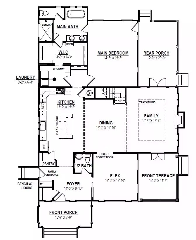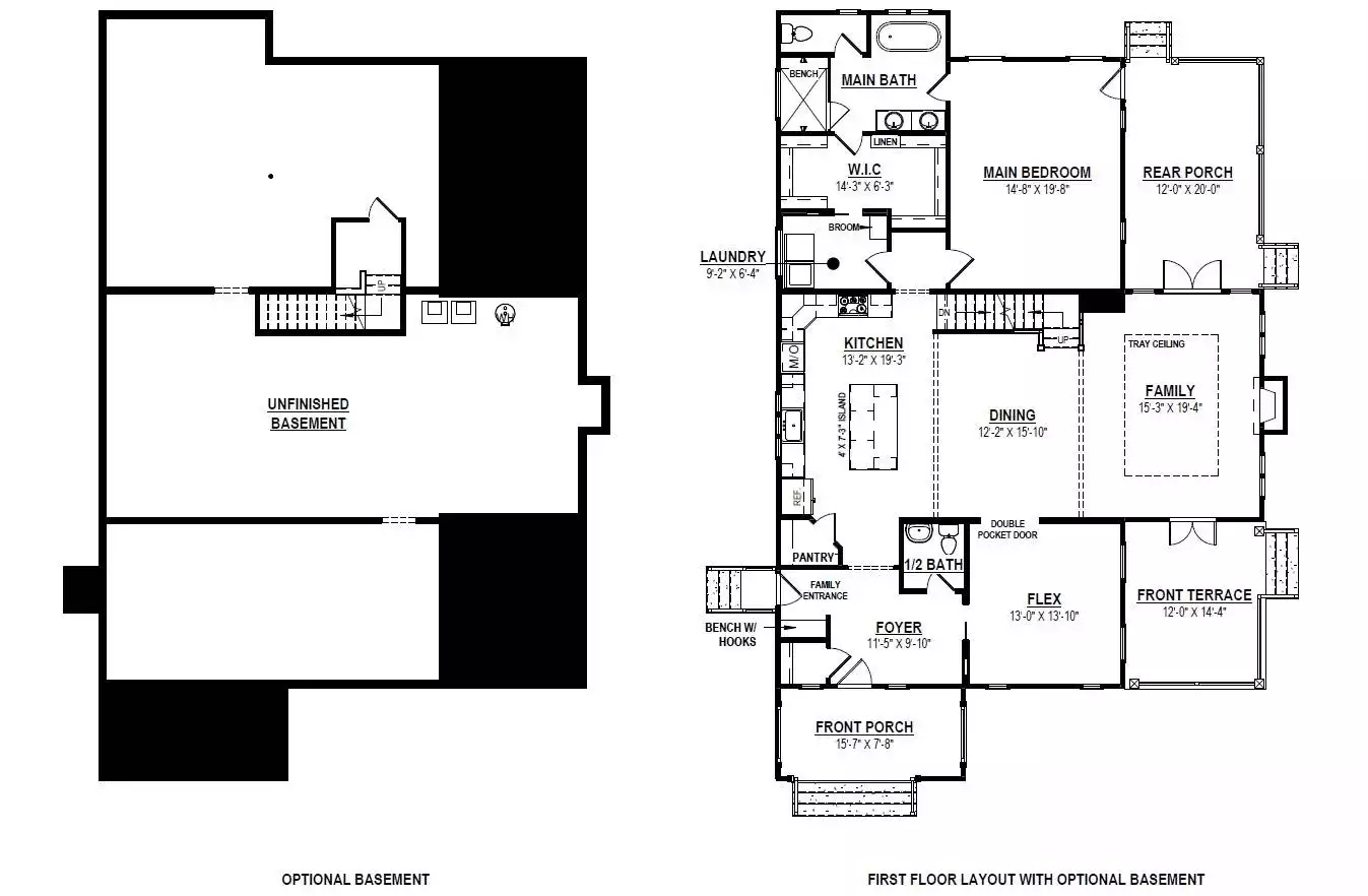 With unique traditional curb appeal, House Plan 11748 is a farmhouse that stands out from the rest! It offers 3,024 square feet with four bedrooms and two-and-a-half bathrooms across two stories. Step inside and the foyer connects to the powder room and flex room before leading back to the open-concept great room that lines the island kitchen, dining area, and living space up from left to right. The dining area also connects to the flex room through a pocket door. The living area has a tray ceiling overhead and a fireplace at the end, plus it connects through French doors to corner porches in front and back! The primary suite is privately located at the rear of the house and boasts a luxe five-piece bath with a walk-in closet you can open to the laundry room. Head up the staircase at the center of the house to find the loft, three bedrooms with walk-in closets, and a divided hall bath to share. If you love this home but need a garage, just look to the options below to add one!