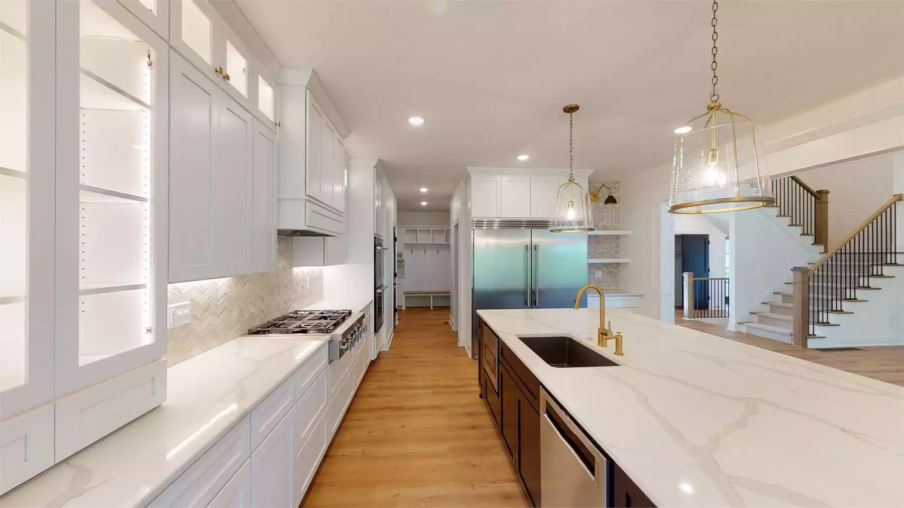 Looking for a chic farmhouse with room to expand? Give House Plan 7175 your consideration! This two-story layout offers 3,112 square feet, but there's even more potential in the basement, if you choose to finish it. When you enter through the front door, there's a den just off the foyer, and the mudroom hallway coming in from the three-car garage connects to provide handy storage and powder room access. The master suite is located on the opposite side, with a cathedral ceiling in the bedroom, a five-piece ensuite, and a walk-in closet with direct access to the laundry room. The open-concept living areas spread out in back, with two-story volume in the great room, and island in the kitchen, and a vaulted ceiling over the dining area. Head upstairs to find three more bedrooms and a divided four-piece hall bath to share. The basement has a rec room with a full bar, a playroom, and another bedroom and bath for those who need more!