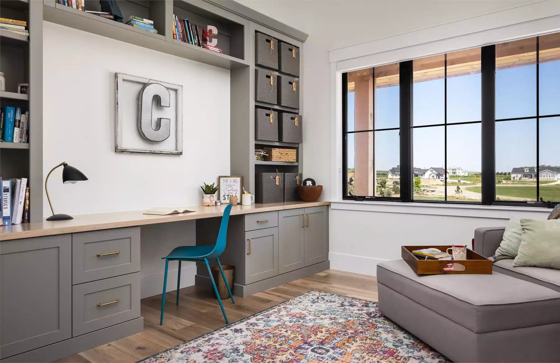 On the main level, the right wing features the luxurious primary suite with a large ensuite, walk-in closet, and private office space. Upstairs, bedrooms two and three share a Jack and Jill bathroom, while a third full bath serves the loft area and fourth bedroom. The lower level provides 1,872 square feet of unfinished space to personalize as a rec room, gym, guest suite, or more. With a 4-car garage, this home balances function and flair in a modern farmhouse design built for unforgettable living.