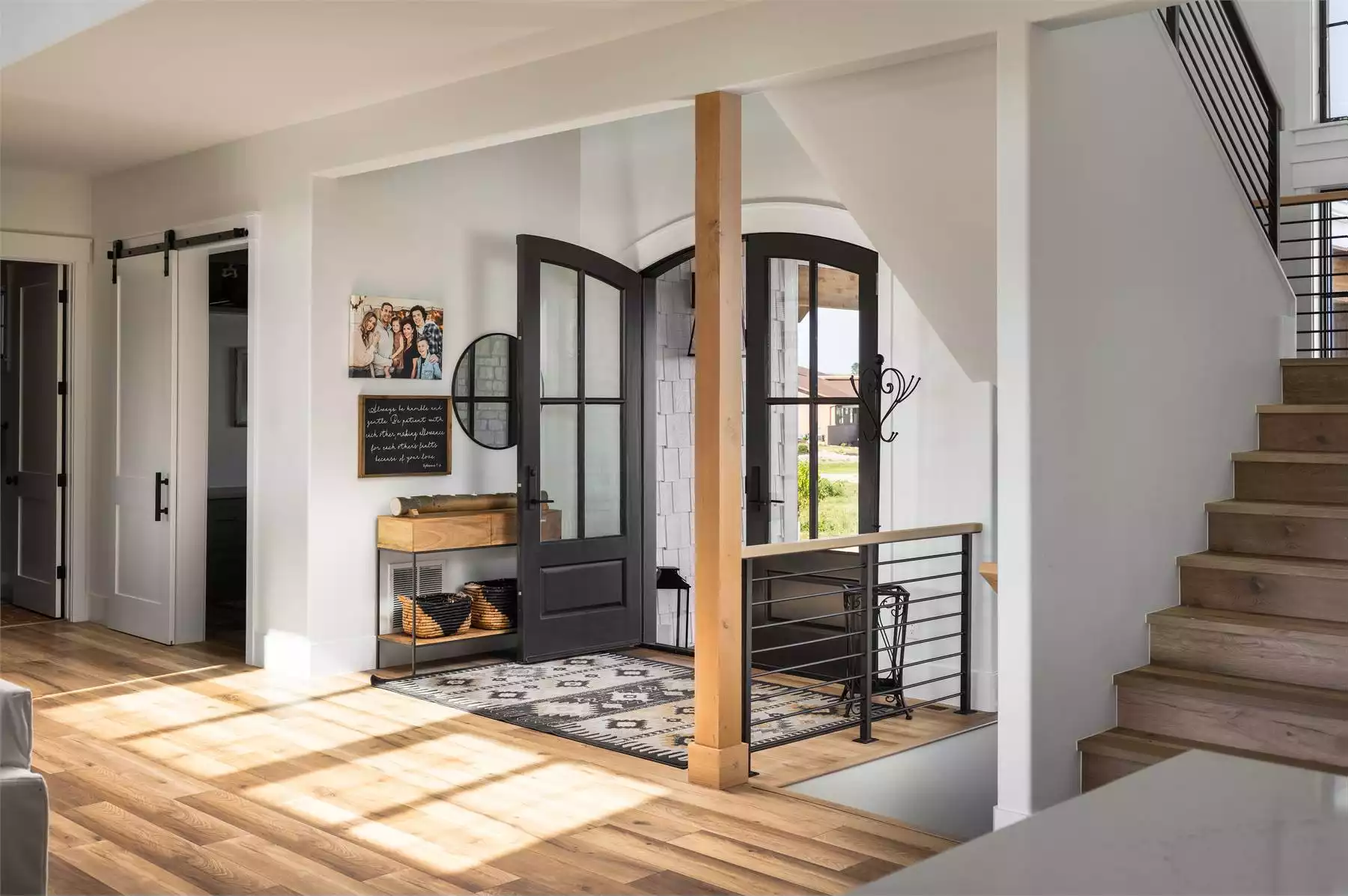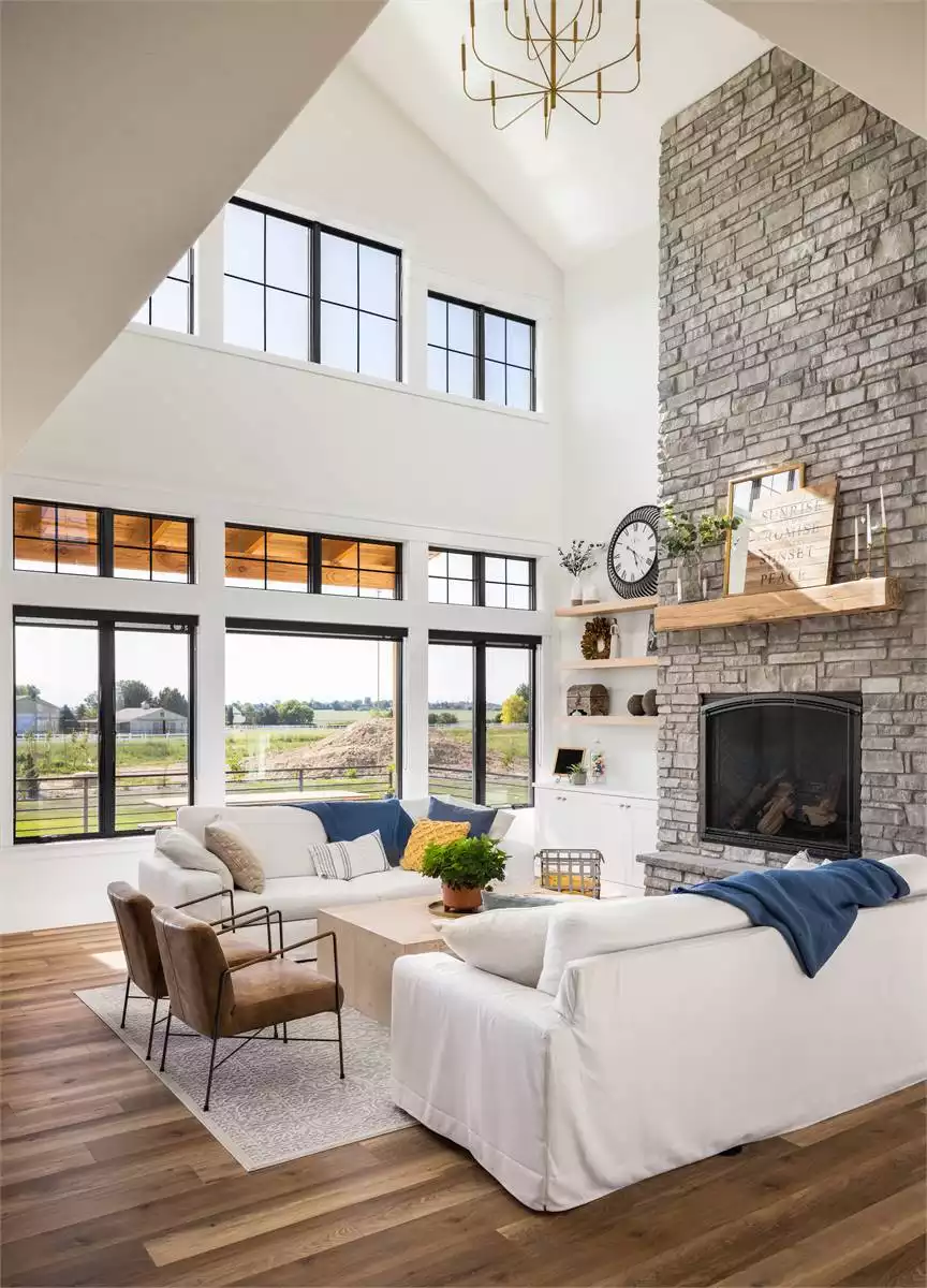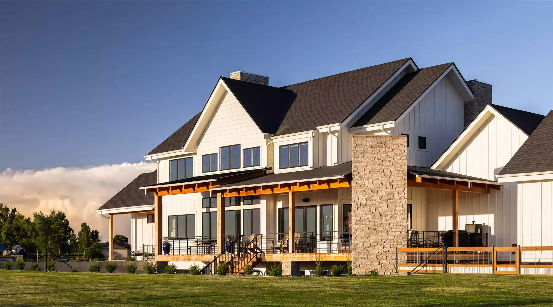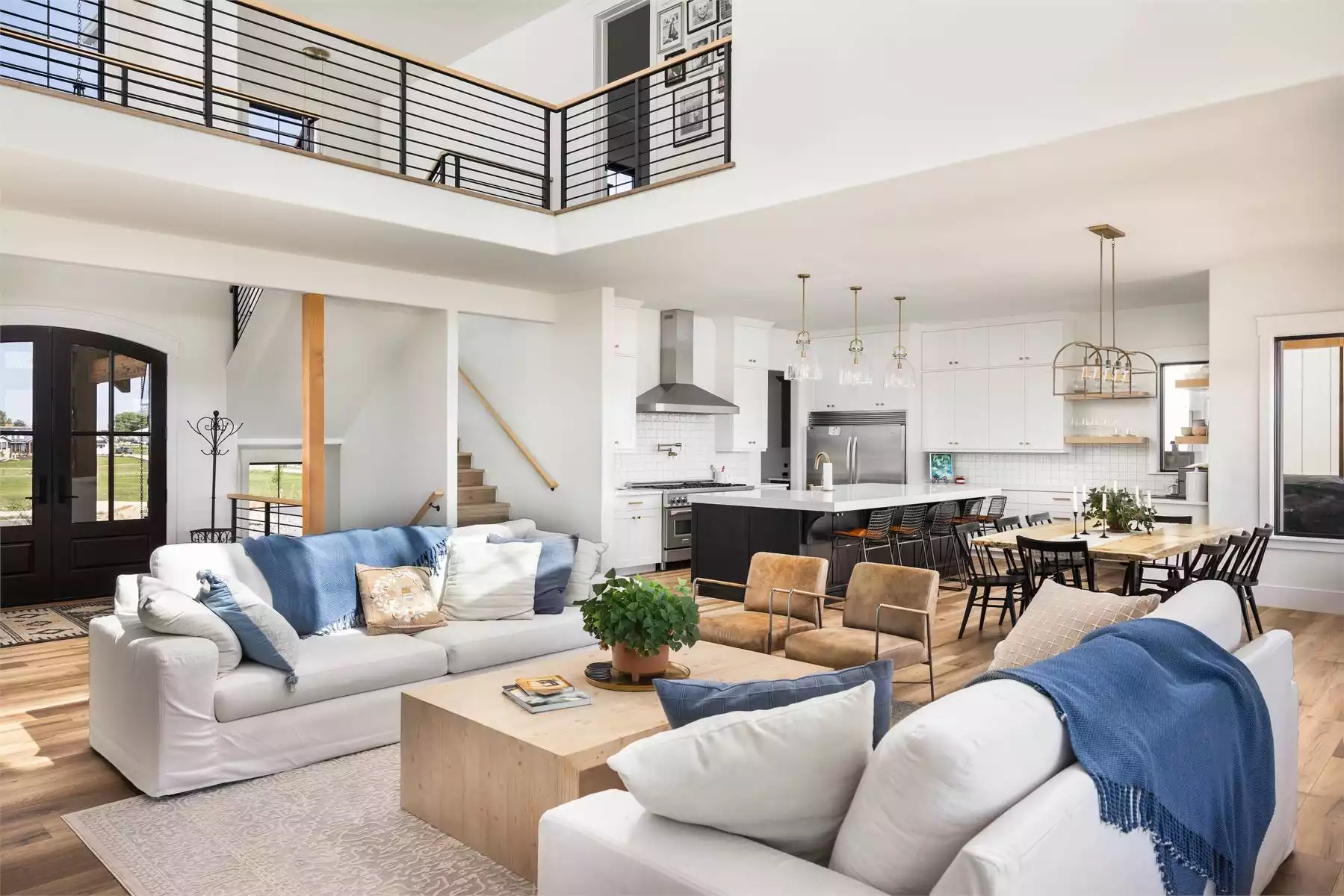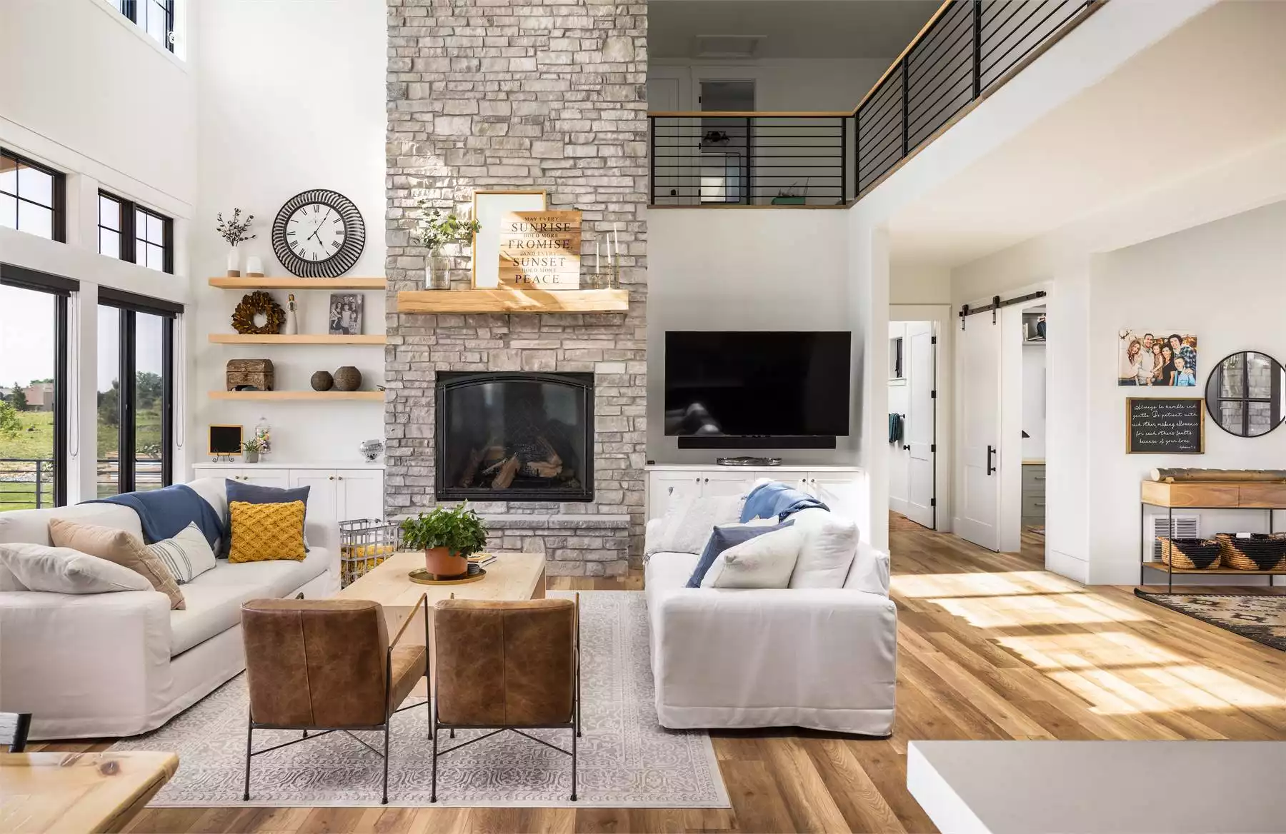 Elderbrook is a stunning 3,638 square foot modern farmhouse designed for families who crave space, comfort, and style. With 4 bedrooms and 4 bathrooms across three levels, this two-story home offers thoughtful living zones and generous room to grow. A large covered front porch welcomes you into a vaulted great room that opens to an L-shaped kitchen with a spacious island and adjoining dining area—perfect for hosting or enjoying family meals with a view. Step outside to the expansive covered deck with a cozy fireplace, ideal for relaxing evenings in any season.