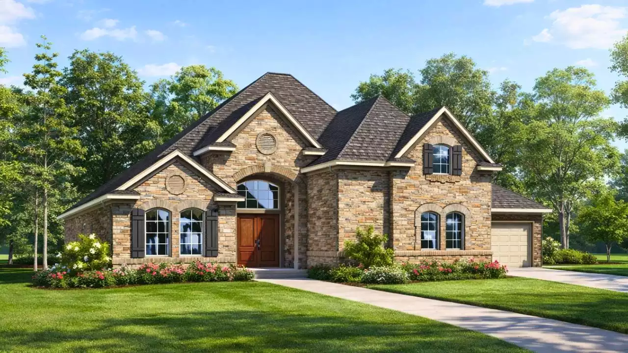This luxurious European-style home offers a foyer that opens into the elegant dining room through decorative pillars. The dining room flows seamlessly into the butlery and kitchen, where a center island and breakfast bar provide ample counter space. The kitchen is open to the breakfast area and family room, creating an ideal layout for everyday living and entertaining. The cozy family room features a warm fireplace and a large bank of windows overlooking the patio. The primary suite includes a comfortable sitting area and a luxurious ensuite with dual vanities, a separate shower and tub, and a spacious wardrobe. At the rear of the home, two generously sized family bedrooms share a Jack and Jill bath and offer access to one of the garages. Upstairs, a bonus room completes this thoughtfully designed home plan.