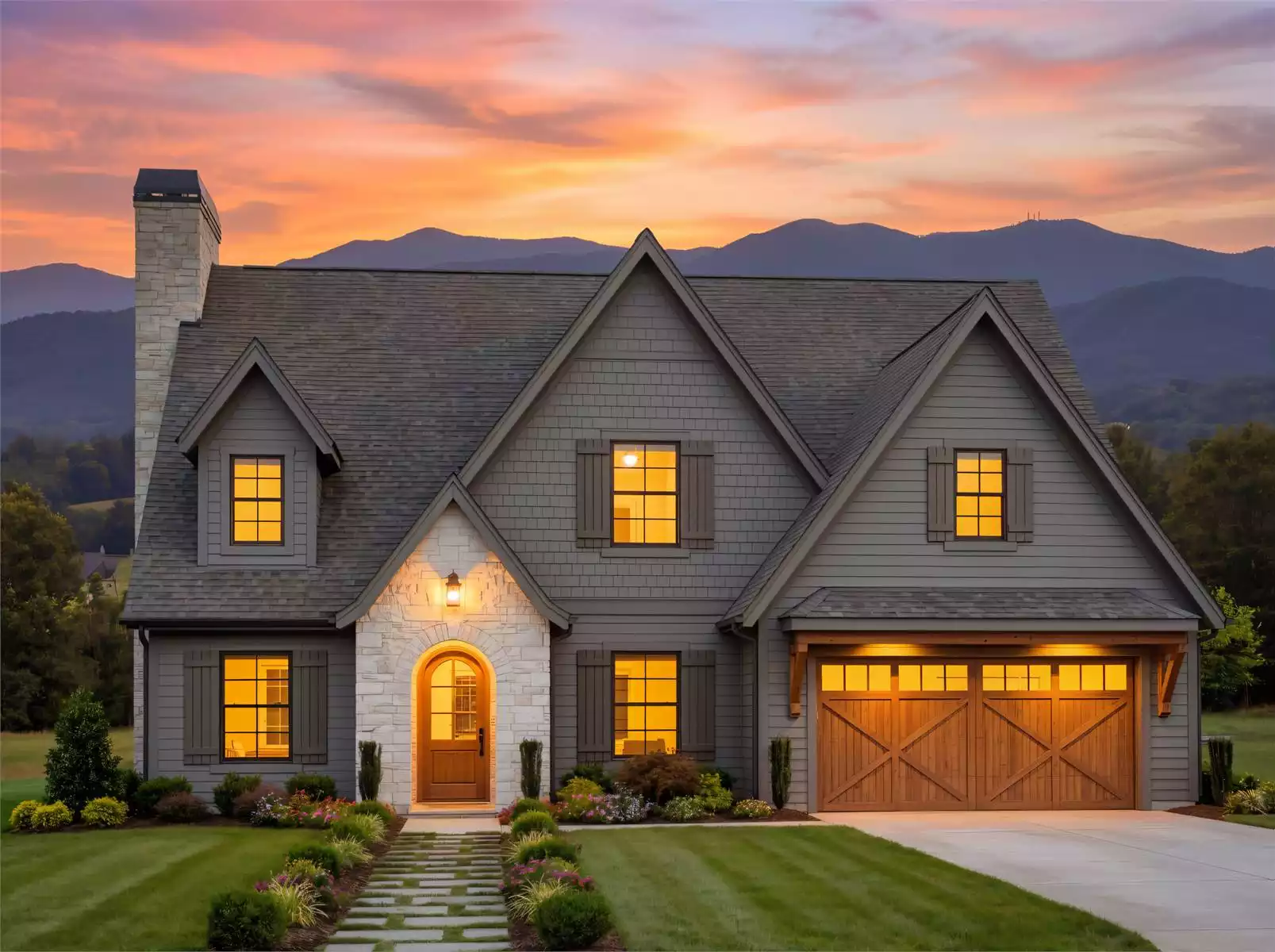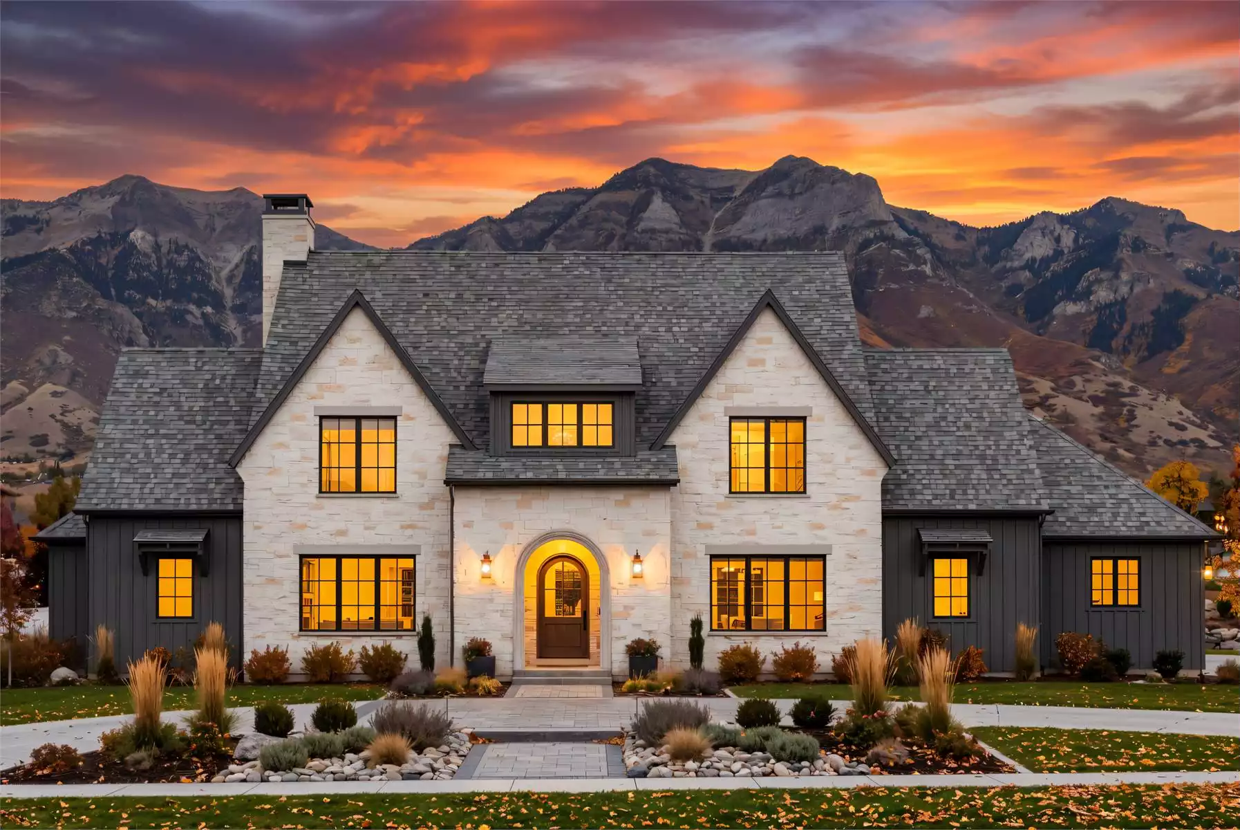 Torrence Acres is a showstopping 5,001 sq. ft. luxury European farmhouse designed for families who want elegance, space, and timeless architectural charm. The exterior features sweeping rooflines, stone accents, and a wraparound porch that enhances curb appeal from every angle. Inside, a dramatic grand stair hall leads to a vaulted great room, gourmet kitchen, and beautifully detailed dining space with barrel ceilings. The main-level primary suite includes a vaulted ceiling, spa-style bath, and an impressive walk-in closet. A guest suite, office, and a well-organized mudroom make daily living effortless. Upstairs, a spacious game/media room, loft, and three bedrooms provide room for recreation and privacy. With a 4-car garage, covered rear porch, and outdoor kitchen, Torrence Acres blends luxury comfort with exceptional livability.