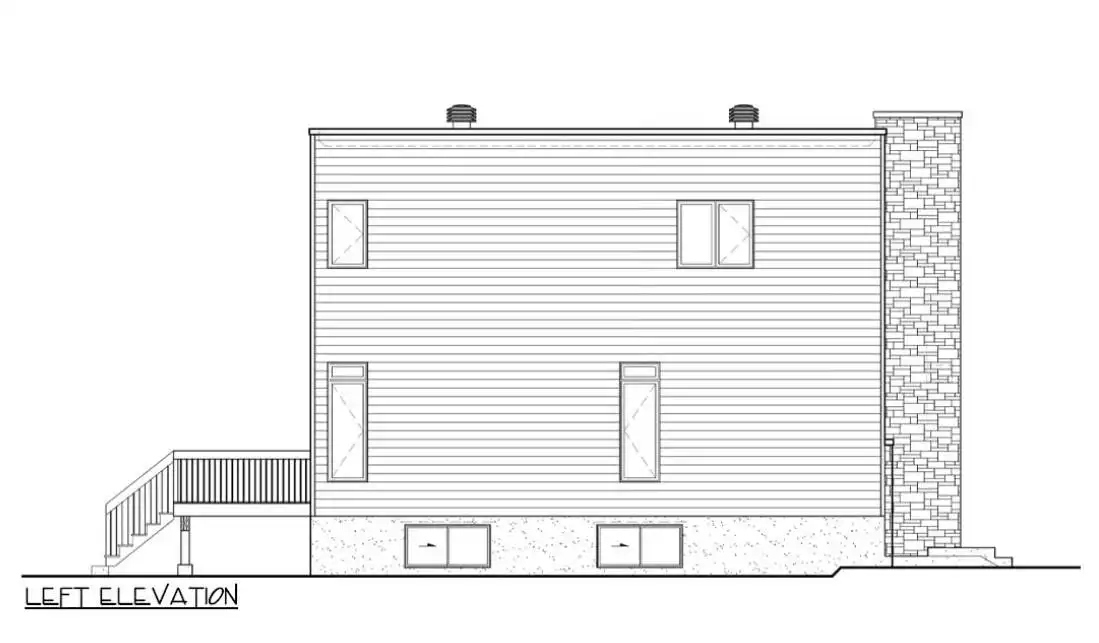If you have a narrow lot and want sharp modern style with large windows and flat rooflines, see what House Plan 8807 has to offer! This 1,958-square-foot design has a simple, affordable shape with a one-car garage and defined living and sleeping quarters. When you step inside, the foyer connects to you the main level as well as the stairs going up. The main level features a powder room and a wide-open great room with an island kitchen in the center of the floor plan overlooking the living and dining spaces. No matter where you stand, you can see great views of the back yard through the wall of windows! You'll find another wall of windows in front, alongside the staircase, to really brighten this side of the house as well. On the level where the main stairs end, you'll find a sitting area and a loft/family room with front views that connects to the laundry and office. Three bedrooms are up another short staircase. The largest bedroom has a walk-in closet while the other two have reach-in closets, and they all share a spacious four-piece hall bath. Consolidating amenities like this is a great way to keep costs down!