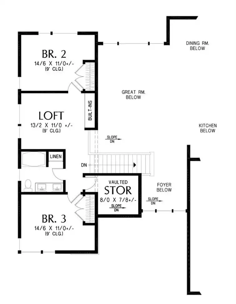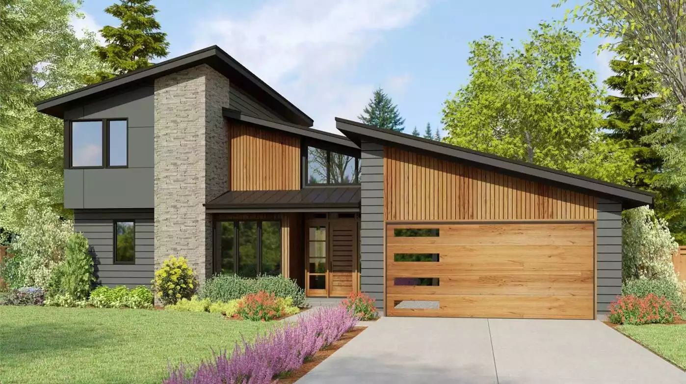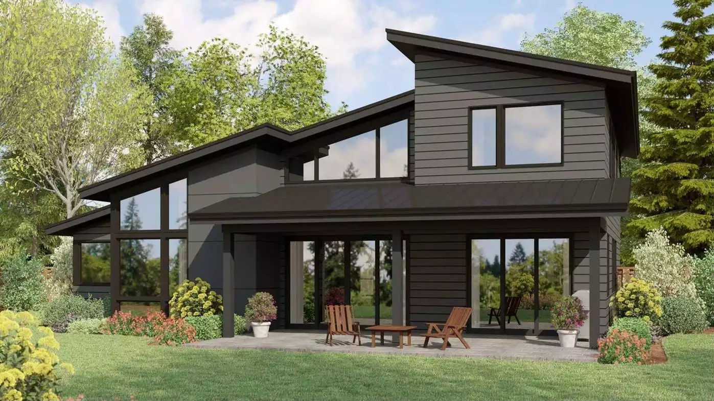 If you're looking for a chic home that checks the boxes for the average family, give House Plan 4830 a try! This 2,716-square-foot modern design offers three bedrooms and two-and-a-half bathrooms in a split layout. The main level places an office off the vaulted foyer, and then a spacious vaulted great room spreads out in back. And that's not just for the living area--the vaulted ceiling spreads across the island kitchen, dining space, and living area! The primary suite is also located on the main floor, placed to the side with the bedroom enjoying rear views, connection to a five-piece bath, and a walk-in closet in front to maintain privacy. On the opposite side of the house, a mudroom hallway that connects the kitchen to the two-car garage also includes a walk-in pantry, powder room, and laundry room. Head up the staircase in the great room to find the secondary bedrooms separated by a loft and a four-piece hall bath. There's also a storage room up here--perfect for toys, games, or seasonal decor!