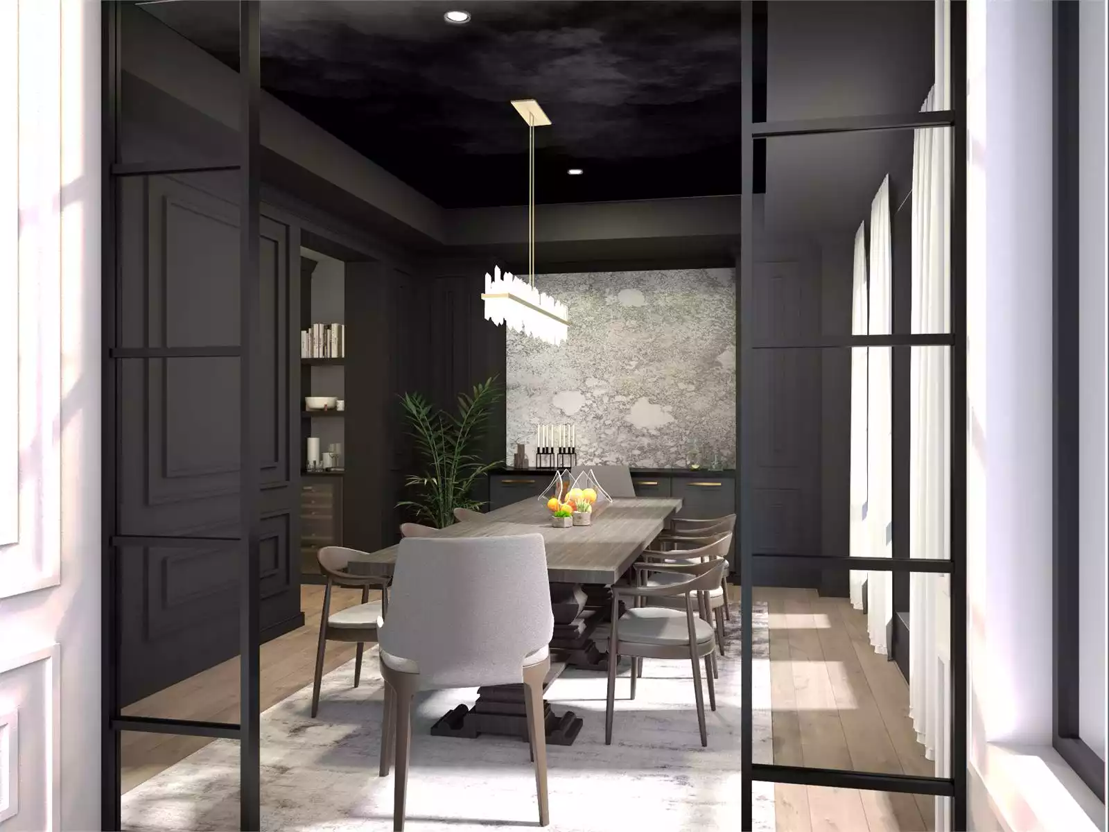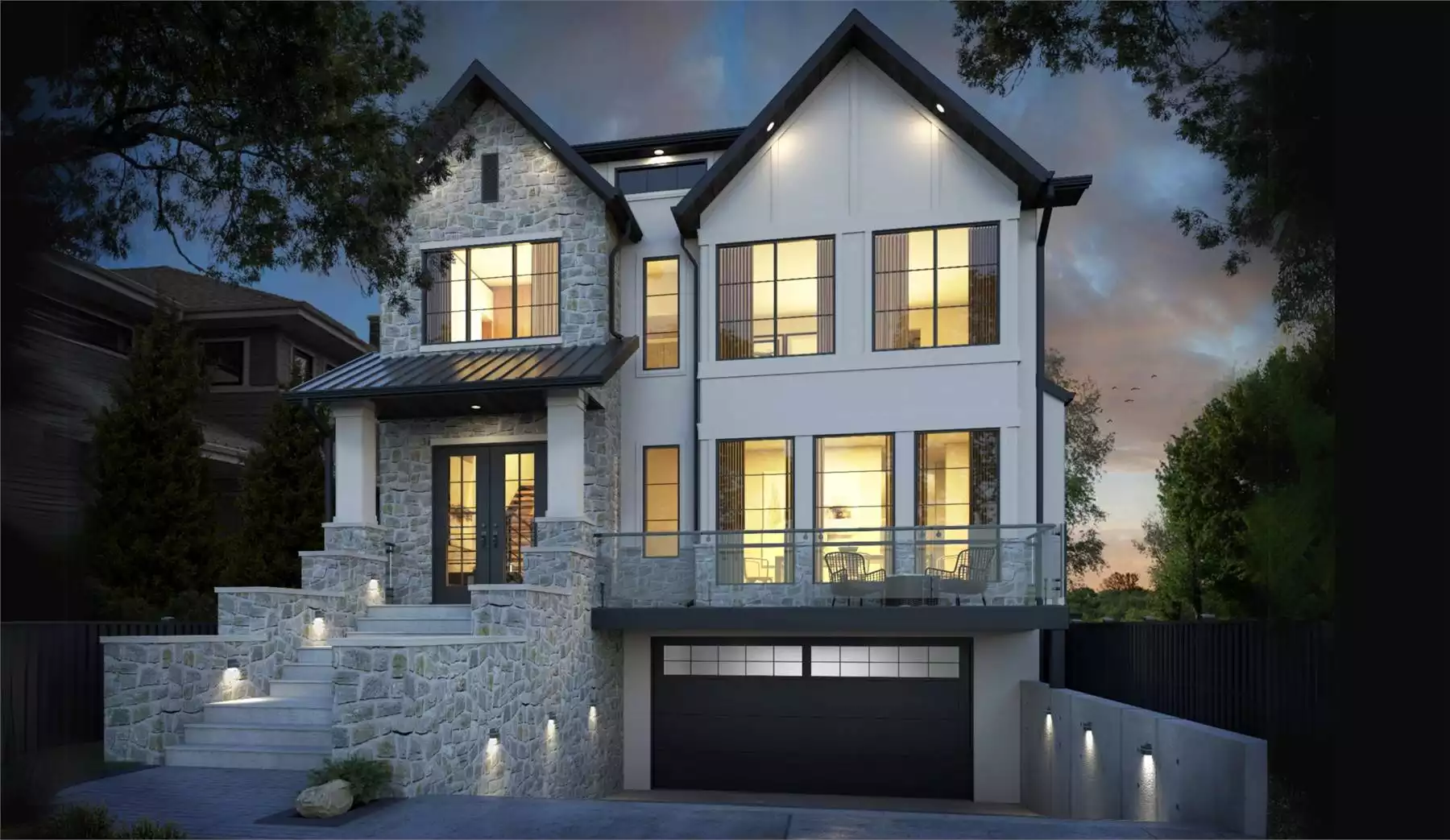 Ancaster is a striking contemporary home with a bold stone-accented exterior and sleek modern lines. Offering 2,841 square feet, this two-story layout includes 4 bedrooms, 3.5 baths, and a 2-car garage. The main floor boasts an expansive open layout featuring built-in shelving, a cozy fireplace, and a stylish L-shaped kitchen with a large island, nook, and a walk-through butler’s pantry leading to a formal dining room—perfect for entertaining. Upstairs, you'll find three bedrooms, a home office, and laundry, while the basement adds flexibility with a fourth bedroom, rec area, and extra storage space.