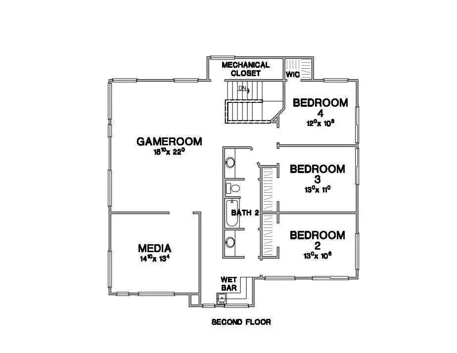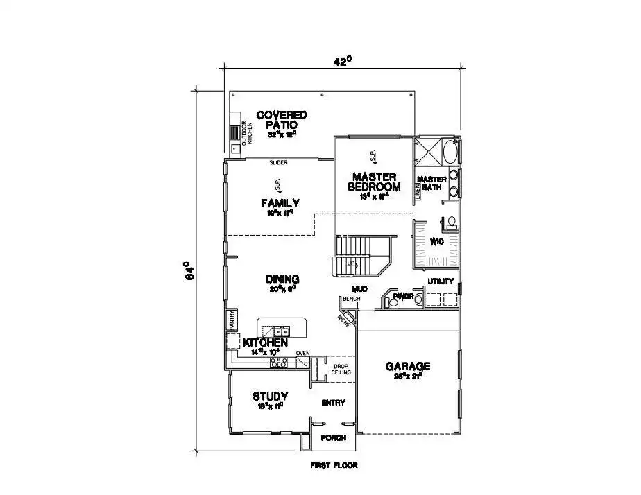 When you need to pack a lot of space and bold modern style into a compact shape, House Plan 2342 should come to mind! This 3,228-square foot home is perfect for a neighborhood with is simple footprint with straight sides and a front-entry garage. Inside, you'll find four bedrooms and two-and-a-half baths split across two stories. Enter through the front and the sunny study is located beside the foyer before it leads to the L-shaped island kitchen that overlooks the dining and living areas in an open-concept layout. Make sure not to miss the sloped ceiling in the living space, or the patio doors that open out to the covered patio with an outdoor kitchen! The primary suite is located on the main floor and has a sloped ceiling in the bedroom, a five-piece bath, and a walk-in closet. The nearby laundry room and powder room round out this level. Head up the centrally located staircase to find three bedrooms that share a divided hall bath, the rec room, the media room, and the wet bar. As you can see, this design is perfect for families who love to host!
