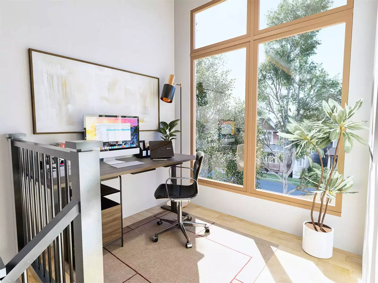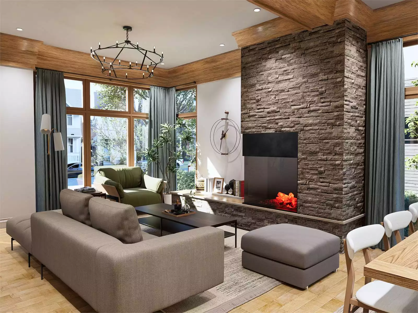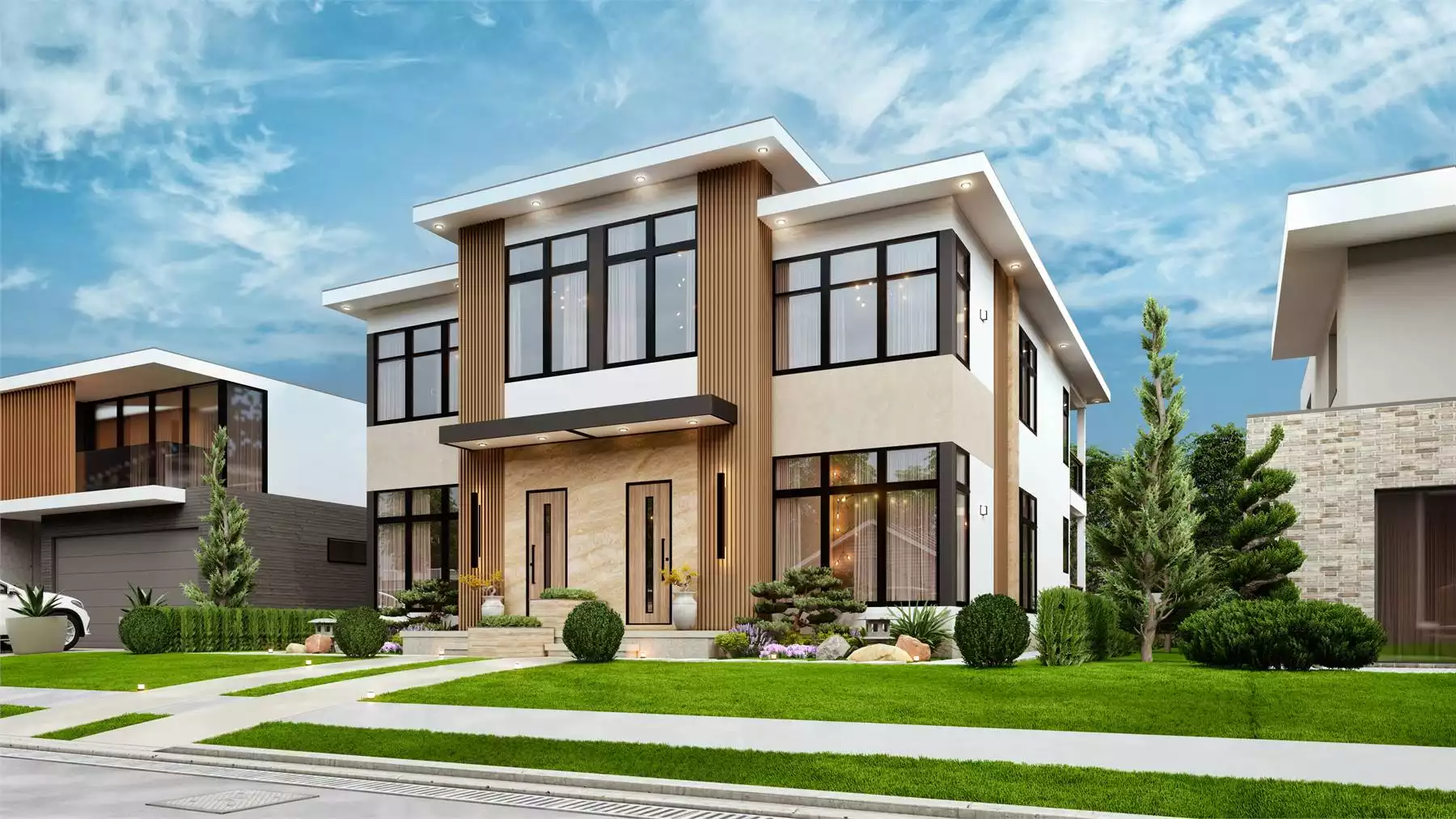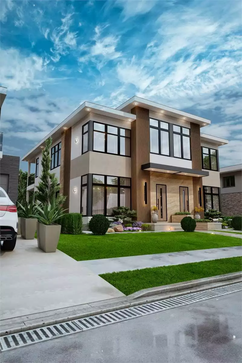 Olivia Heights is a contemporary two-story duplex townhouse designed for practical living with a modern edge. Each unit provides 1,701 square feet of heated living space, including an open-concept main floor with 10-foot ceilings and large windows that invite natural light throughout the day. The kitchen sits at the heart of the home with a spacious island and easy flow to both dining and living spaces, creating an inviting setting for daily routines or entertaining guests. A covered porch expands the living area outdoors and enhances everyday comfort. Upstairs, 9-foot ceilings continue the bright, airy atmosphere across three well-sized bedrooms. The primary suite includes a walk-in closet and private balcony, offering a quiet place to start or end the day. A shared Jack and Jill bathroom connects the secondary bedrooms, and the dedicated laundry room adds convenience. Each unit is carefully arranged to maximize privacy with no shared interior walls. Exterior finishes feature vertical siding, flat rooflines, and durable PVC/TPO roofing supported by strong 2x6 framing. With a total building width of 42 feet 4 inches and a depth of 57 feet, this design is ideal for narrow lots, investment properties, or owner-occupied setups.