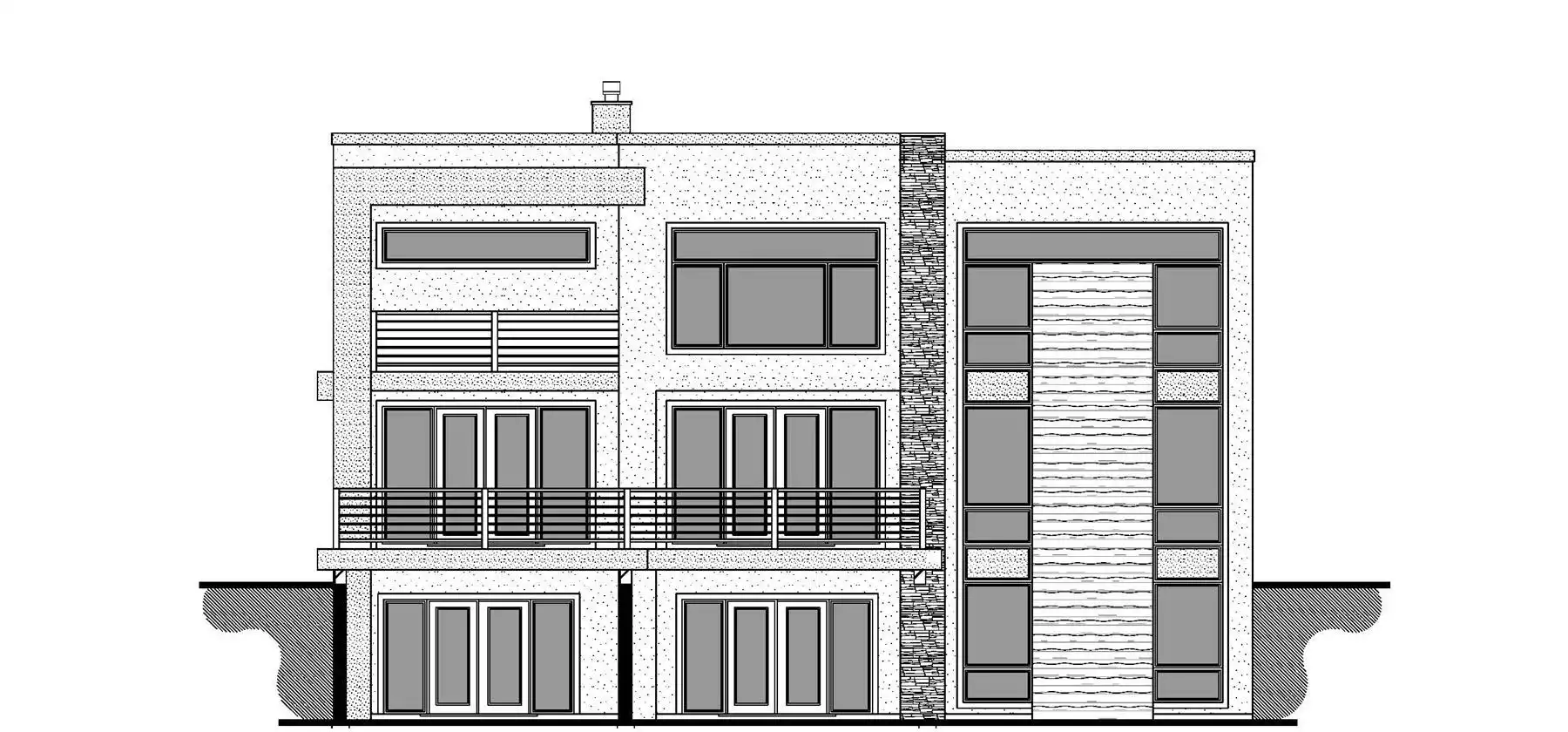 Looking for a lovely modern home for a downslope? If you need a spacious design, House Plan 10552 could be the perfect fit! This dramatic home has flat rooflines, tons of windows, and wood and stucco siding for a Southwestern twist. Inside, you'll find 3,597 square feet with three bedrooms and three-and-a-half baths across two stories. This design is also made for a walkout basement foundation--if you choose to finish it, it offers 1,371 more square feet with a wet bar, a wine room, rec space, and another bedroom and bath. Step inside the bright two-story foyer and you'll be invited back to the open-concept living areas, with an island kitchen open to the dining and great rooms. There's plenty of outdoor space in back to extend into the fresh air. Make sure to take notice of the thoughtful lineup of functional spaces between the three-car front-entry garage and the kitchen/dining. The mudroom connects to a laundry room, which connects to the walk-in pantry that opens to the kitchen on the other side. The mudroom also has a barn door to the foyer and a swinging door to the dining area, where there's a powder room, too. All the bedrooms are located upstairs with a larger laundry room for convenience. The primary suite has a huge bedroom, a luxurious five-piece bath, and a massive walk-in closet. There's also a two-sided fireplace between the bedroom and bathroom and a private back balcony! The other two bedrooms are private suites with their own three-piece baths, and they both have patio doors that open to the front balcony over the garage. What a lovely setup for a place with a view! A bonus room on the second floor rounds out this home and offers the flexibility to add an office, rec room, or whatever else you may need.