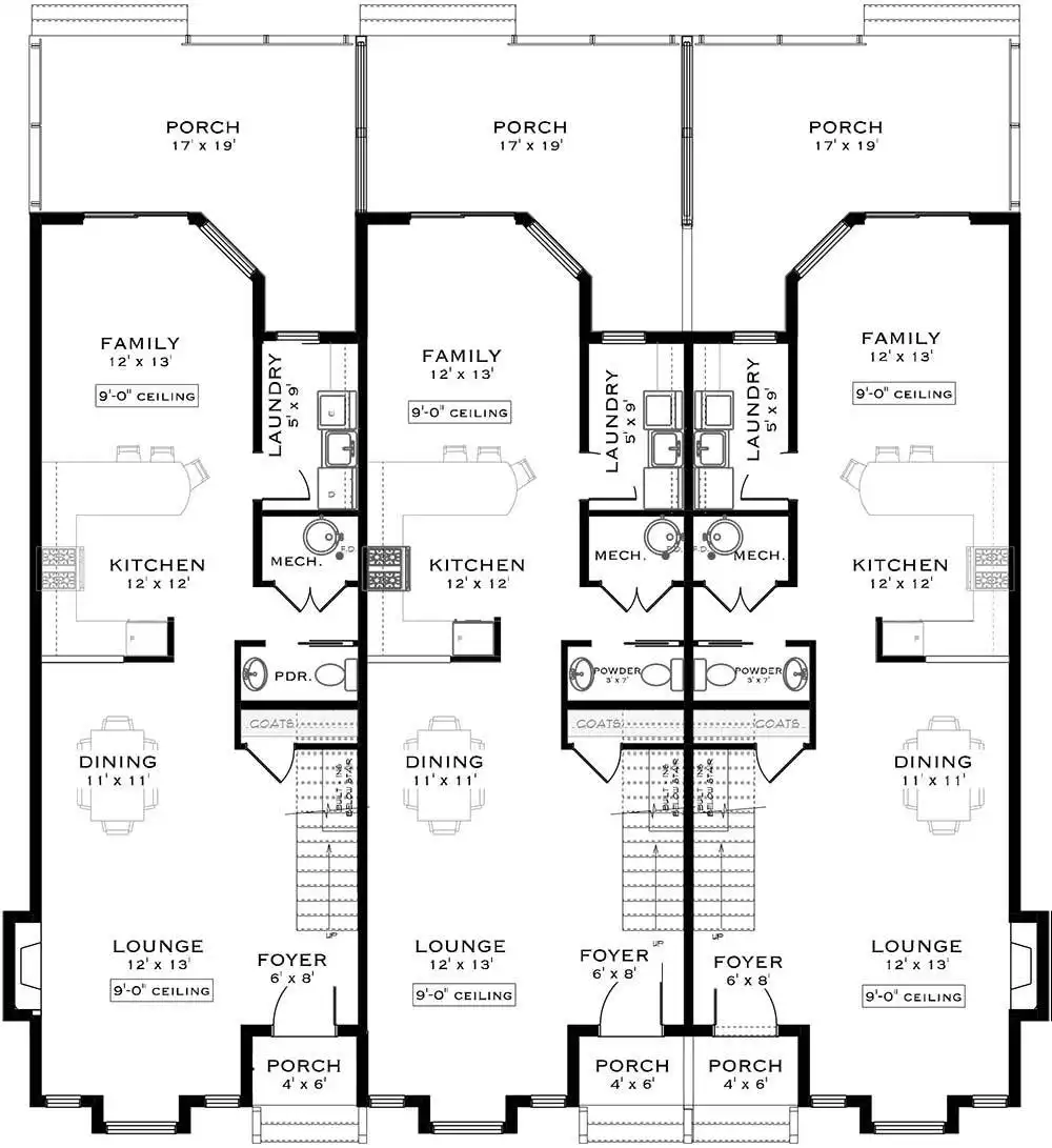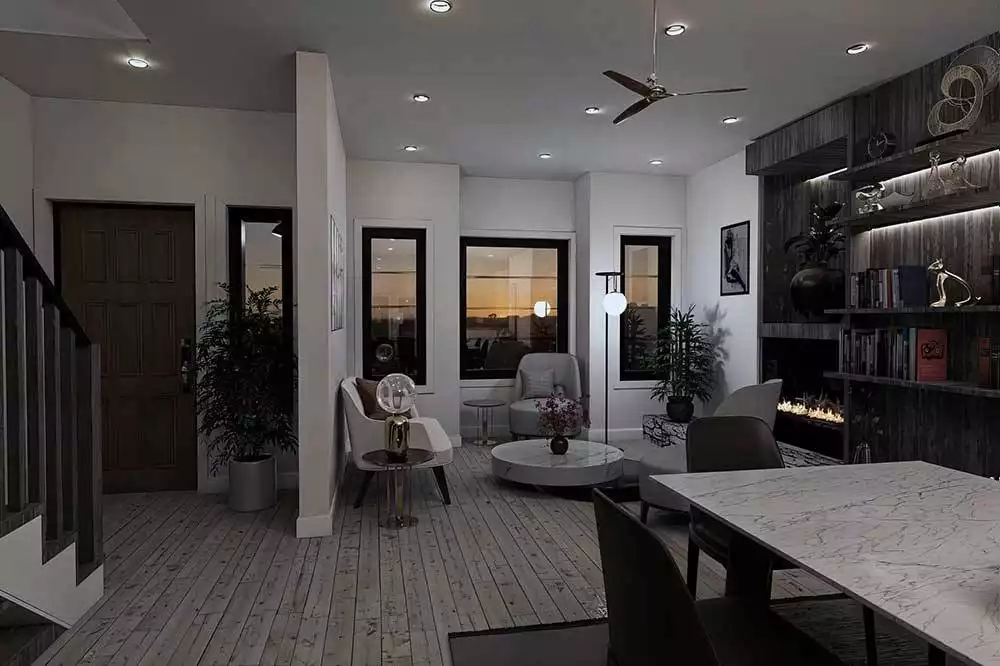 Stars Cove is a modern multi-family residence featuring three well-appointed units designed for comfort and style. Each unit boasts an open-concept main floor with a spacious lounge and dining area, a functional U-shaped kitchen, and a beautiful family room that extends to a covered outdoor living porch. Upstairs, the first and third units offer three bedrooms and two full baths, while the middle unit provides the same layout with one bedroom serving as a versatile den. With its seamless design, thoughtful spaces, and inviting outdoor areas, Stars Cove blends modern convenience with effortless livability.