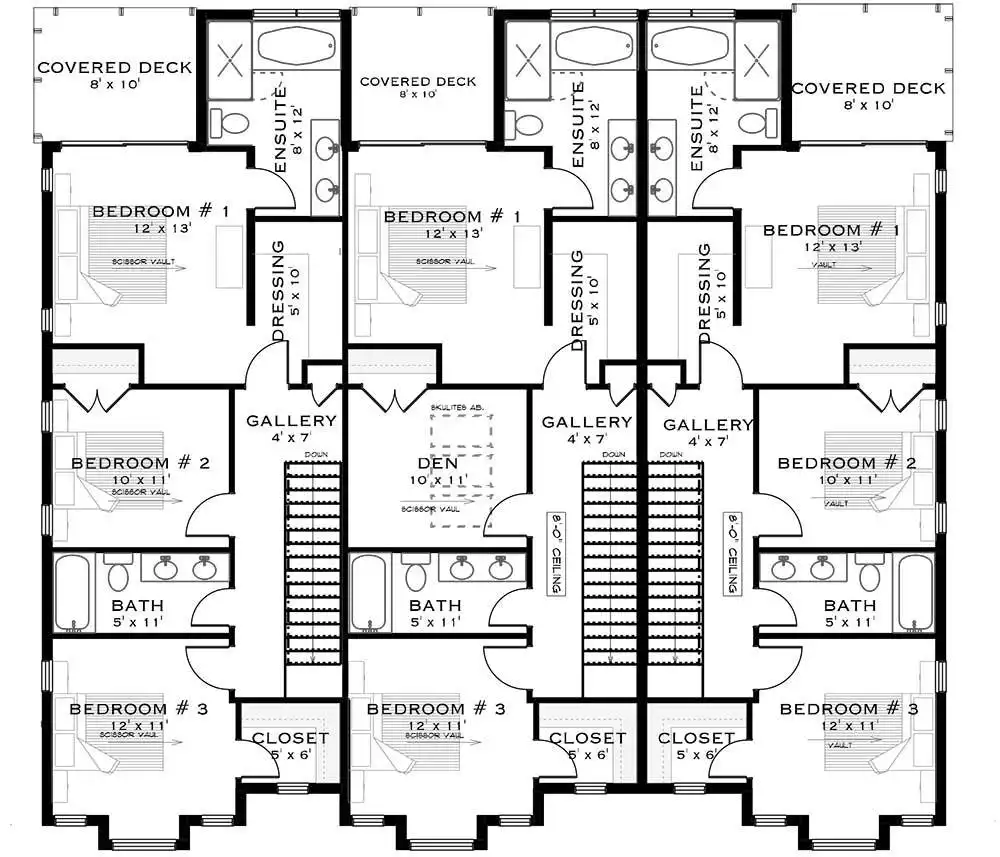 Stars Cove Modern Multi-Family 3 Unit House, Plan 10380