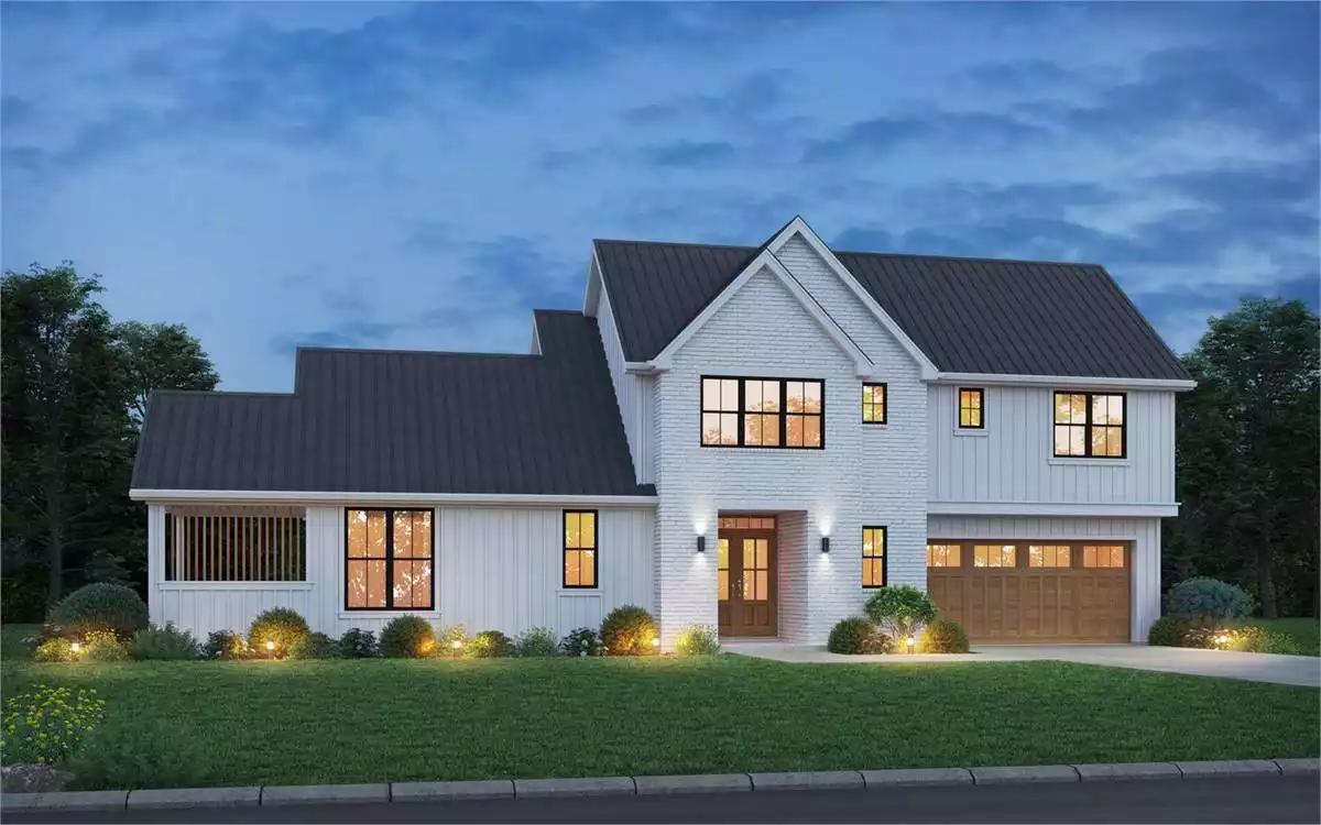 If you're looking for a home that merges contemporary and traditional design features, House Plan 10286 could be the one! Designed for a lot wider than it is deep, this unique modern farmhouse offers 2,149 square feet with three bedrooms and two-and-a-half bathrooms across two stories. The main level welcomes you in with a formal foyer, across which you'll find an office for the at-home worker. To the right, you'll pass the laundry/mudroom and powder room on your way to the two-car garage. To the left, you'll discover a gorgeous modern great room with a vaulted ceiling spanning the island kitchen and dining areas in front and the living area in back, complete with a fireplace. There's also vaulted porch on the side with a BBQ kitchen to extend into the fresh air! Head upstairs to find a small loft, two bedrooms that share a hall bath, and the beautiful primary suite with a vaulted bedroom and a five-piece bath. It's rare to find grouped bedrooms and clearly defined living and sleeping zones in a home of this style, so look no further if you're shopping for this niche!
