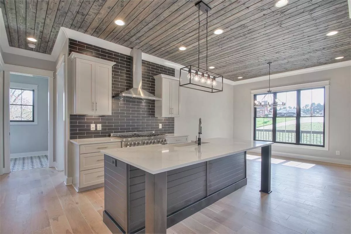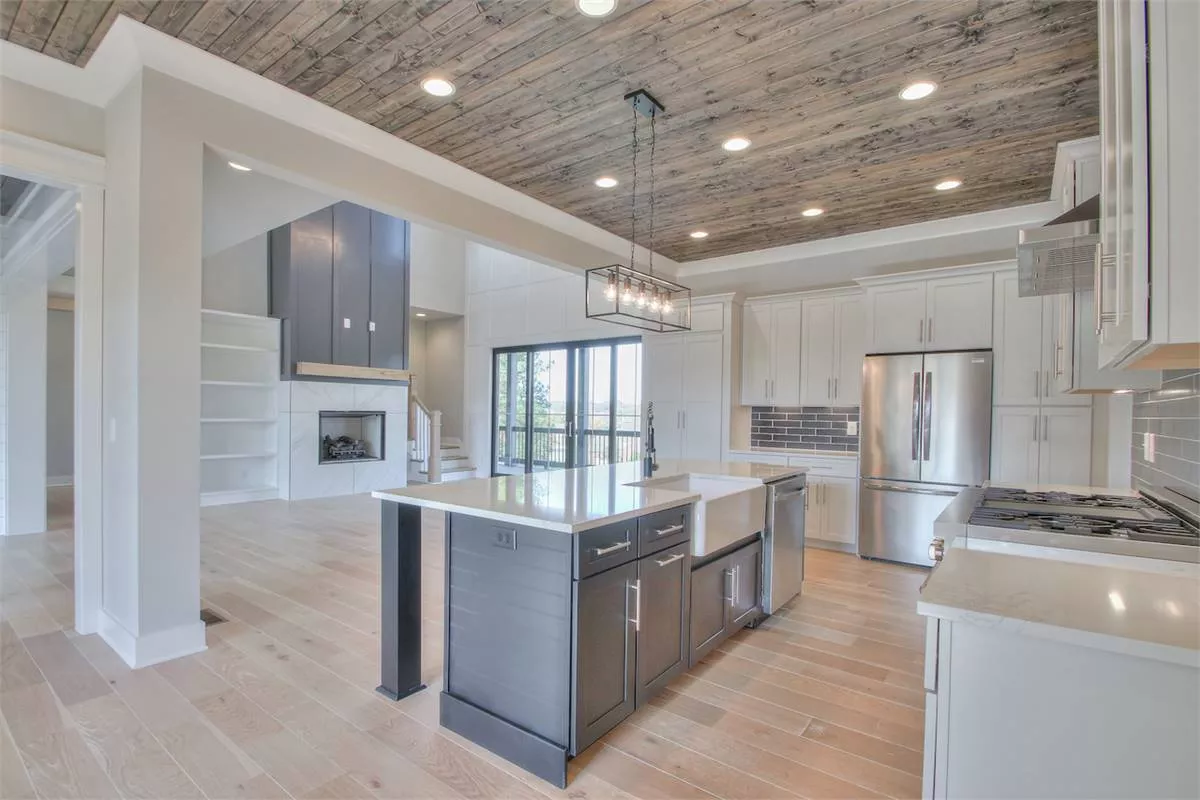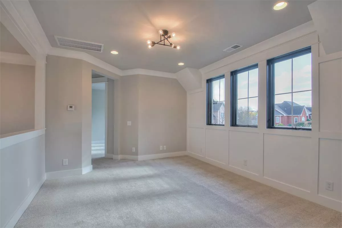 This luxury modern farmhouse was built and customized by Reid & Company Construction in TN. It features a beautiful exterior and a functional floor plan featuring 2,913 s.f. The great room has a two-story ceiling and beautiful windows that access the rear covered porch. The kitchen boasts a large prep island with seating, built-in wine fridge and hutch—perfect for entertaining! A hidden prep island provides additional workspace when needed. A pocket office built next to the kitchen provides a private place for working or doing homework. The master suite provides a private retreat, with his-and-hers closets that lead to an expansive spa-like bathroom. Upstairs, three bedrooms surround a loft; two share a Jack-and-Jill bath and one sits across from a full bathroom. The 3-car garage attaches to the rear of the home, and includes a pool bath and 640 s.f. bonus above the garage.
