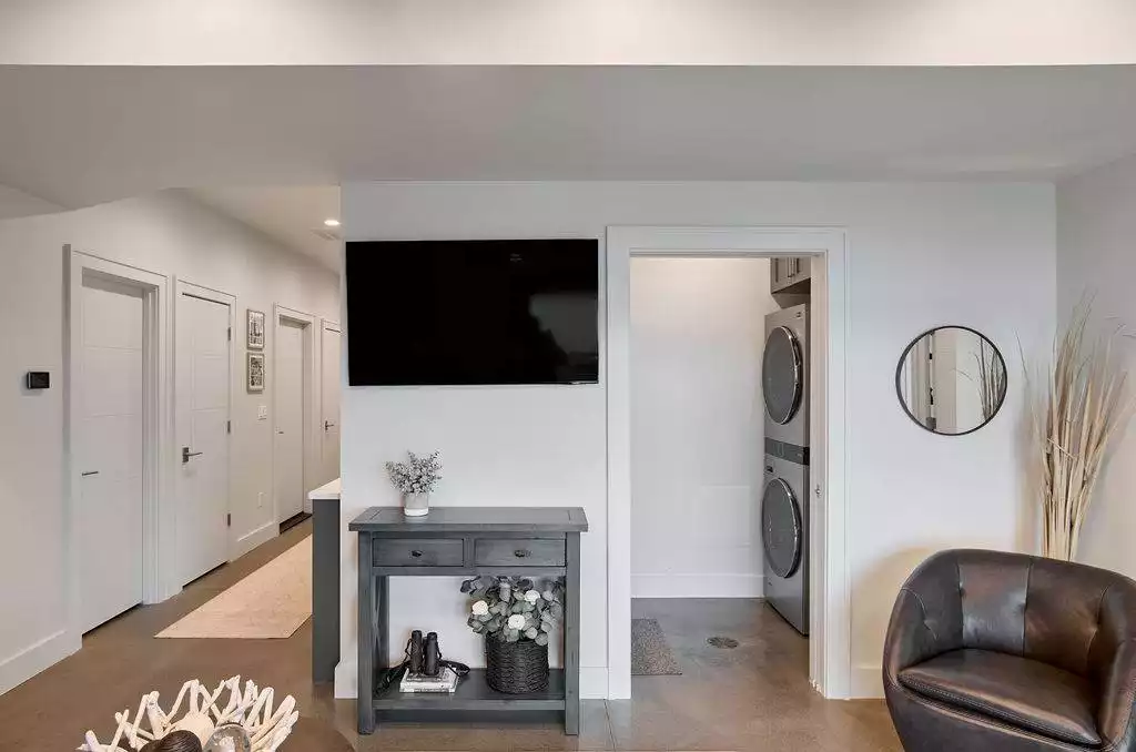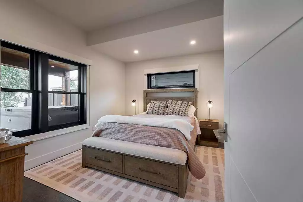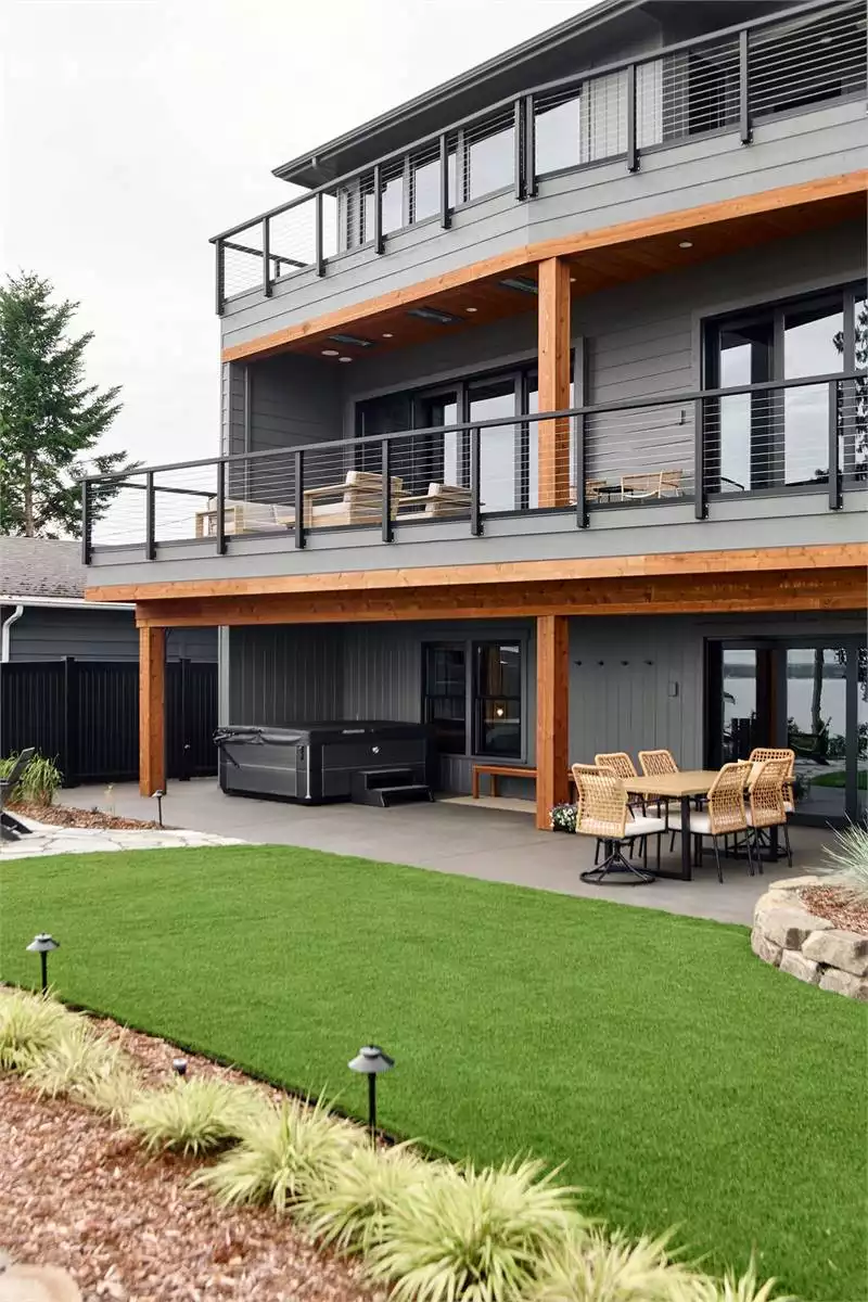 The upper level is designed as a private retreat, featuring a spacious primary bedroom with a walk-in closet, ensuite bathroom, and access to outdoor living space. The finished lower level expands the home’s flexibility with additional bedrooms, a family or media room, laundry, and storage. Large windows throughout the design bring in natural light and highlight the home’s contemporary character. Azaleia is an ideal choice for homeowners seeking a modern layout with flexible living spaces and standout outdoor areas.