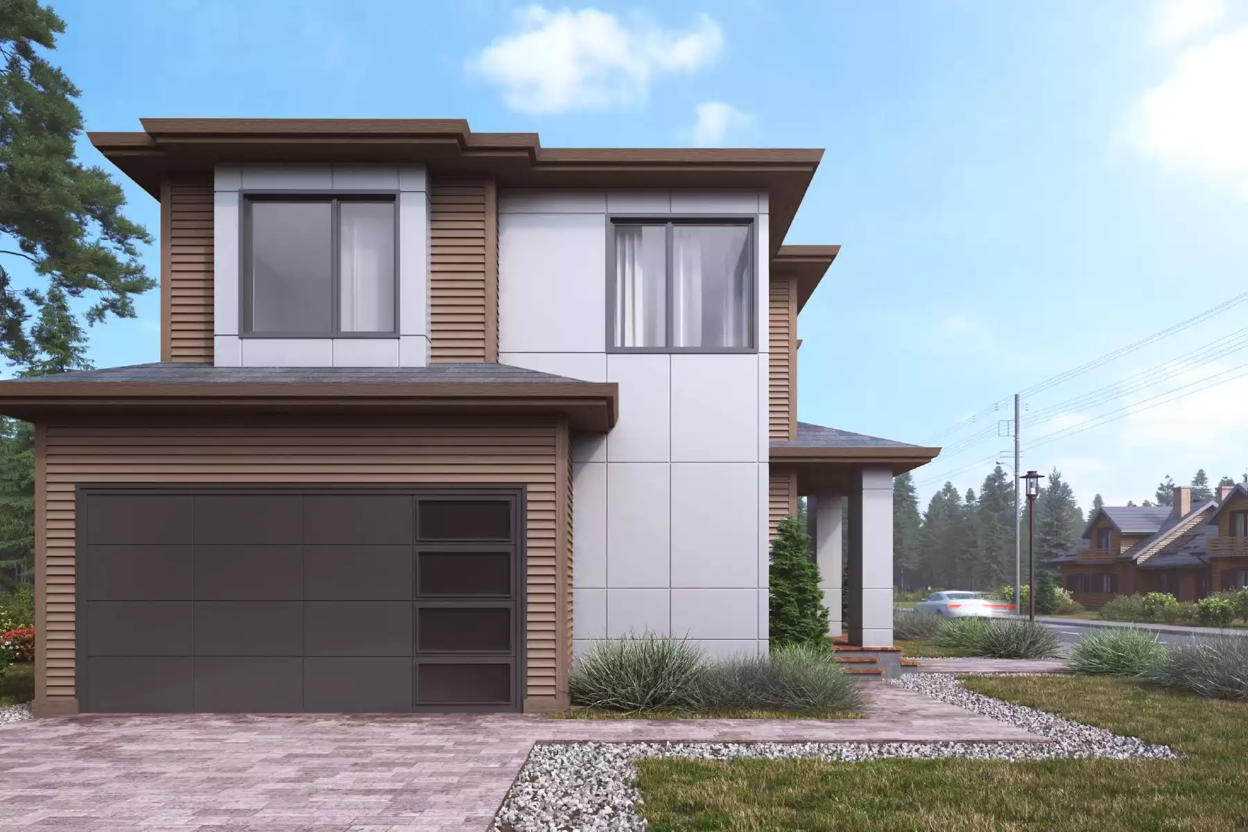 If you want to make the most of a corner lot's double frontage, a design like House Plan 6637 makes a great choice! On one side, you'll find a two-car garage. On the other is the main entry that opens into the interior of 2,037 square feet laid out across two stories. The foyer features a coat closet and the powder room, and then the rest of the main level is totally open-concept. An L-shaped island kitchen fills out a corner and overlooks the dining and living areas, complete with a fireplace and connection to a covered patio. Head up the U-shaped staircase to find a small loft and all three bedrooms. The primary suite has an optional vaulted ceiling in the bedroom and a five-piece bath with a large walk-in closet. The other two bedrooms have a hall bath between them. The laundry room is also located upstairs for convenience. With zoned living and sleeping quarters, this layout is perfect for those who prefer some definition in their floor plan!