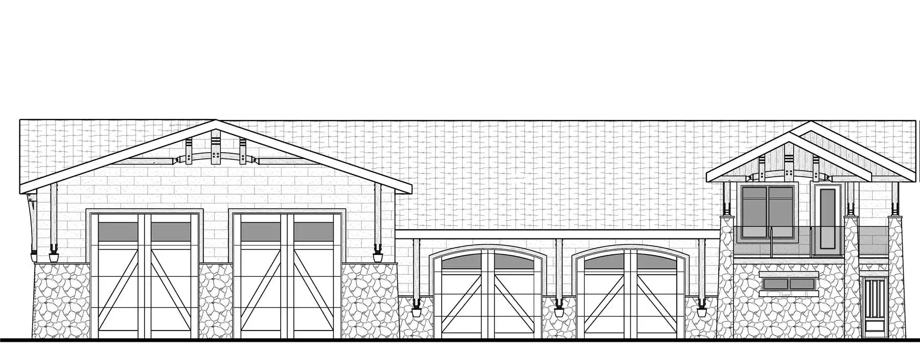 If your property needs more parking for your vehicles, Plan 10554 won't disappoint with over 4,500 square feet of garage space! The garage area features two RV bays and two car bays plus a workshop with tons of workbench space and a half bathroom. But that's not all this design has to offer! On the side, you'll find a door with stairs up to an apartment. This ADU features 777 square feet with one bedroom, one-and-half baths, laundry, and a kitchen open to the living space. There's also a deck off the living area, over the entry, for outdoor potential. It's the perfect set up for guests, renters, caretakers, or even just a getaway from the main house!