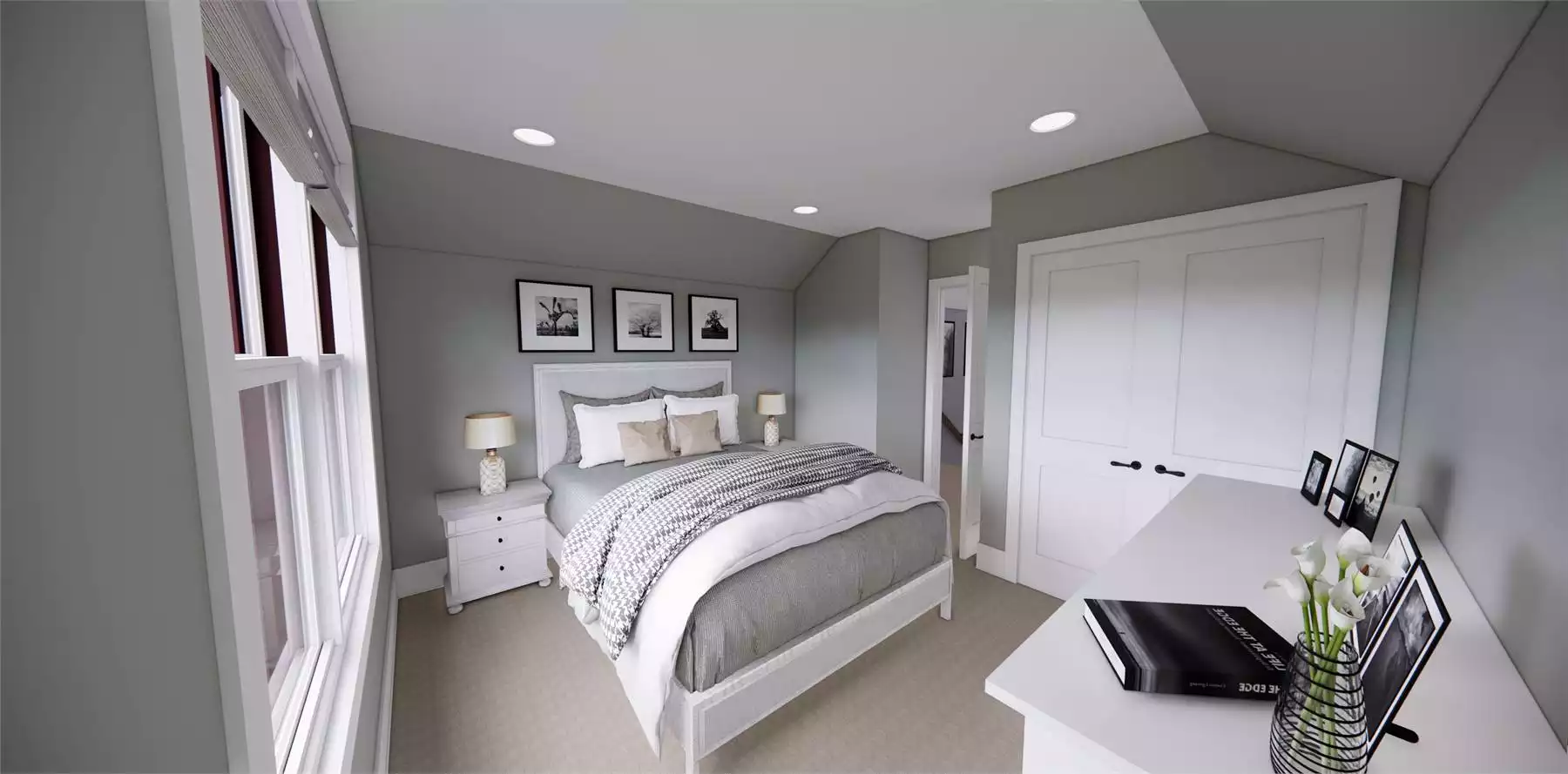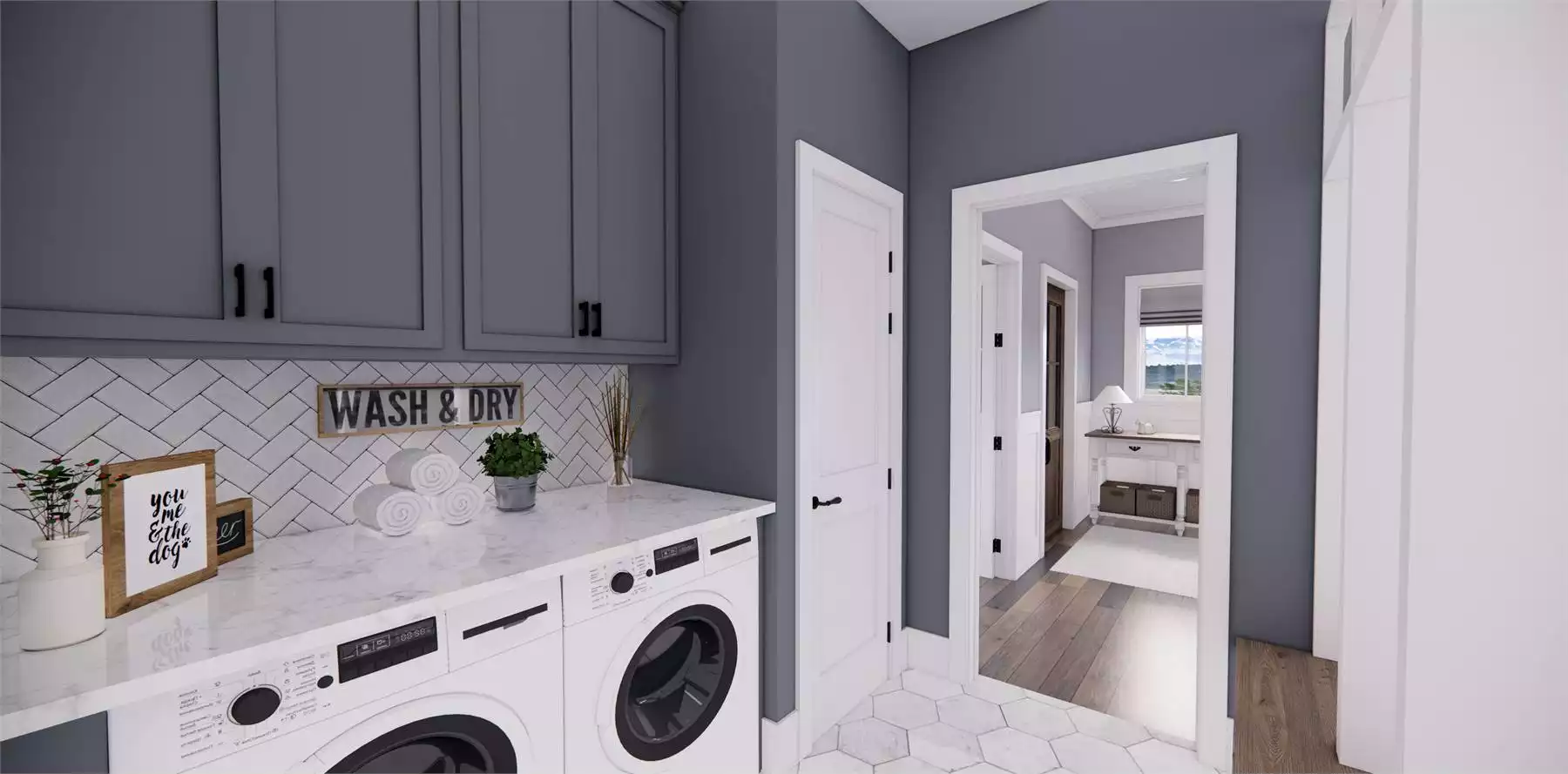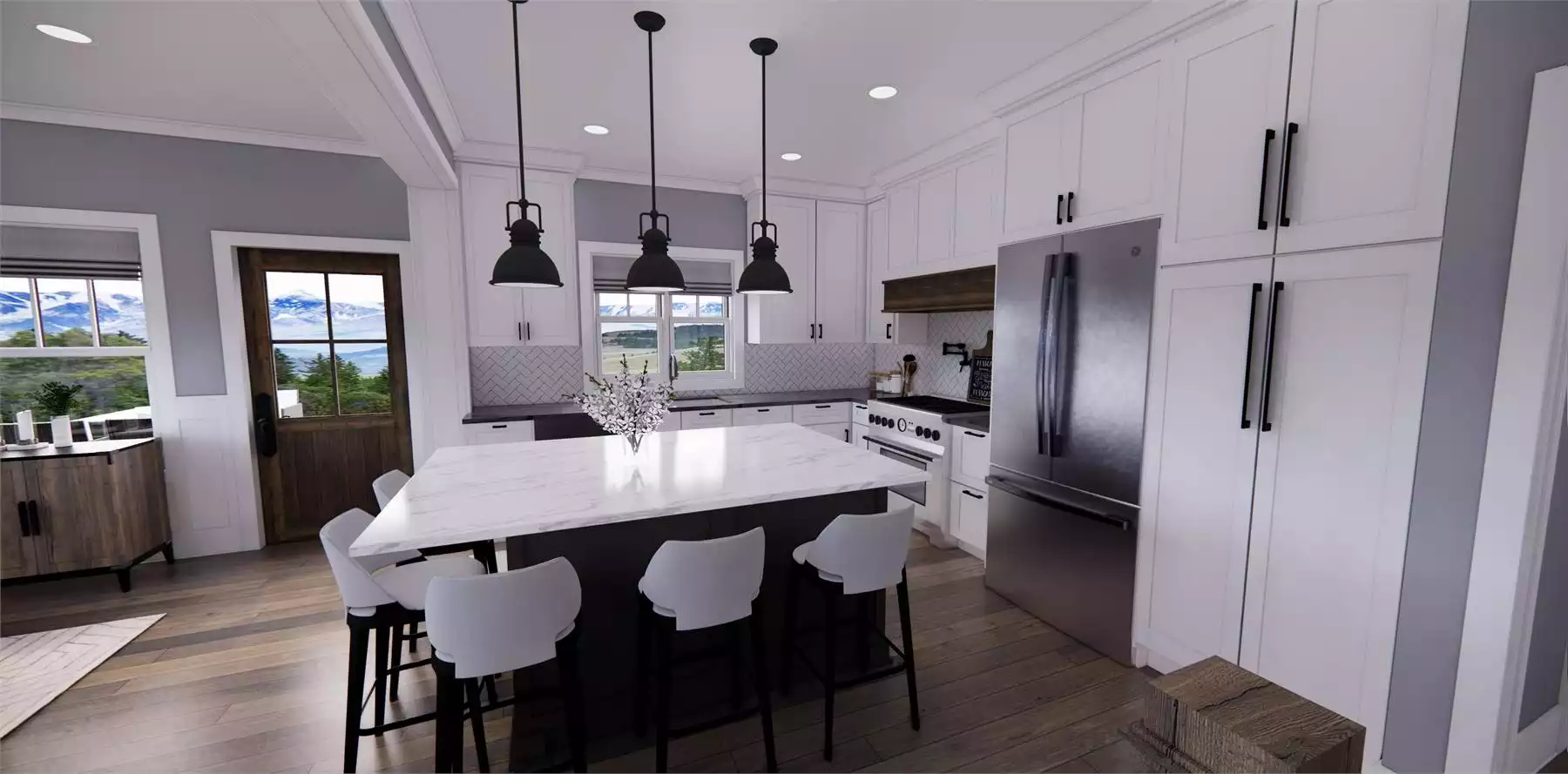 Hopevale is a charming 1,962-square-foot Traditional style home that makes the most of every space, offering 3 bedrooms, 2.5 bathrooms, and a 2-car garage in a thoughtful two-story design. An inviting foyer leads into a bright open-concept layout where the great room, dining area, and kitchen come together with large windows and rear access that flood the space with natural light. The kitchen centers around a generous island with seating for five, creating the perfect spot for both meal prep and casual gathering. The main-level primary suite includes a spacious bedroom, dual-vanity bathroom, step-in shower, and walk-in closet, while upstairs provides two secondary bedrooms, another full bath, and ample storage. A vaulted office, mud/laundry room, and family-friendly flow make this home as functional as it is stylish.