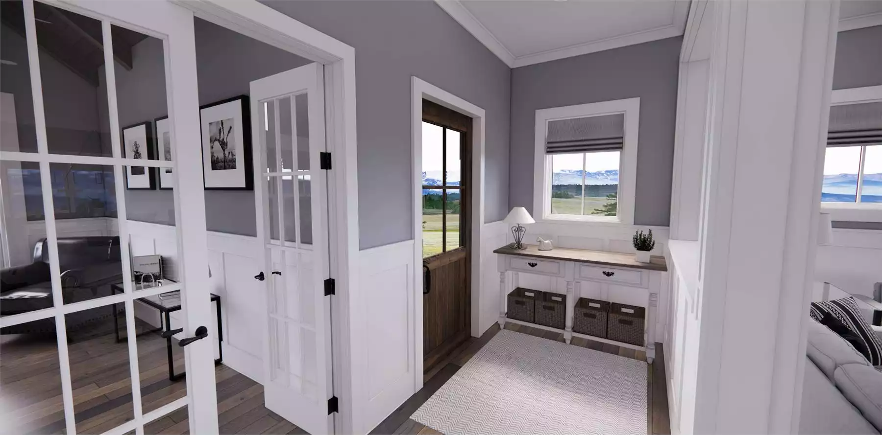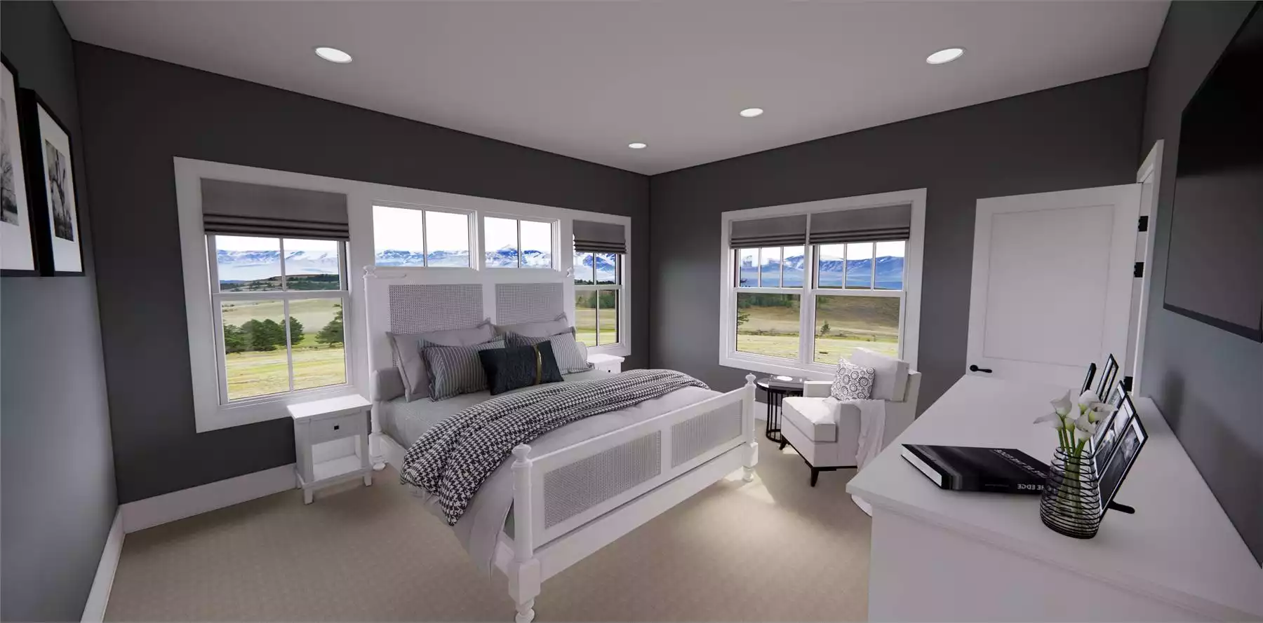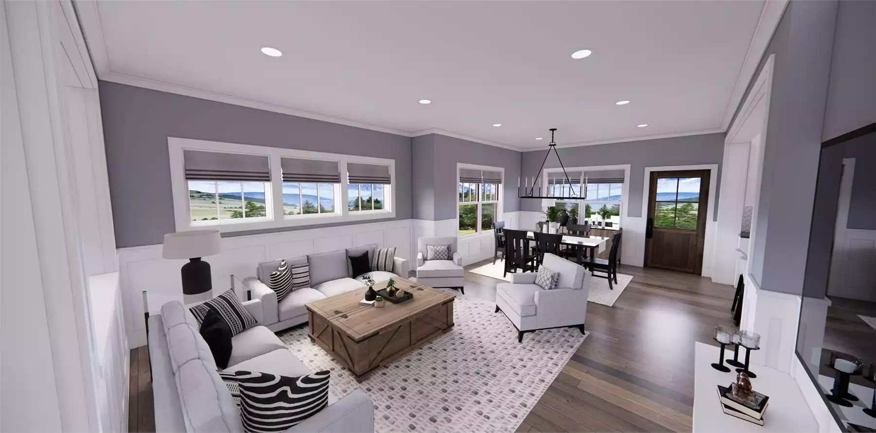 Hopevale is a charming 1,962-square-foot Traditional style home that makes the most of every space, offering 3 bedrooms, 2.5 bathrooms, and a 2-car garage in a thoughtful two-story design. An inviting foyer leads into a bright open-concept layout where the great room, dining area, and kitchen come together with large windows and rear access that flood the space with natural light. The kitchen centers around a generous island with seating for five, creating the perfect spot for both meal prep and casual gathering. The main-level primary suite includes a spacious bedroom, dual-vanity bathroom, step-in shower, and walk-in closet, while upstairs provides two secondary bedrooms, another full bath, and ample storage. A vaulted office, mud/laundry room, and family-friendly flow make this home as functional as it is stylish.