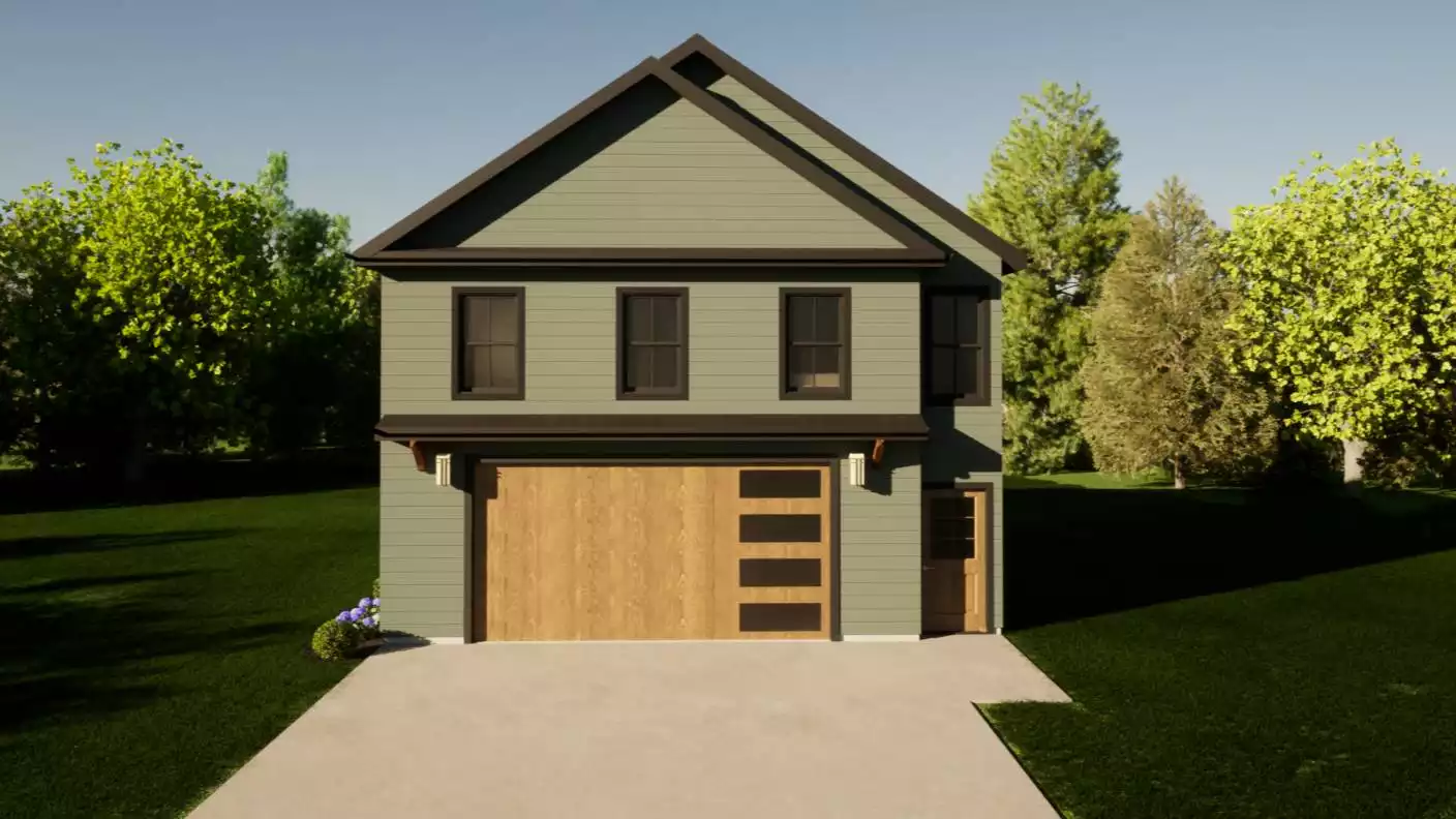 This charming 750 square feet home offers an efficient layout designed for simple, comfortable living. The main floor centers around an inviting family room and a practical kitchen with a peninsula eating bar that creates an easy space for meals and conversation. Upstairs, the primary bedroom provides privacy and convenience with close access to the second-floor laundry, making daily routines straightforward. A second bedroom adds flexibility for family or guests, while thoughtful storage areas help keep everything tidy. The under-garage location includes a workshop space, giving homeowners room for projects, tools, or hobbies. With its compact footprint and well-planned layout, this home delivers warm, functional living in a thoughtful design that feels welcoming every day.