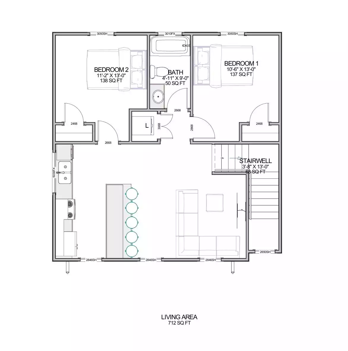 Each set of construction documents includes detailed, dimensioned floor plans, basic electric layouts, cross sections, roof details, cabinet layouts and elevations, as well as general IRC specifications. They contain virtually all of the information required to construct your home. The typical plan set does not include any plumbing, HVAC drawings, or engineering stamps due to the wide variety of specific needs, local codes, and climatic conditions. These details and specifications are easily obtained from your builder, contractors, and/or local engineers.