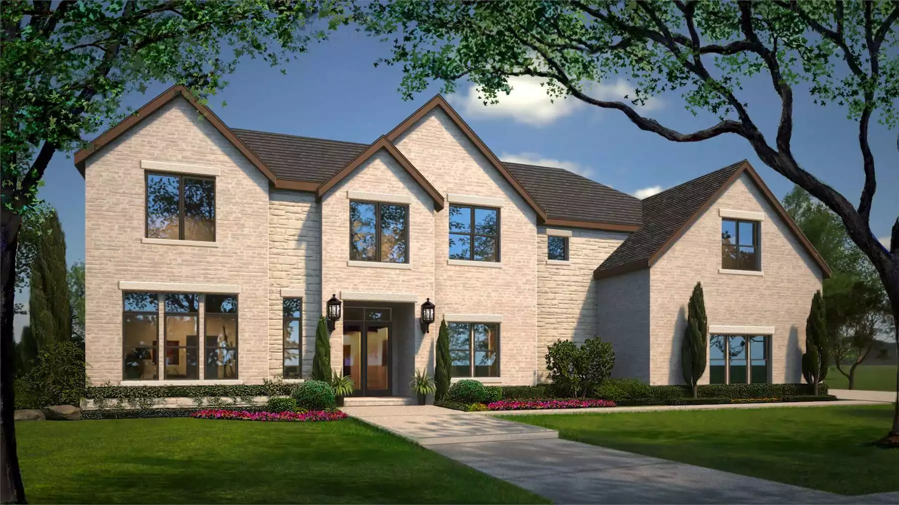 Step into the charm of Marquette, a sprawling 4,575 square foot country home designed to captivate. Upon entry through the foyer, a welcoming sitting area on the left invites you in, leading to a conveniently located home office. On the right, a secluded guest suite with a private bath offers a retreat-like experience. Continue your journey into an expansive family room, a perfect space for entertaining guests or gathering with family around the warm glow of the fireplace in the lounge. But the fun doesn't stop there! Make your way to the game room for additional enjoyment. The open floor plan seamlessly guides you through the dining area and a beautiful U-shaped kitchen, complete with an island and a convenient walk-in pantry. On the left side of the house, discover the luxurious owner suite, featuring a walk-in closet and a spa-inspired bathroom for ultimate relaxation. Ascend the stairs to find two bedrooms and a full bath, providing additional private spaces. To conclude the tour, the garage accommodates four vehicles, offering ample space for your convenience.