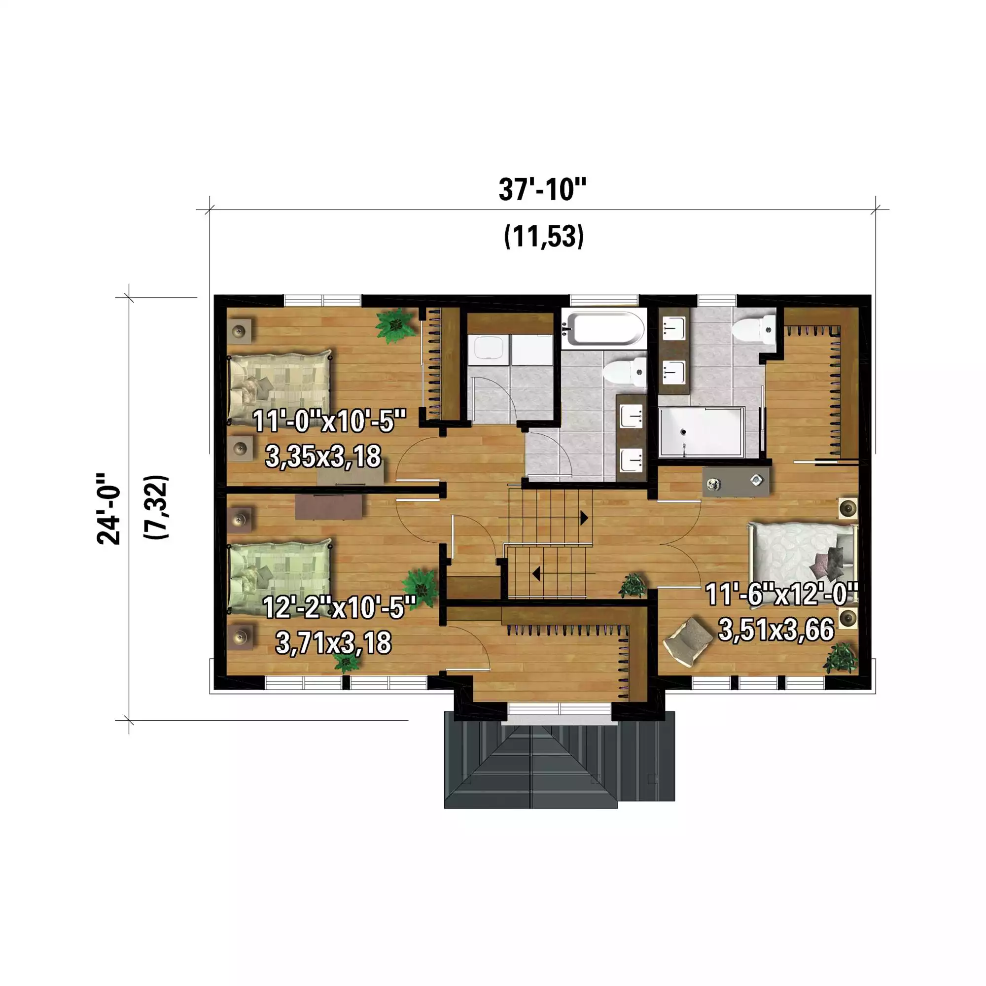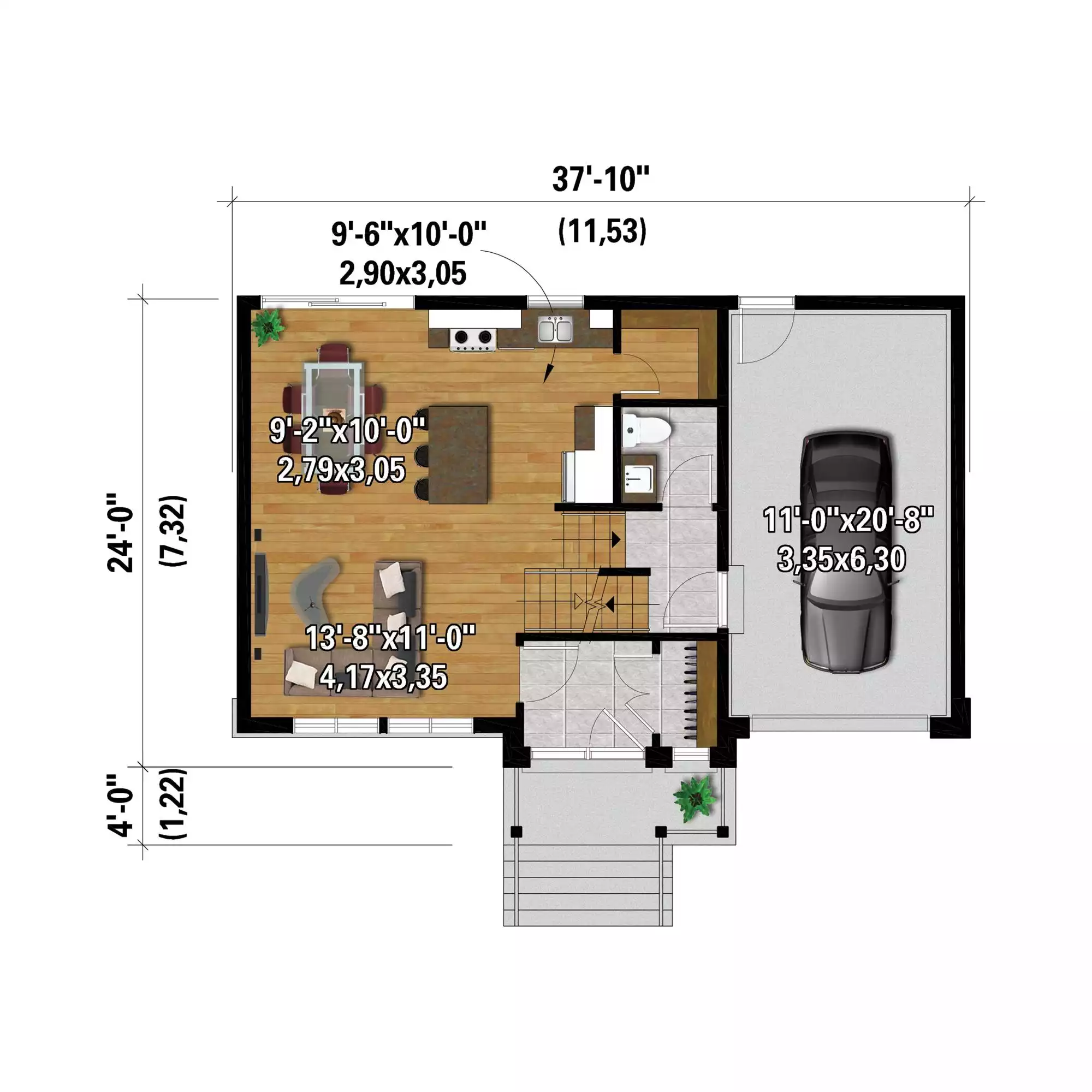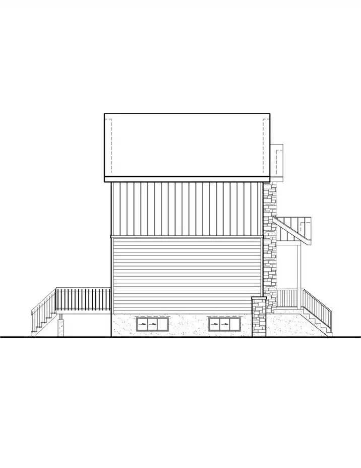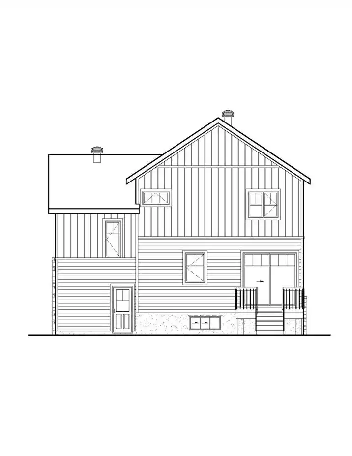 Looking for a smaller home with chic transitional style? Perhaps a modest, affordable one with a boosted floor plan to make the most of views? That's just what you'll get with House Plan 10473! Take the steps up to this two-story design and you'll find 1,432 square feet, three bedrooms, and two-and-a-half bathrooms inside. There's an airlock foyer to help keep the household tidy, and then the open-concept great room fills out the rest of the main floor. The living area is in front and the island kitchen and dining area are in back. Take the stairs on the side down to the powder room and door to the one-car garage or up to the bedrooms on the second level. The primary suite is on its own plane over the garage and has a four-piece bath accessible through the walk-in closet. The other two bedrooms, laundry room, and a four-piece hall bath are placed up another short staircase to help create some privacy between the sleeping quarters!