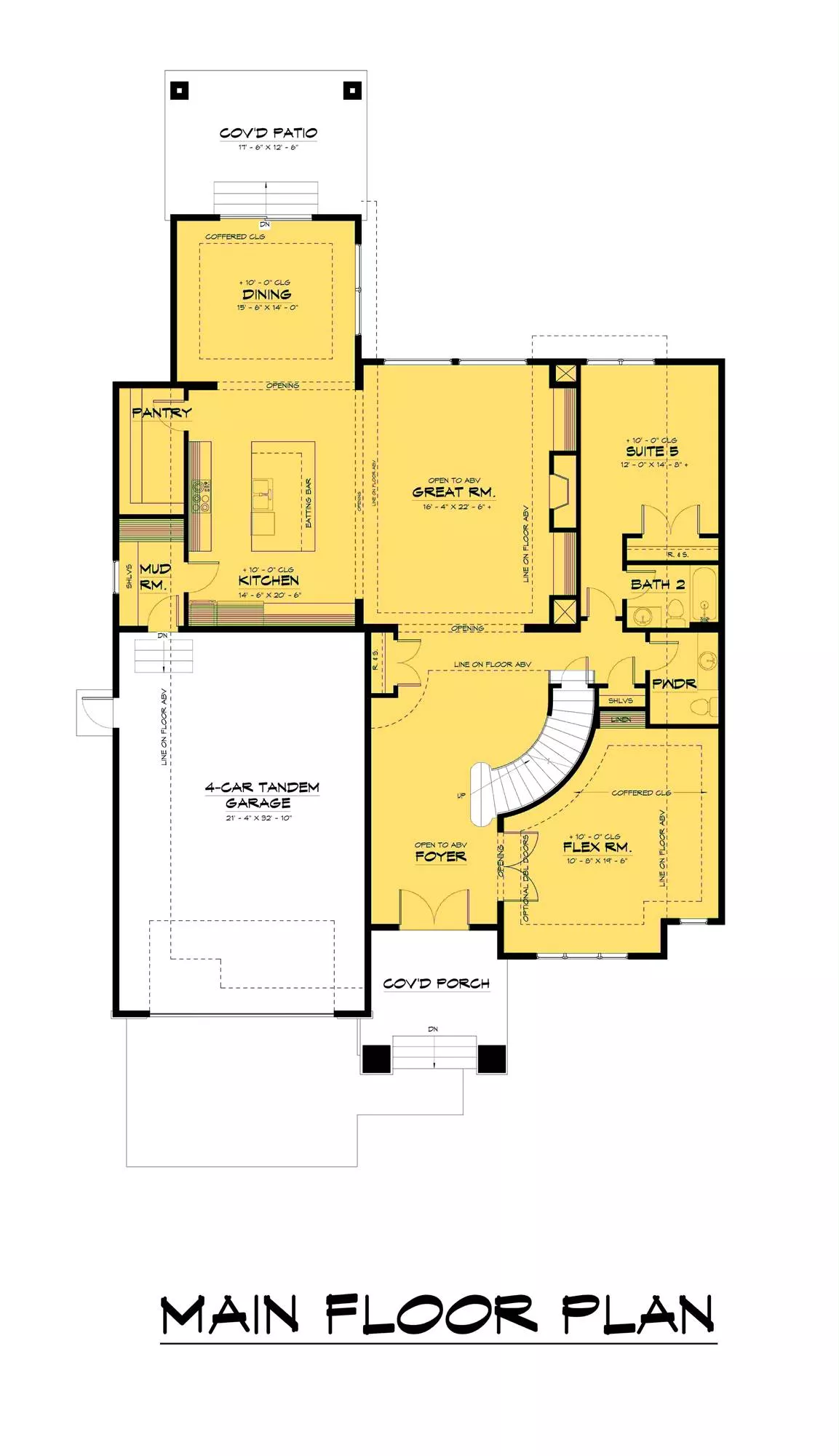 This stunning transitional modern farmhouse features 4,147 square feet of living space and features a spacious open floor plan, luxurious amenities, and flexible living areas perfect for today's modern family. The front entry opens to a grand foyer with soaring ceilings and an open curved staircase leading up to the second level. To the right of the foyer, you will find a large flex space, perfect for a home office, den or guest suite The heart of the home is the expansive two story great room, which features a fireplace with built-ins and large windows that flood the space with natural light. The gourmet kitchen is a chef's dream, with a large island and ample counter and storage space. The adjacent dining room opens to a covered patio perfect for alfresco dining. Upstairs, you will find a large master suite, there additional bedrooms and laundry room, This home also includes a 4-car tandem garage, a mudroom, and plenty of storage space throughout, making it both functional and stylish.