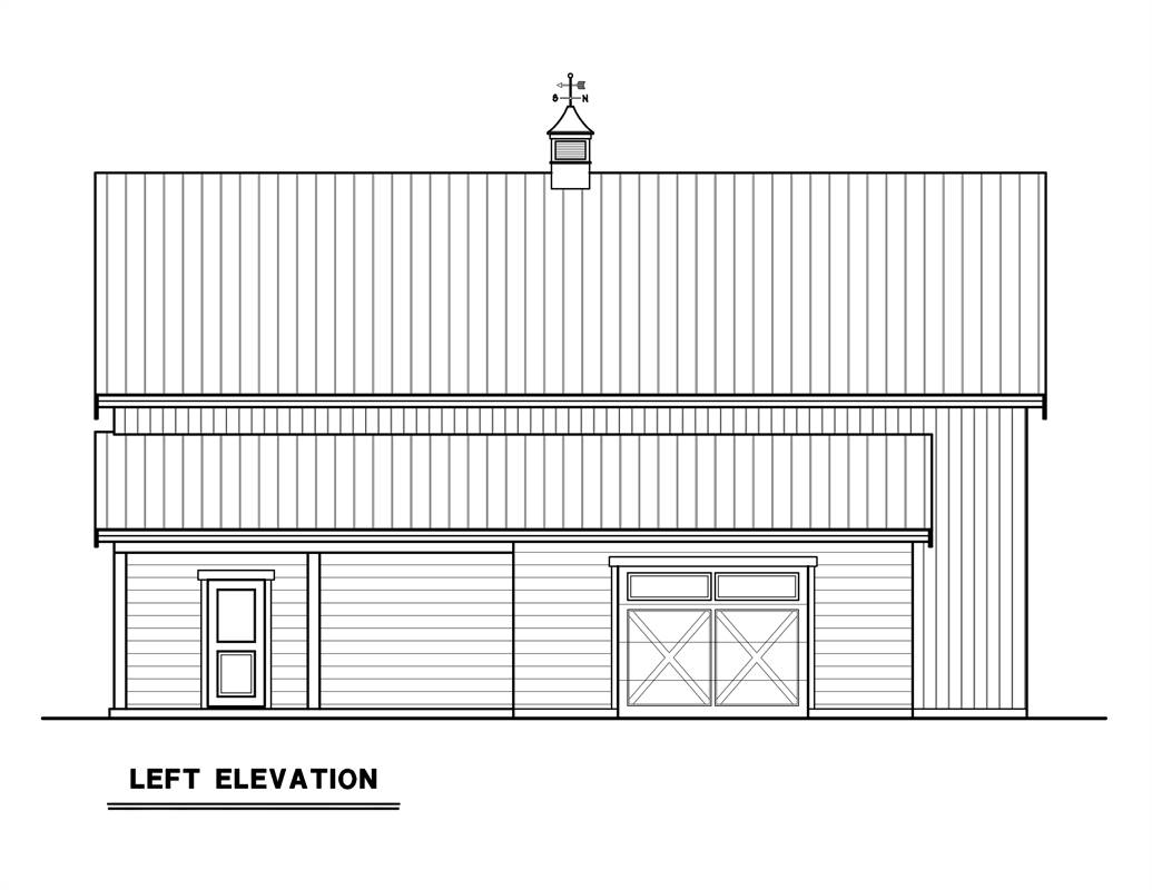 Are you in the market for a super rustic home that gives you room to work? House Plan 6605 fits the bill with its traditional barn look, modest living area, and ample shop space. Starting with the interior, you'll find 1,580 square feet across two levels. The first floor has one bedroom, a hall bath, and an open great room with an island kitchen. The second floor consists of a loft that stretches across the whole depth of the home. This could be an awesome bunkroom to offer additional sleeping quarters, a huge storage room, or anything else you may need. On to the working potential of this design, the center portion of the main level provides over 1,000 square feet of shop space. In addition to that, there's a tack room on the side, complete with its own large exterior door. It's not very often you find a design like House Plan 6605 that's made for living and working in!