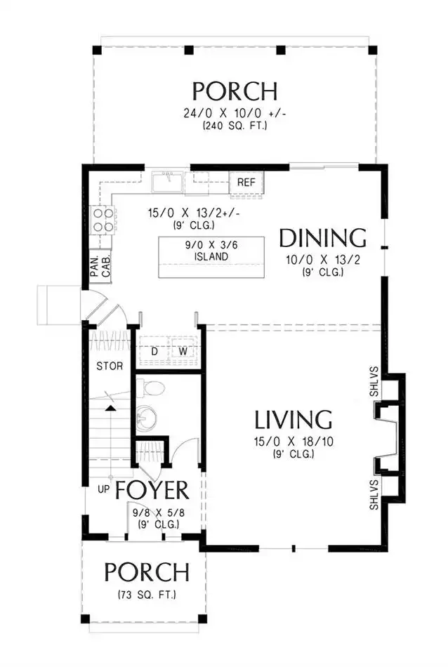 If you need an affordable cottage with a compact shape, give House Plan 2330 a try! This 1,658-square-foot cottage offers three bedrooms and two-and-a-half bathrooms. The main level places the powder room by the foyer and the living area with a fireplace in front. In back, the L-shaped island kitchen sits beside the dining space. The laundry closet is placed by the kitchen, too. Head up the stairs to find all the bedrooms in a grouped layout perfect for young families. The primary suite has a vaulted bedroom, a four-piece bath, and a walk-in closet while the other two bedrooms share a four-piece hall bath. What a thoughtful design for a budget!