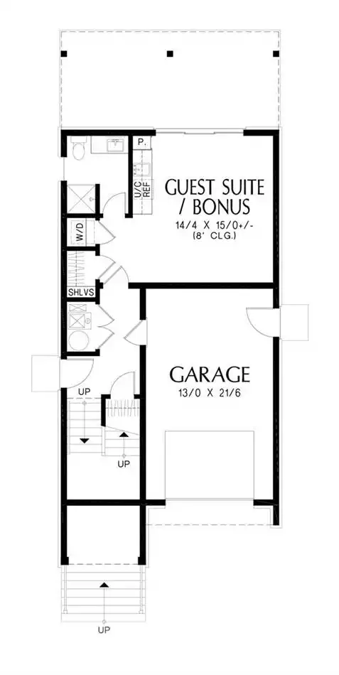 Got a narrow lot? Need to condense your footprint? Perhaps you want to build up for better views? House Plan 9280 is perfect for all of the above! This three-level farmhouse offers a townhouse-style layout of 2,197 square feet with three or four bedrooms, three-and-a-half baths, and plenty of flexibility. The main level is raised above street and placed over the one-car garage. There's a flex room that would make a great office or playroom in front while the open-concept great room spreads out in back, with an island kitchen beside the living and dining areas. There's also a handy powder room and access to the back deck on this level. Head upstairs to find the family bedrooms, including the primary suite in front and two bedrooms in back that share a hall bath. The laundry room is also placed here for convenience. Head down to the lower level and there's a nifty suite behind the garage. It has its own bathroom and laundry, and open living/sleeping space with a mini kitchenette. This could be perfect for guests or a rec room!
